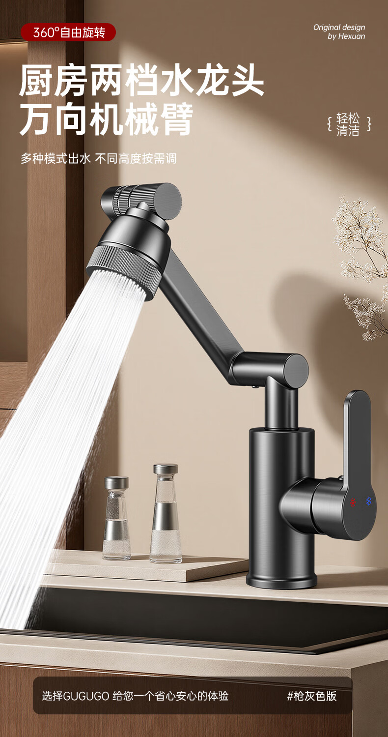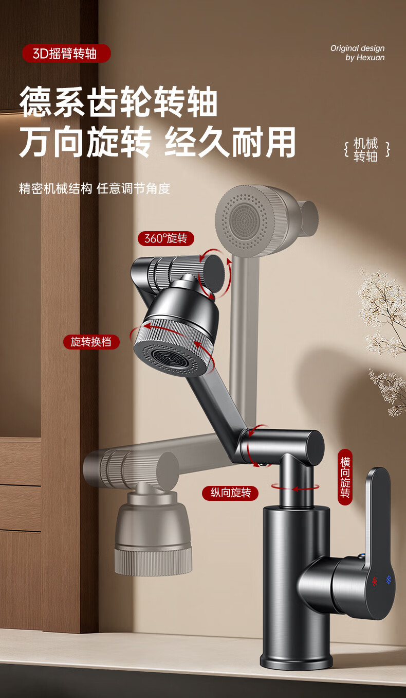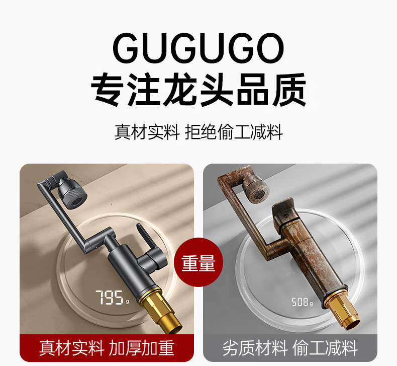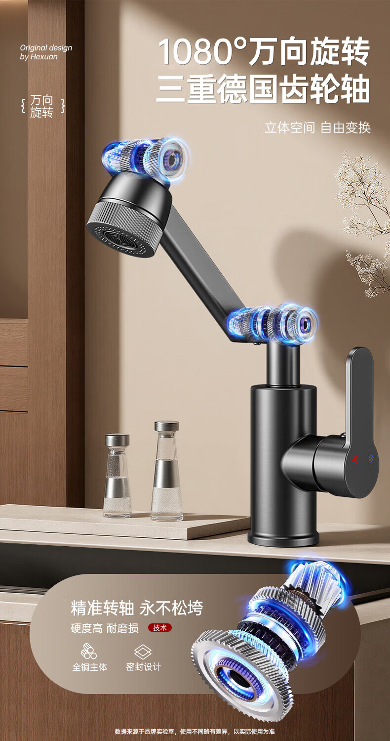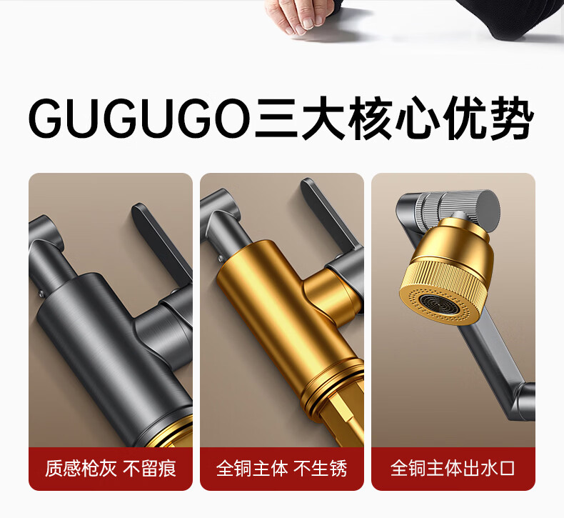GuGuGo【德国】全铜洗手盆水龙头面盆卫生间洗脸盆万向冷热水二合一龙头 赠品2 两档增压防溅丨配80CM防爆进水管*2