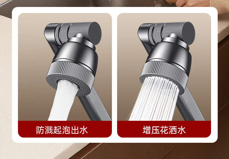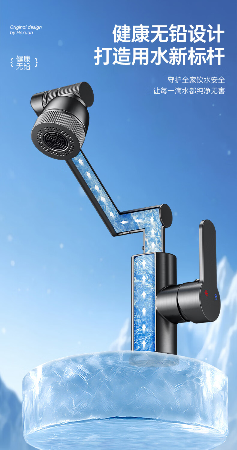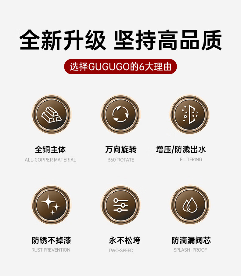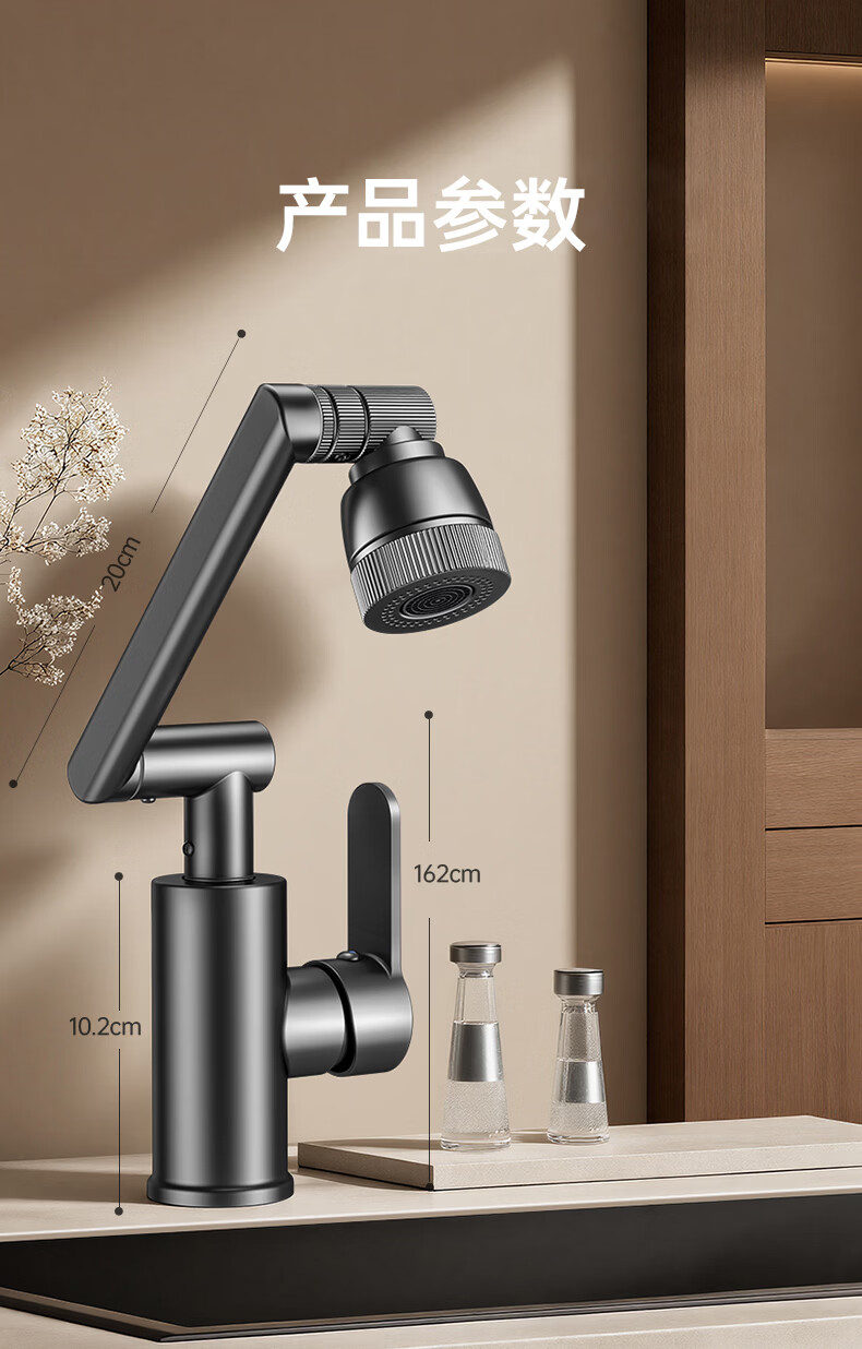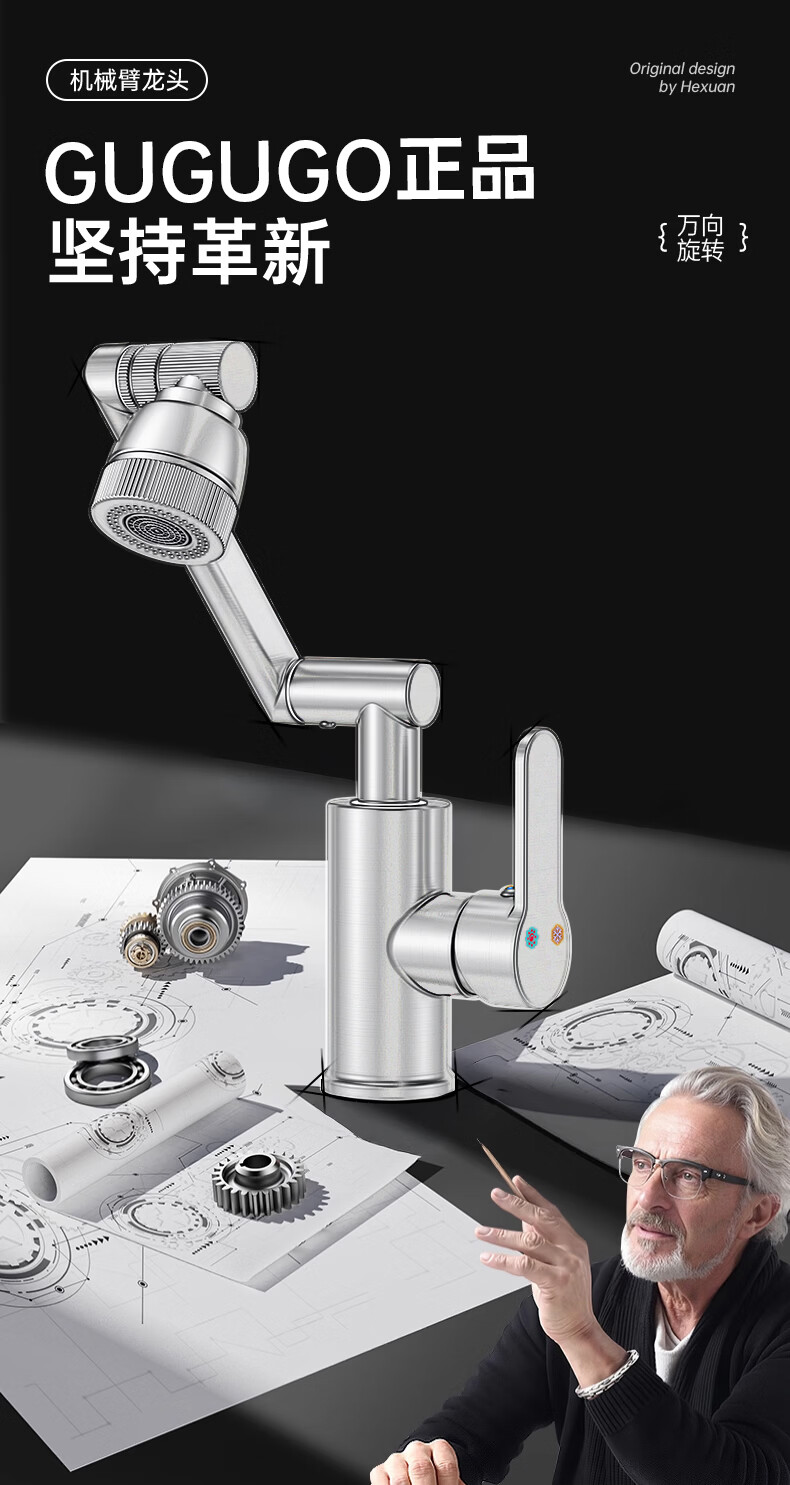 GuGuGo【德国】全铜洗手盆水龙头面盆卫生间洗脸盆万向冷热水二合一龙头 赠品2 两档增压防溅丨配80CM防爆进水管*2