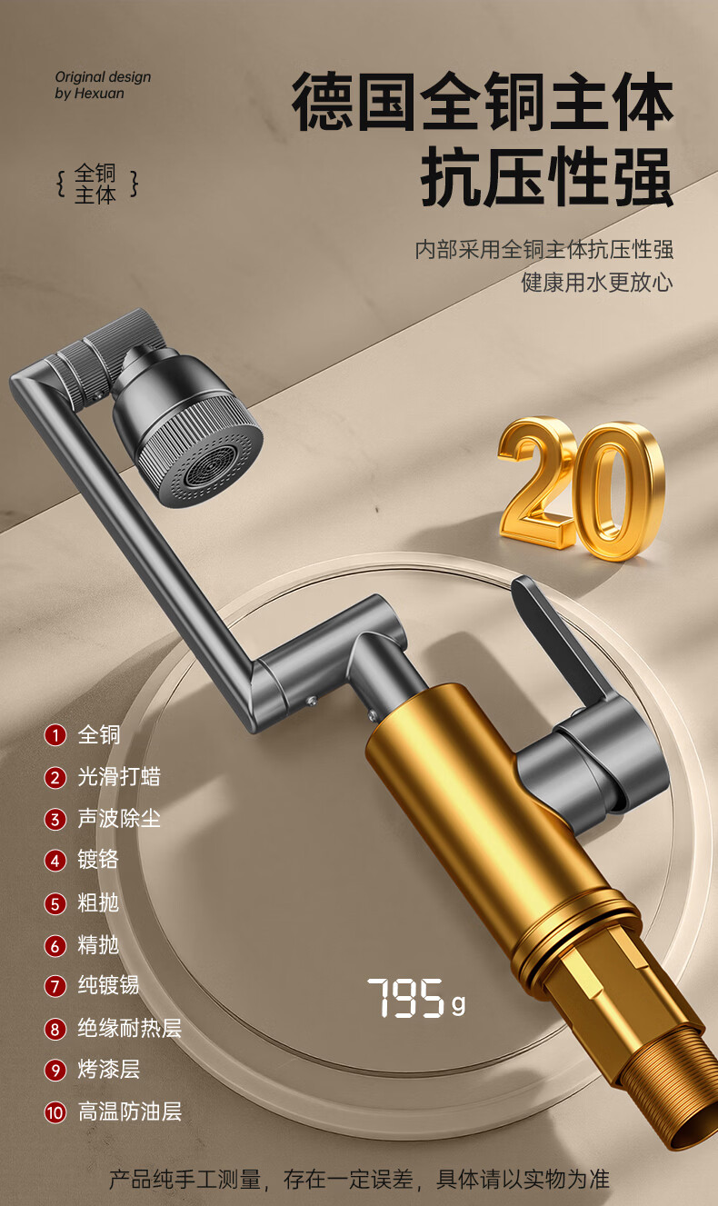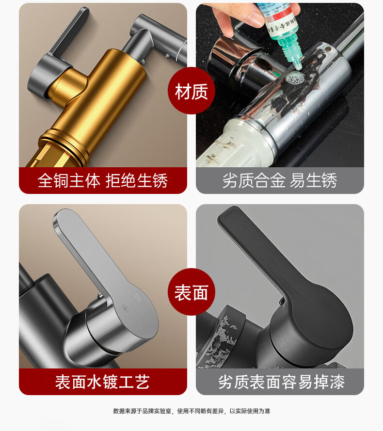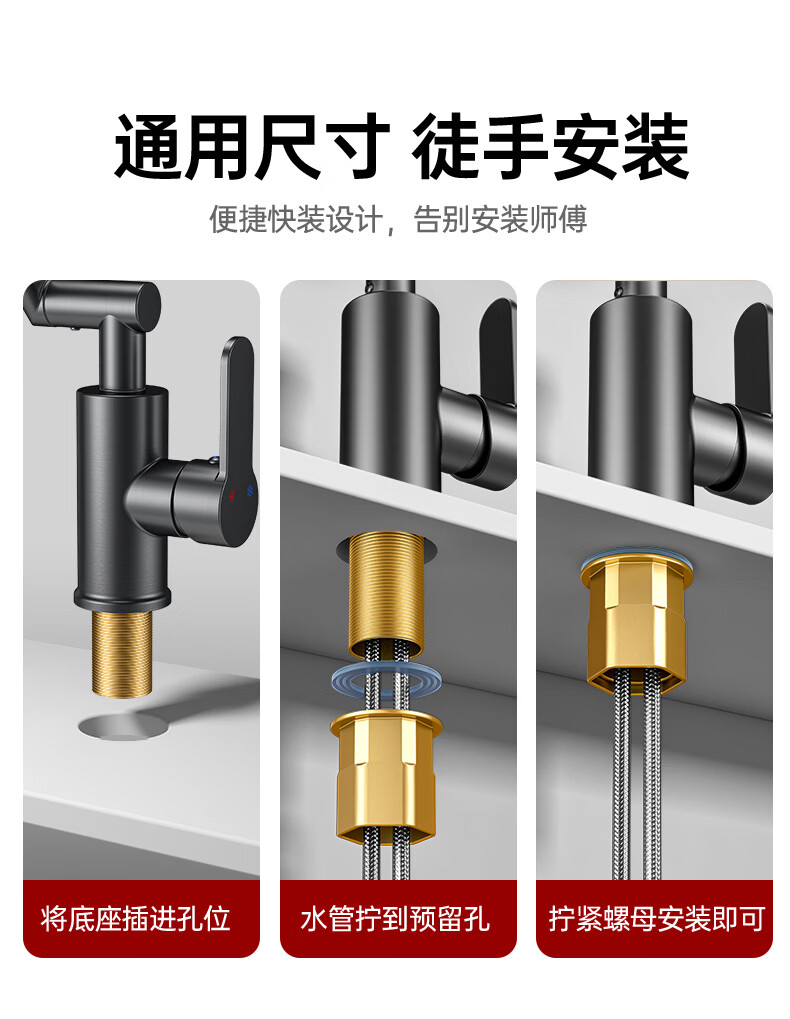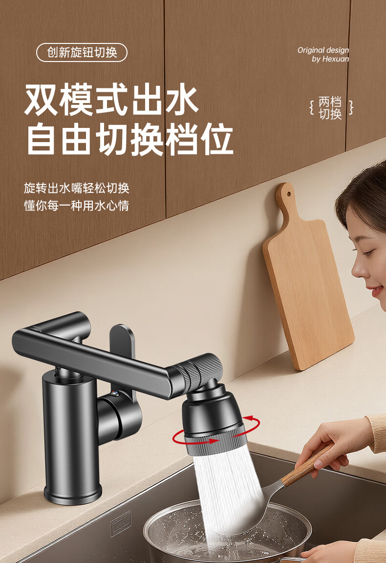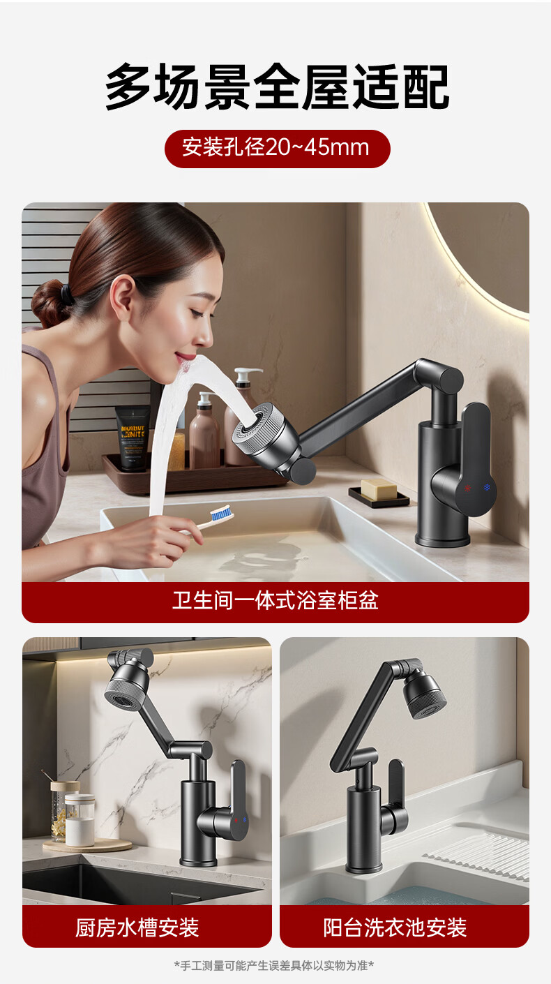 GuGuGo【德国】全铜洗手盆水龙头面盆卫生间洗脸盆万向冷热水二合一龙头 赠品2 两档增压防溅丨配80CM防爆进水管*2