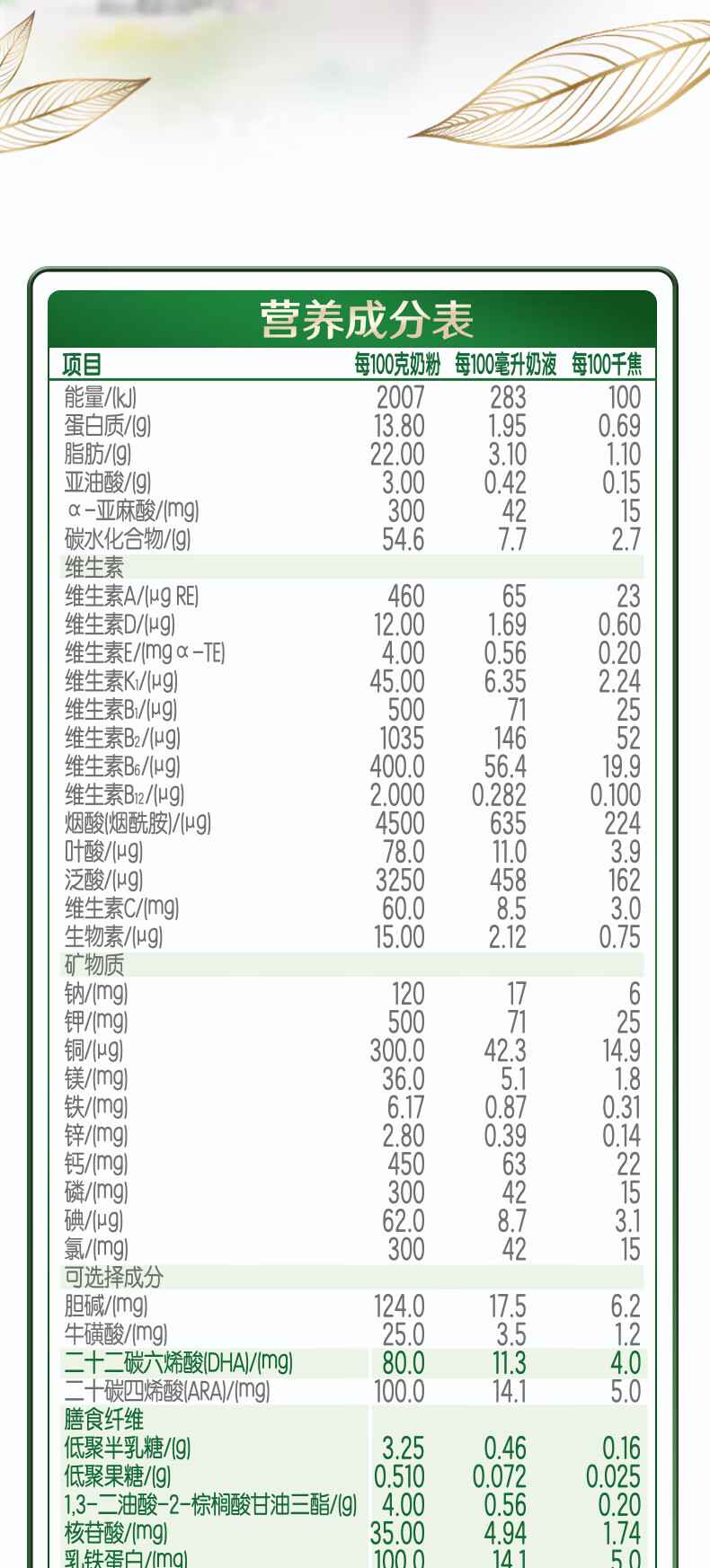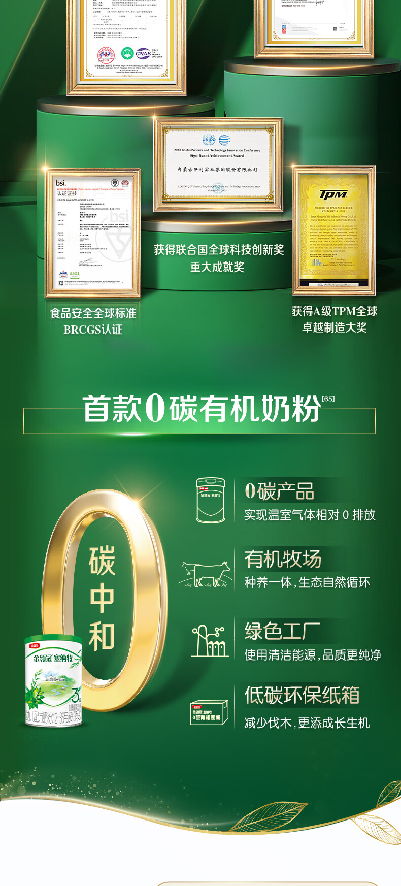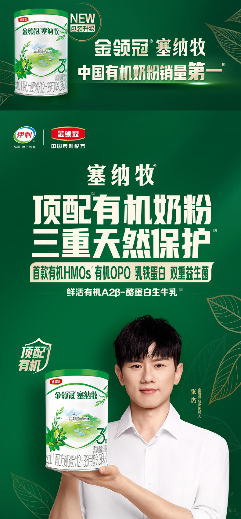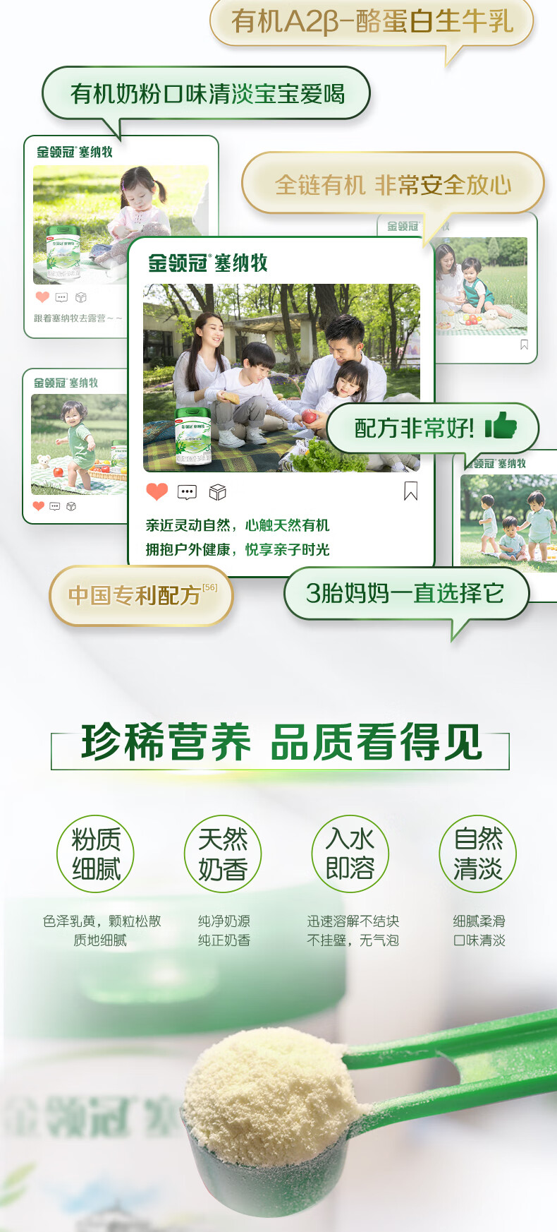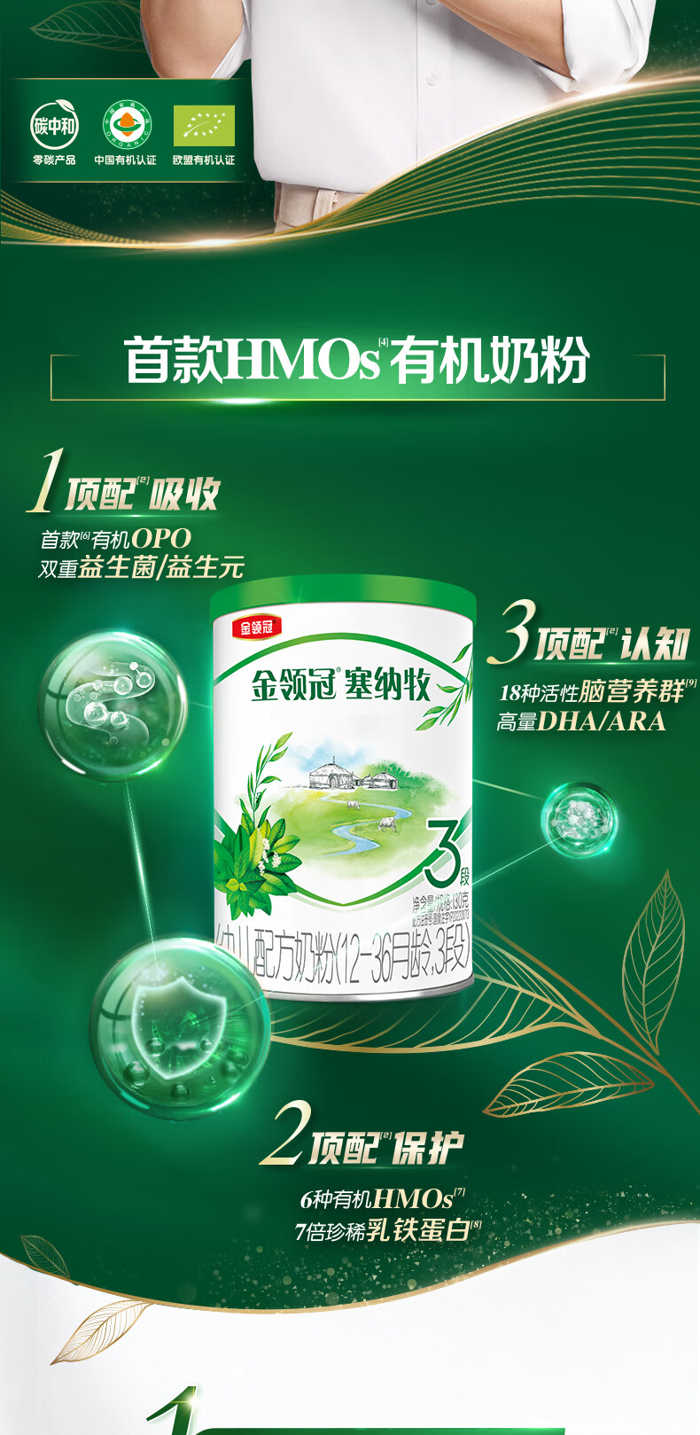 伊利金领冠塞纳牧【首款HMO】有机A2β-酪蛋白奶粉3段130g(12-36个月)
