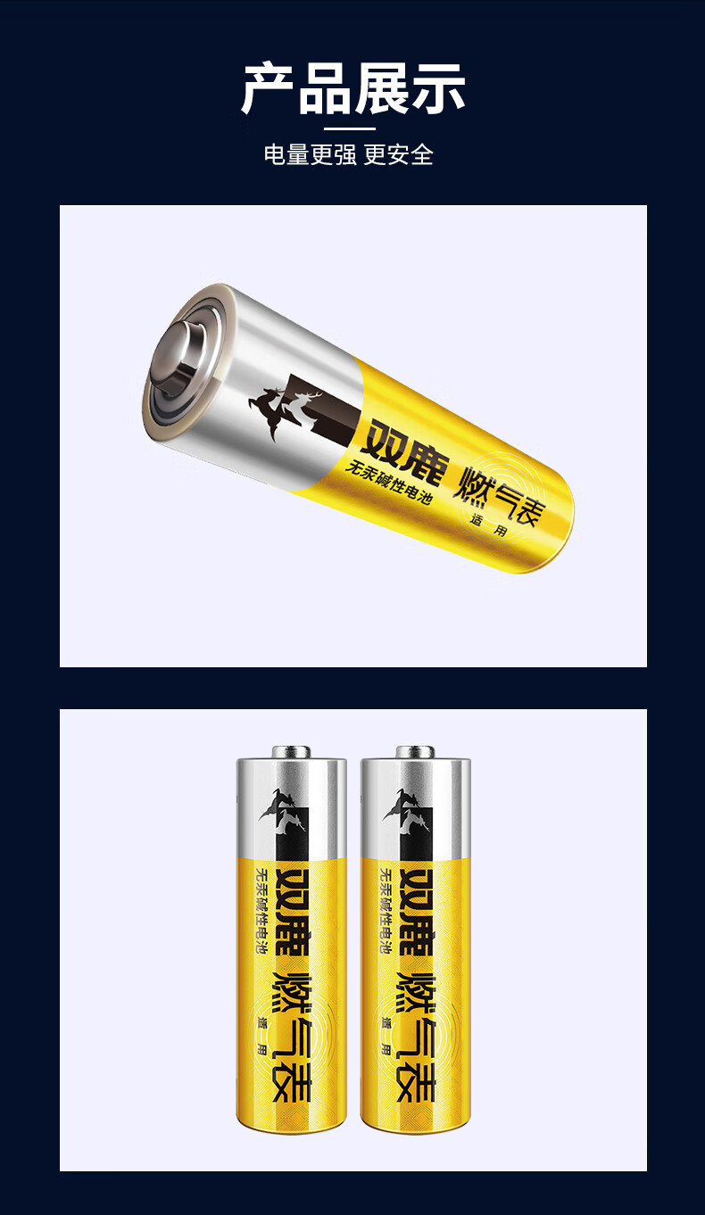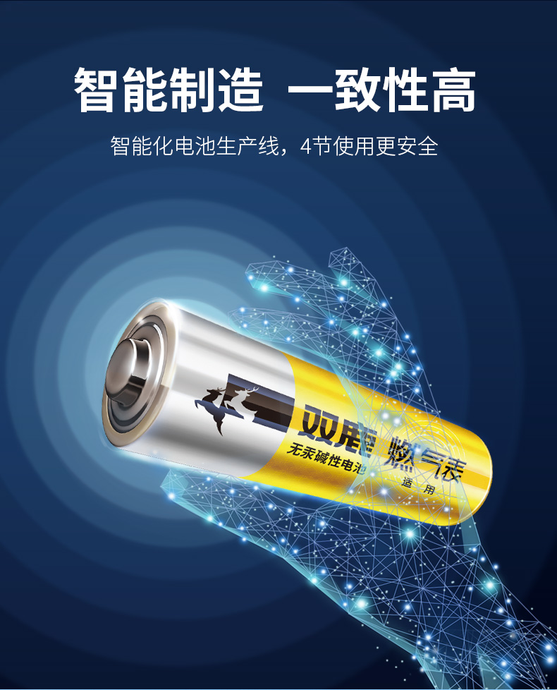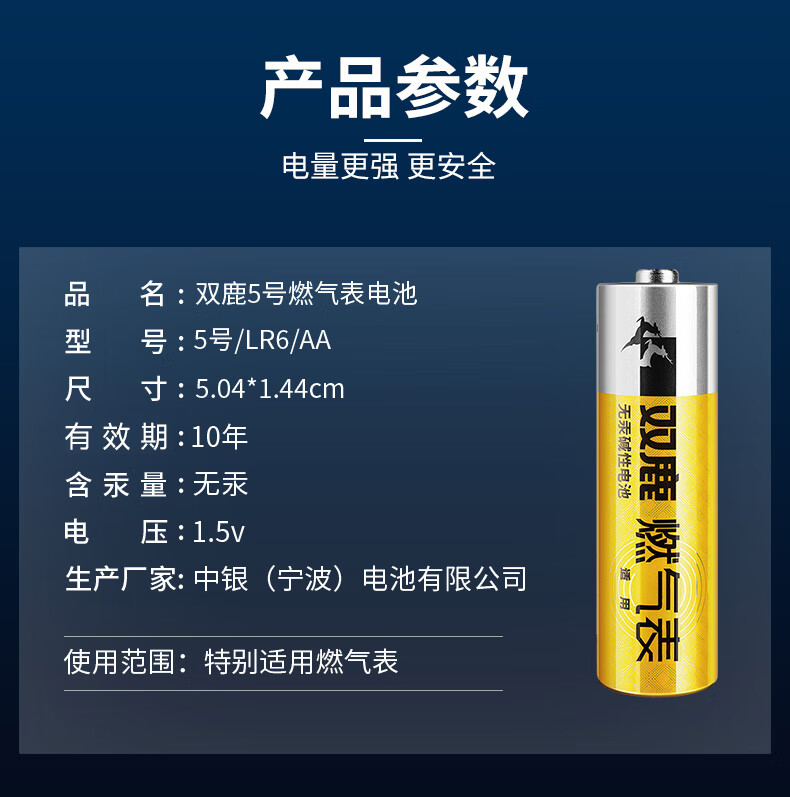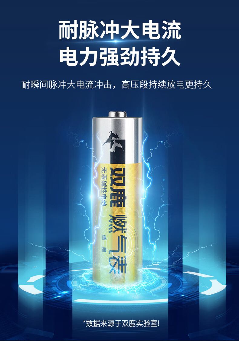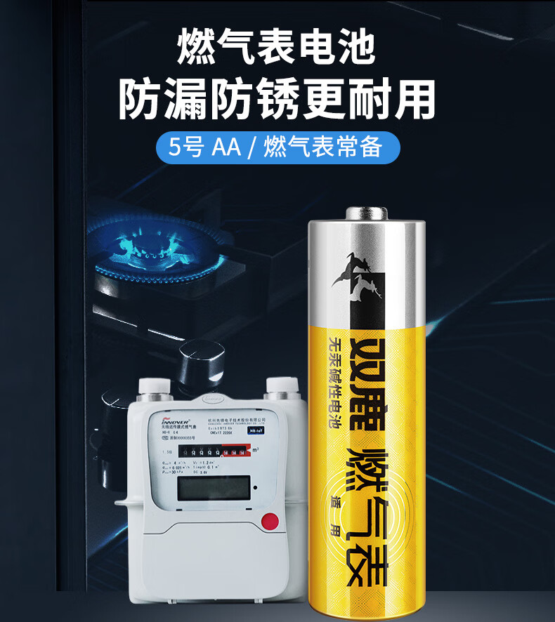 双鹿 5号电池4节卡装 无汞环保 持久耐用 AA碱性适用于天然气表煤气表水表LR6五号 1.5V 4节卡装