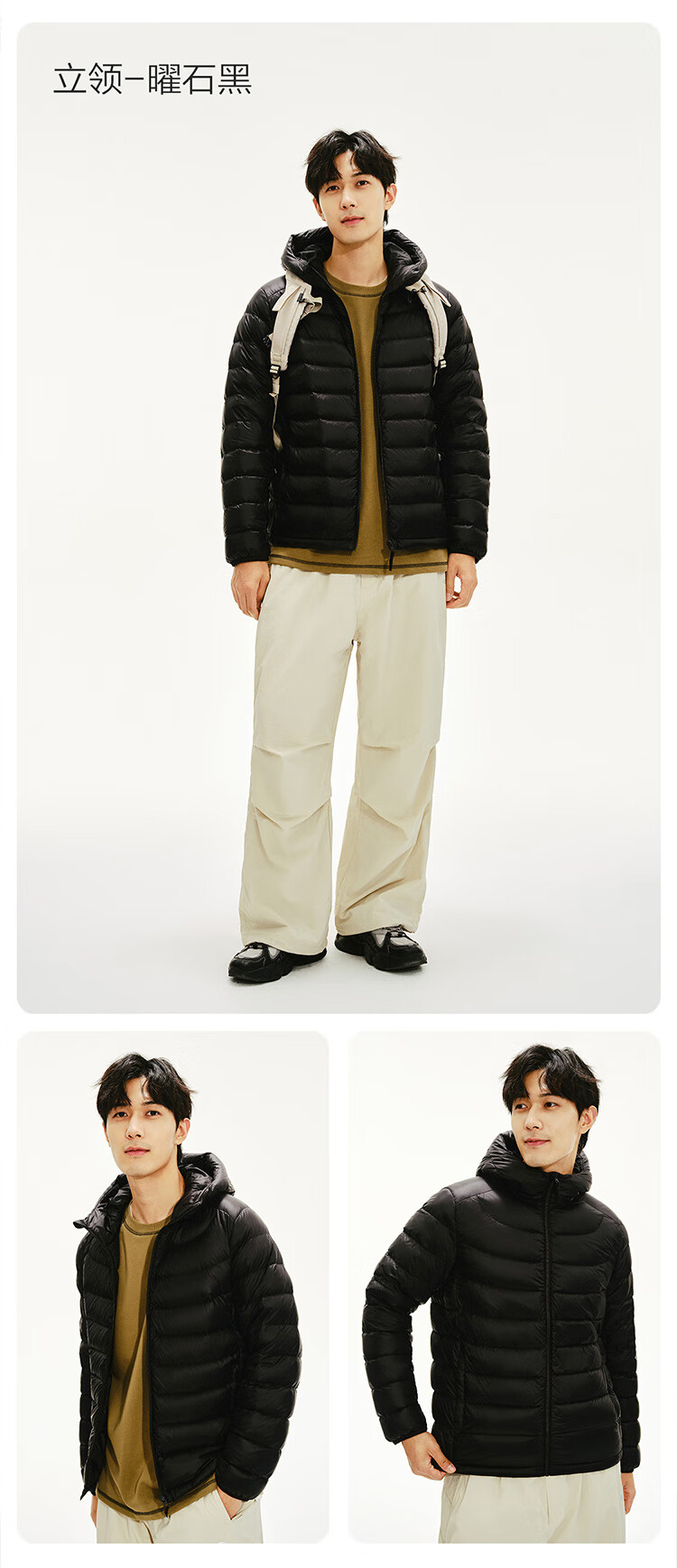 海澜之家(HLA)羽绒服男25新款立领石墨烯保暖挺括外套男冬季 黑色1A L 175/92A 推荐140-160斤