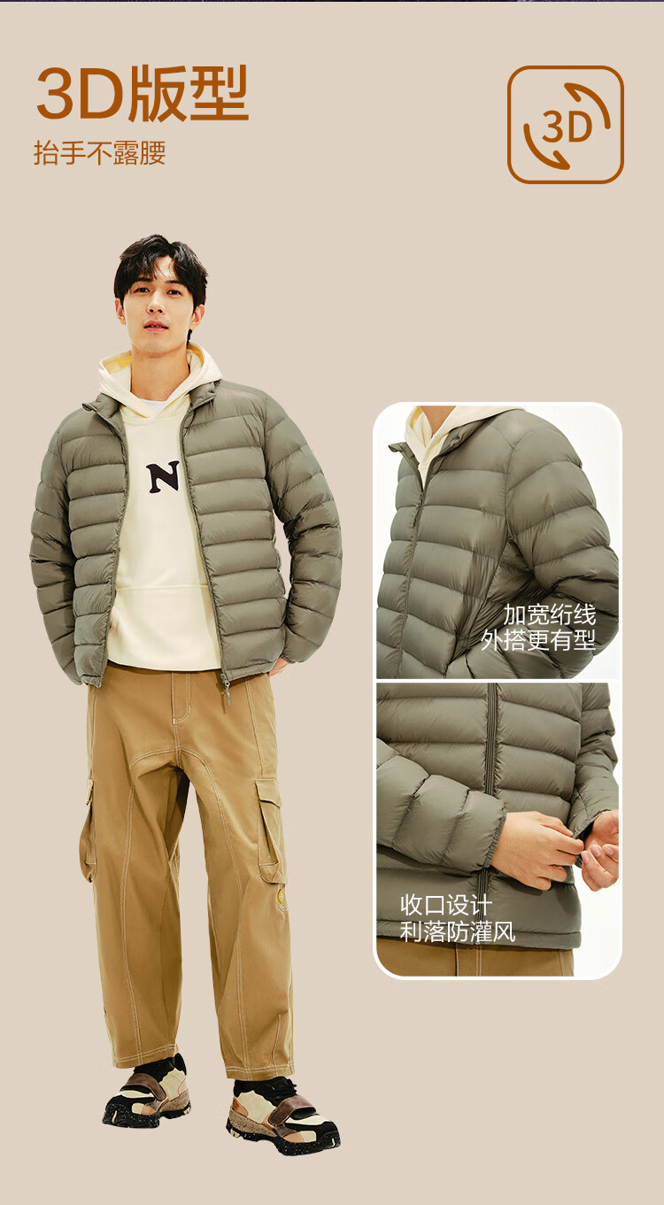 海澜之家(HLA)羽绒服男25新款运动SPORTSDAY抗静电外套男冬季 黑色3C L 175/92A 推荐140-160斤