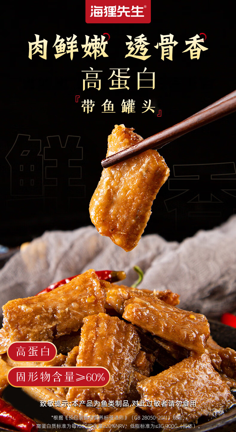 海狸先生 带鱼刀鱼罐头 即食百搭下饭菜豆豉鱼罐头 五香100g*6罐