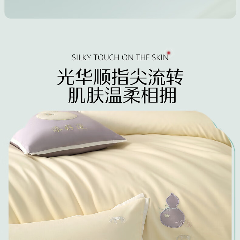 水星家纺四件套床上A类天丝™棉凉感莱赛尔被套枕套床单26年新款套件 境·马上发财 床单款 (被套150*210cm)