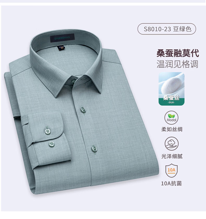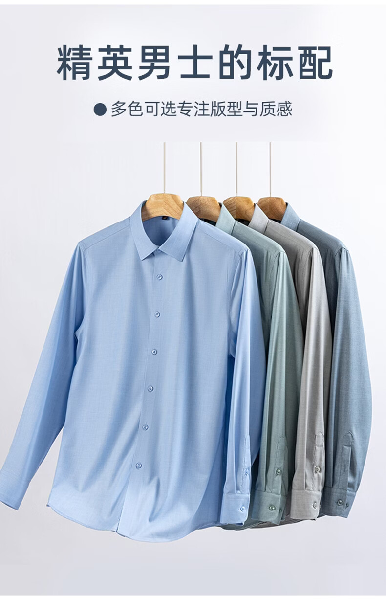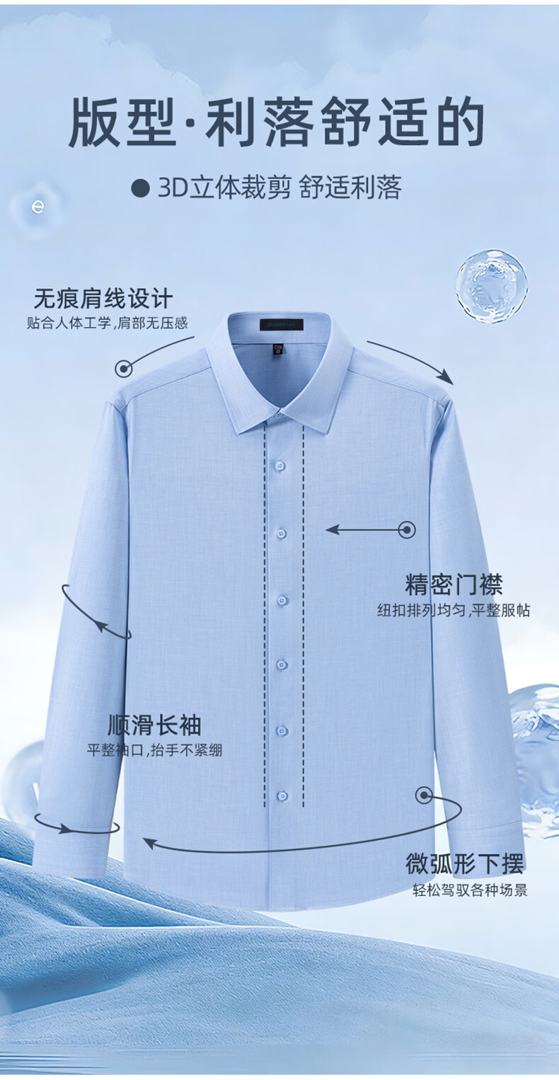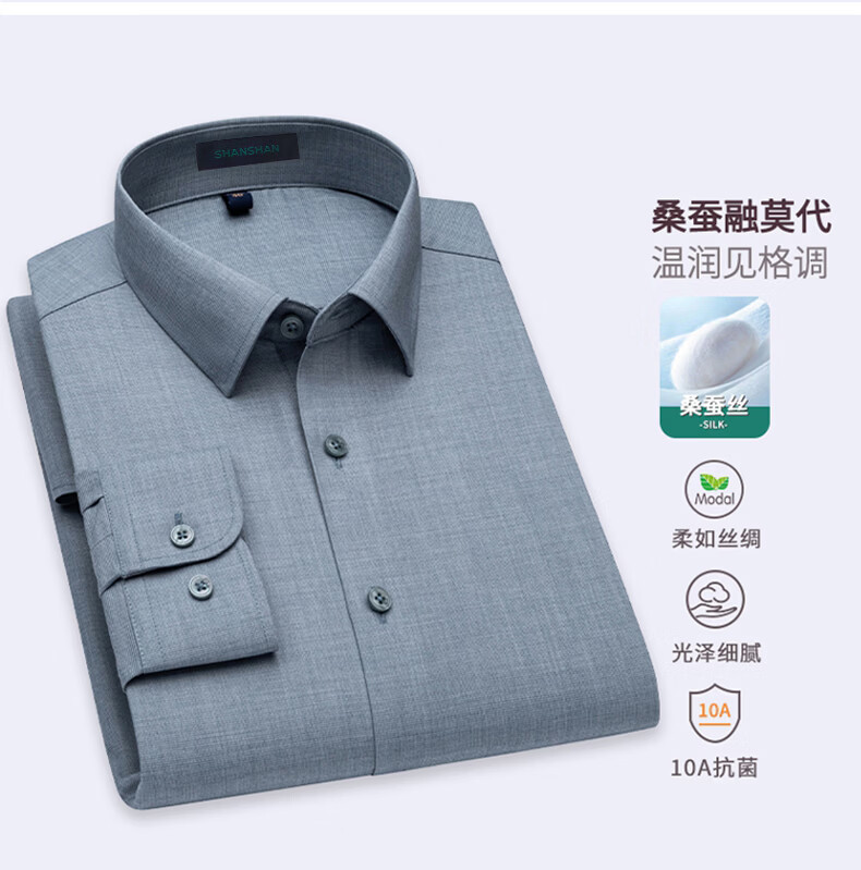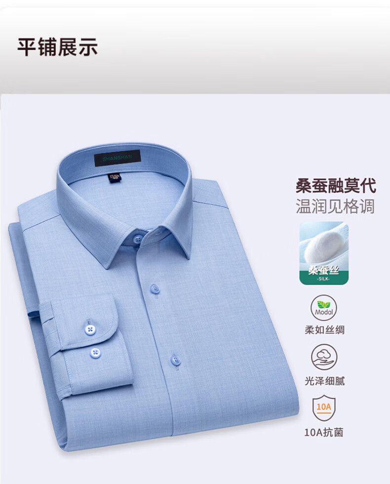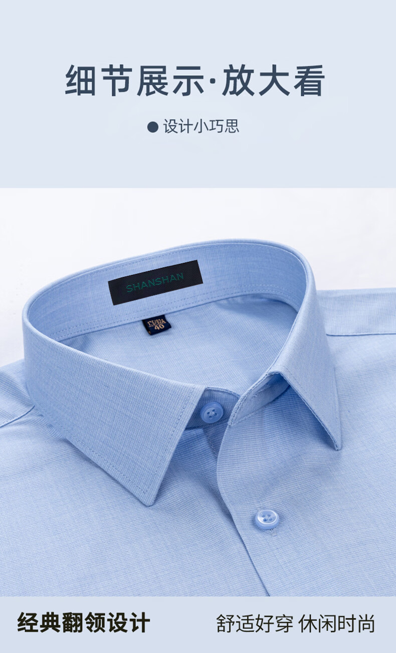 SHANSHAN杉杉【10A抗菌】长袖衬衫春季男士商务时尚易打理男上衣打底衫 蓝色 38 /170