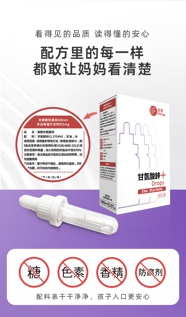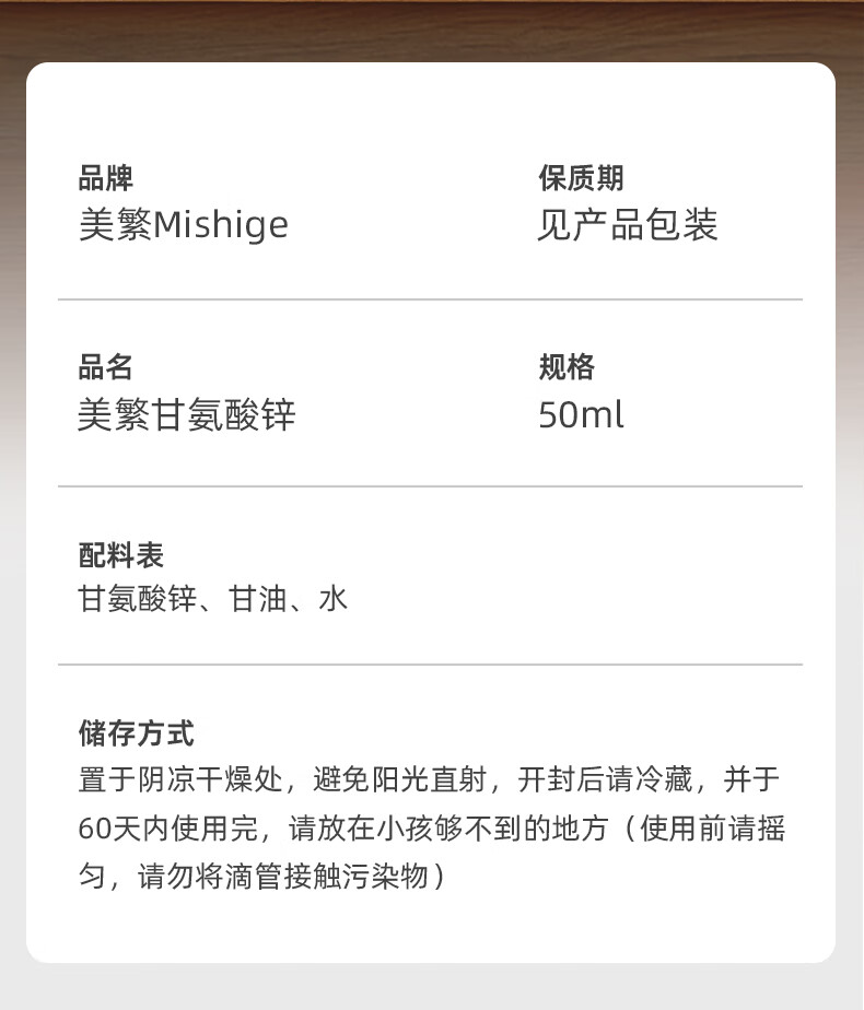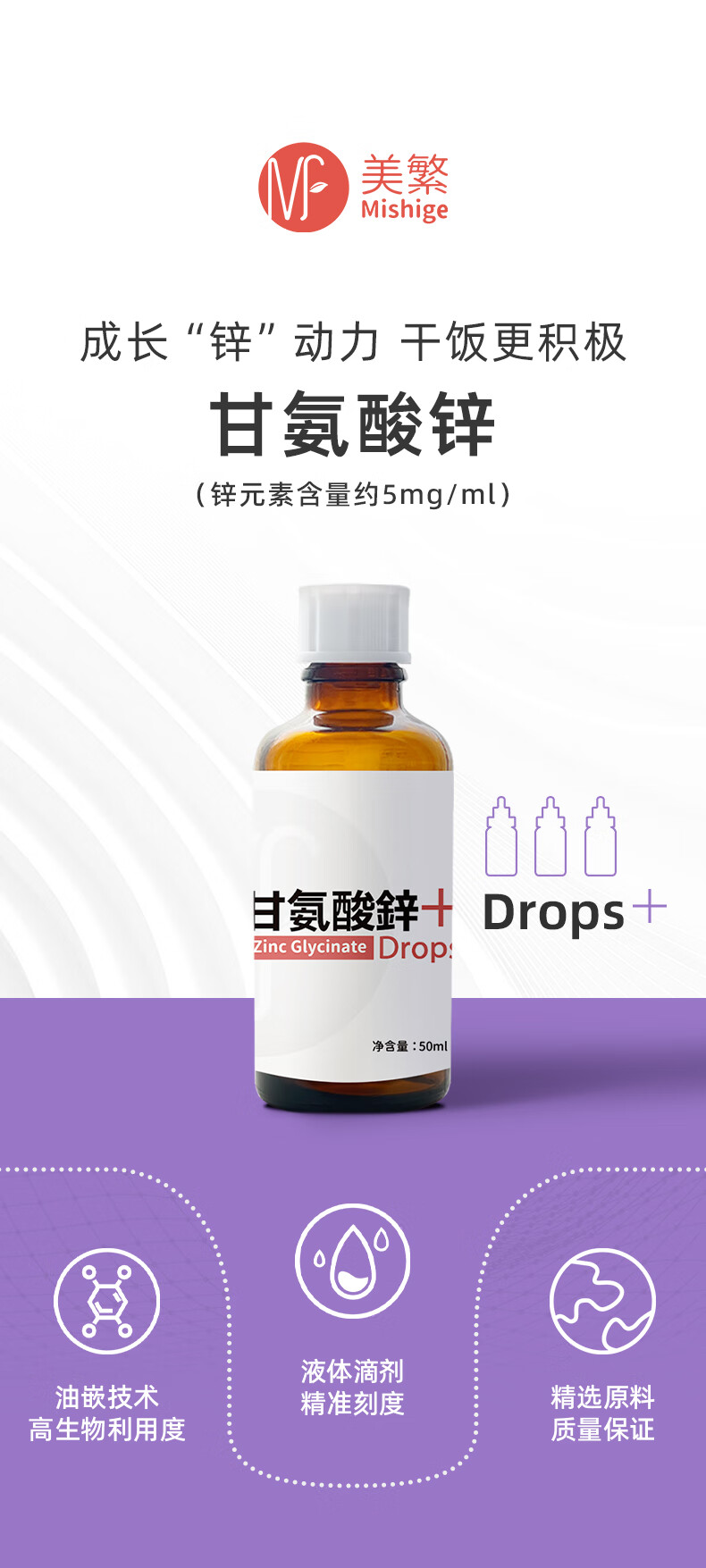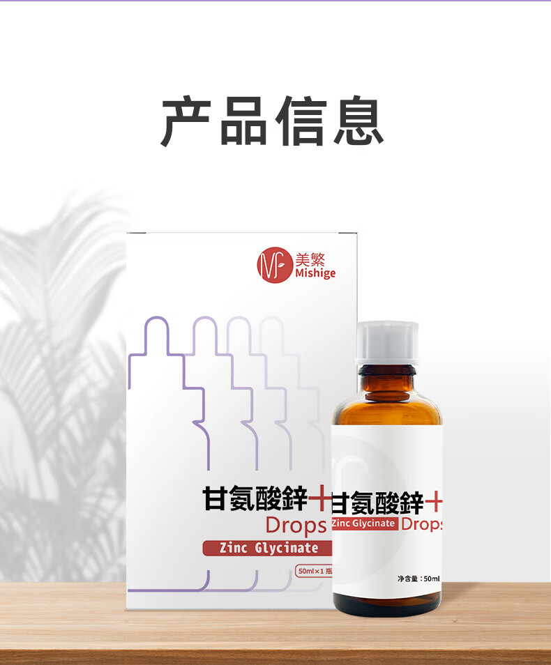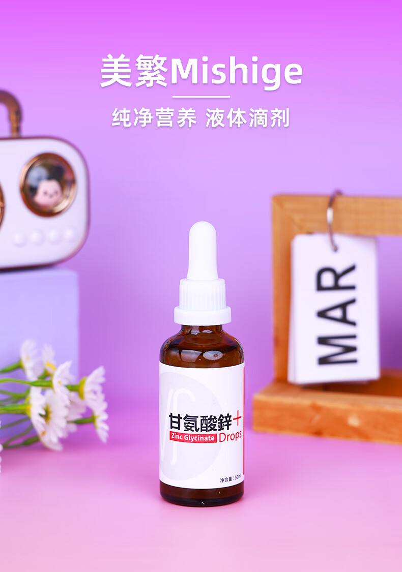 美繁Mishige甘氨酸锌液体滴剂50ml宝宝换季螯合锌菁华瓶 原装进口 50ml/瓶*1瓶