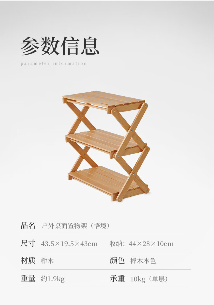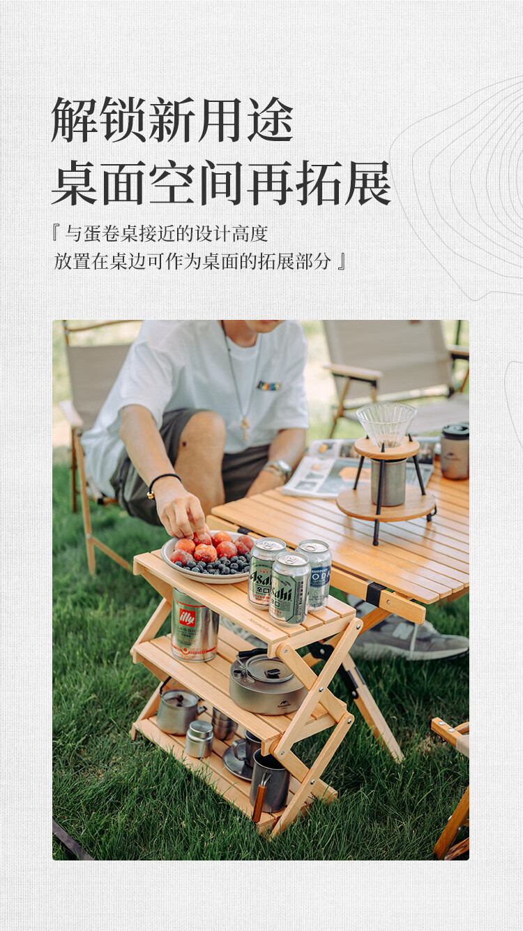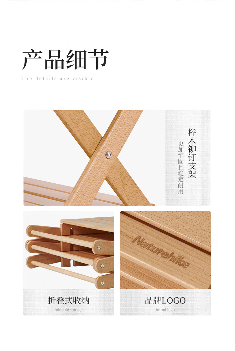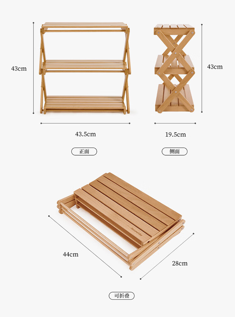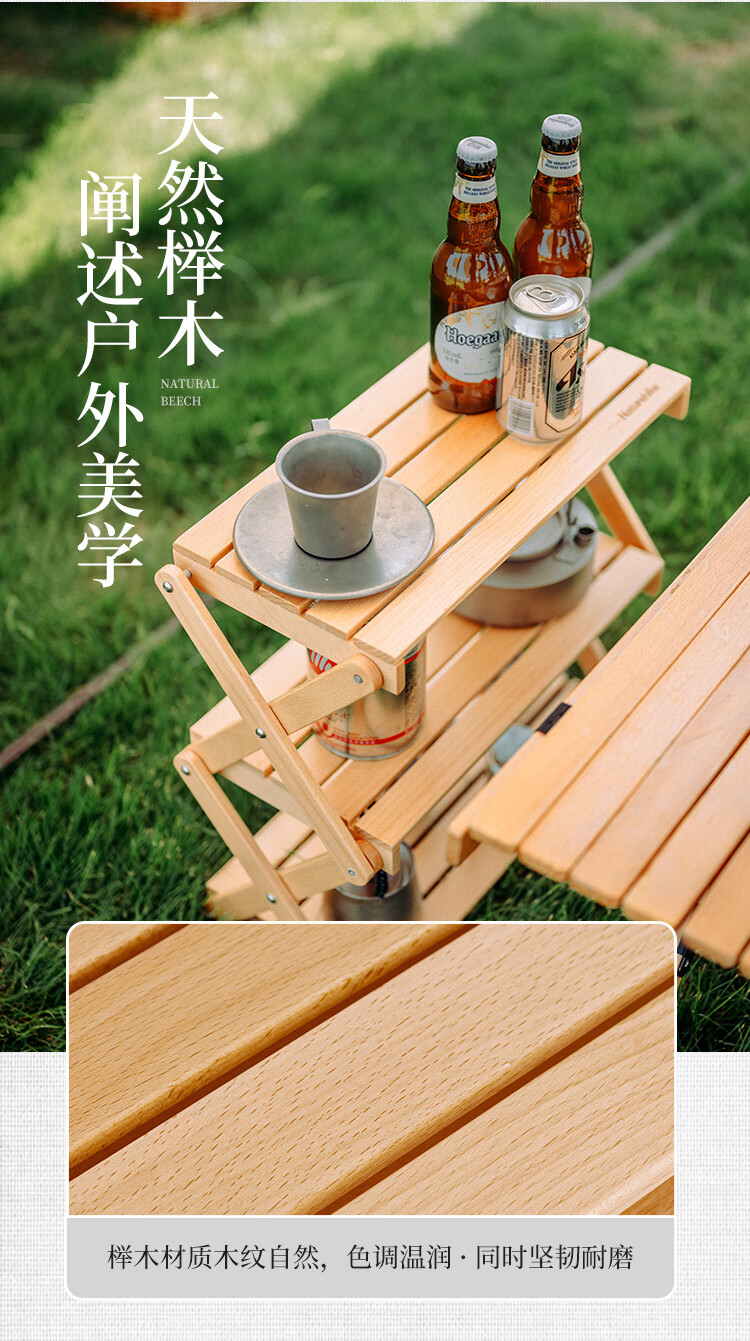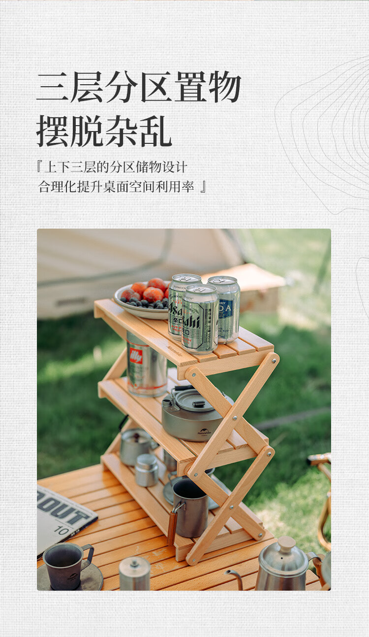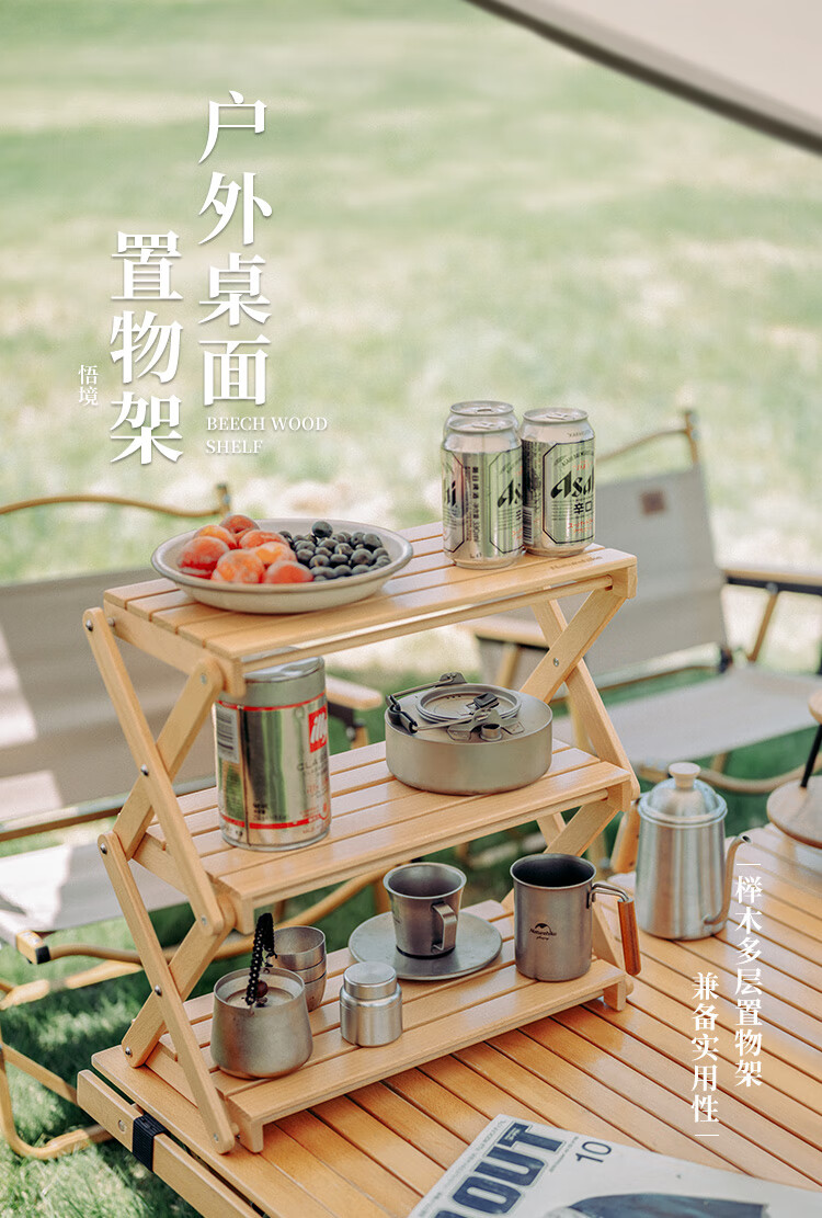 Naturehike挪客悟境桌面折叠实木置物架多层储物户外露营野餐便携式收纳架桌 榉木本色