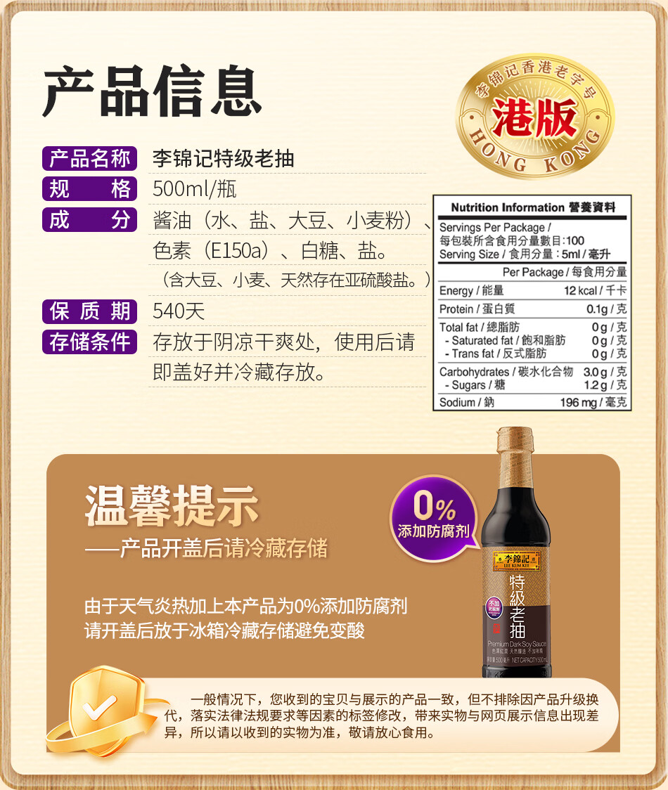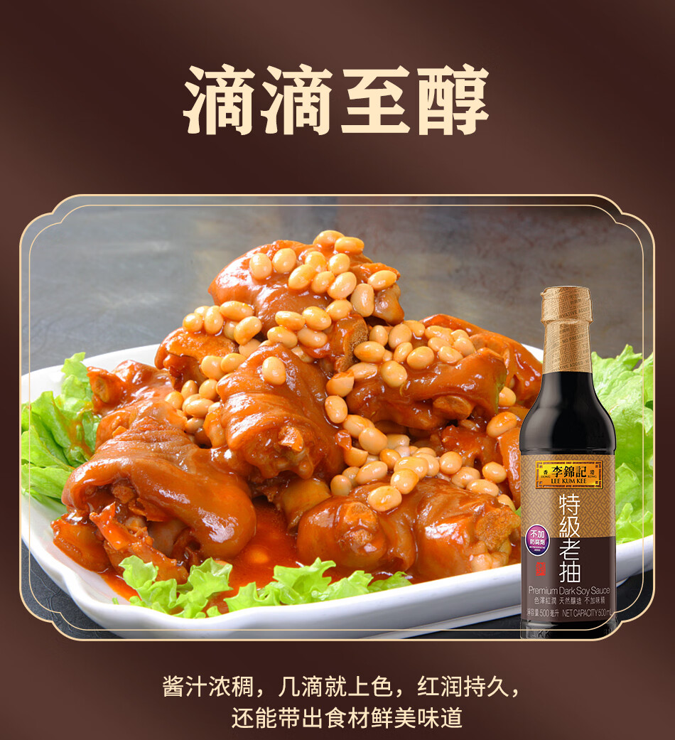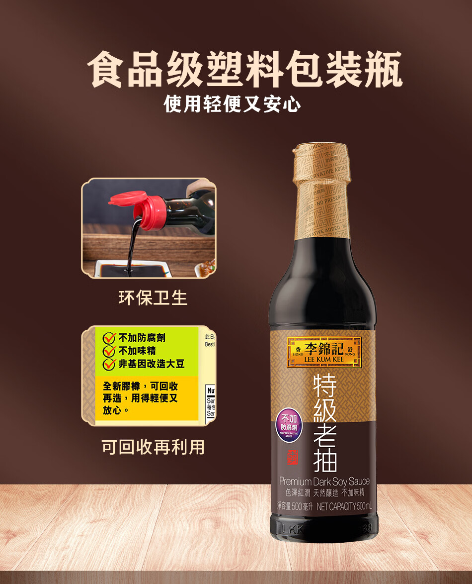 李锦记(LEE KUM KEE)特级老抽 酿造酱油厨房调味红烧提鲜上色家用 港货 塑料瓶装500ml