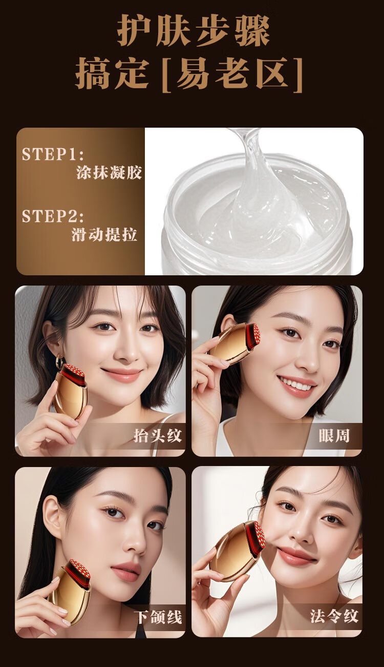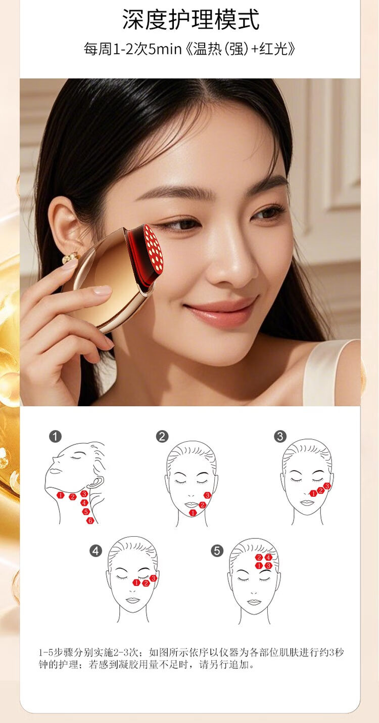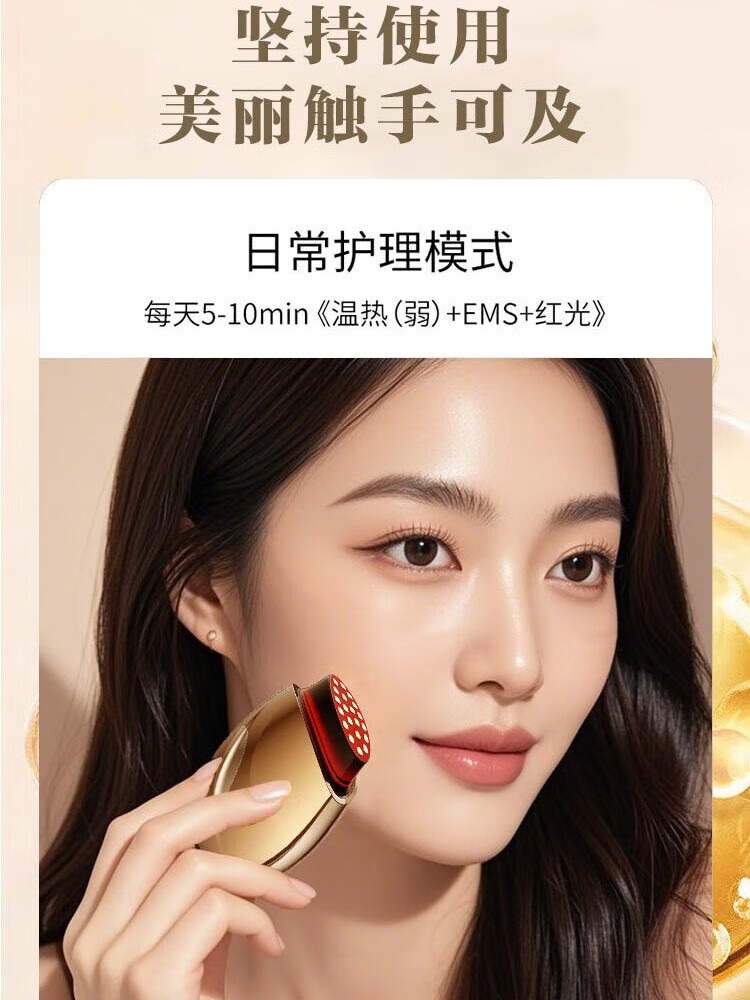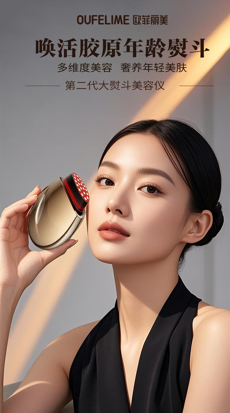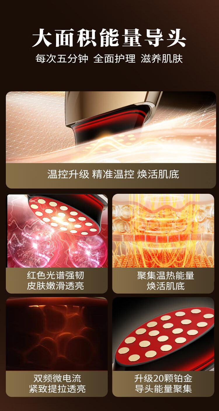 欧菲丽美大熨斗胶原炮美容仪家用V脸部精华导入仪淡纹提拉紧致面部美容仪器 铂金款【双频微电流+大电极+三重能量】