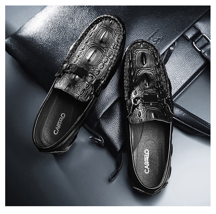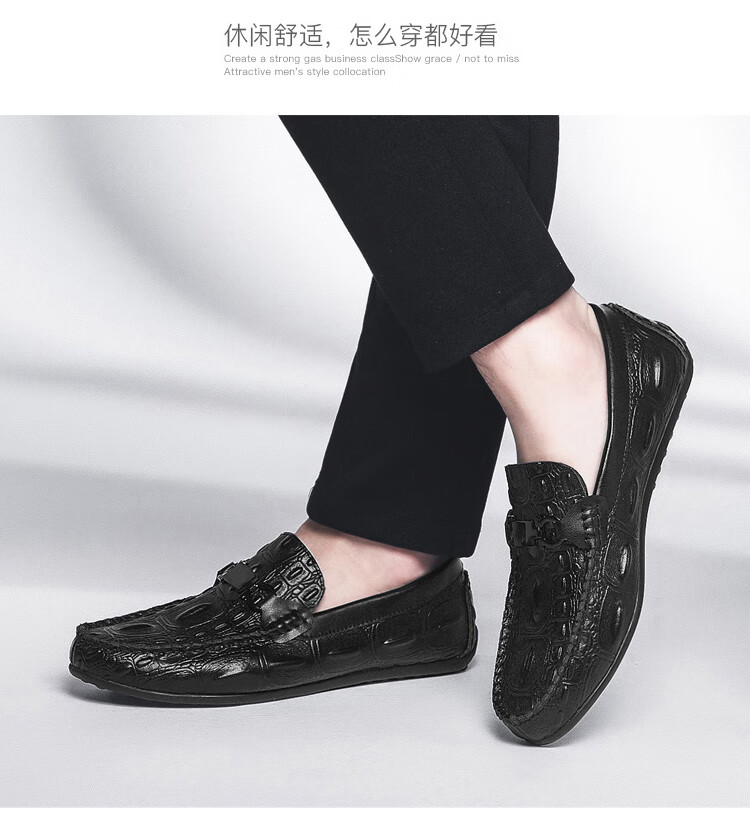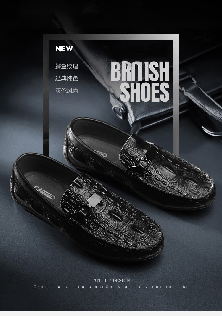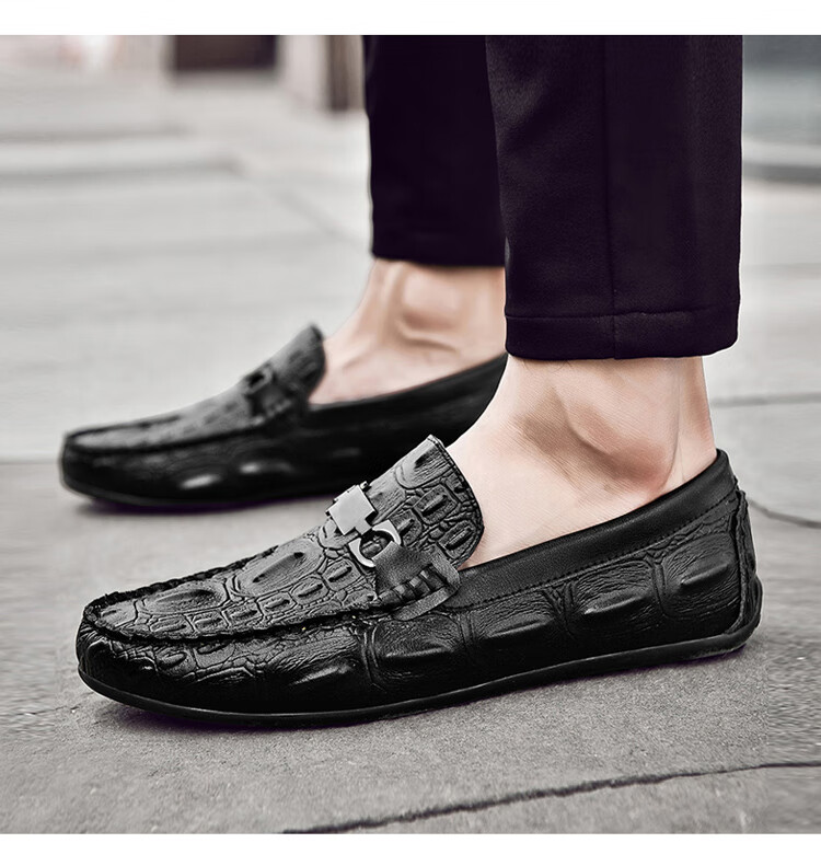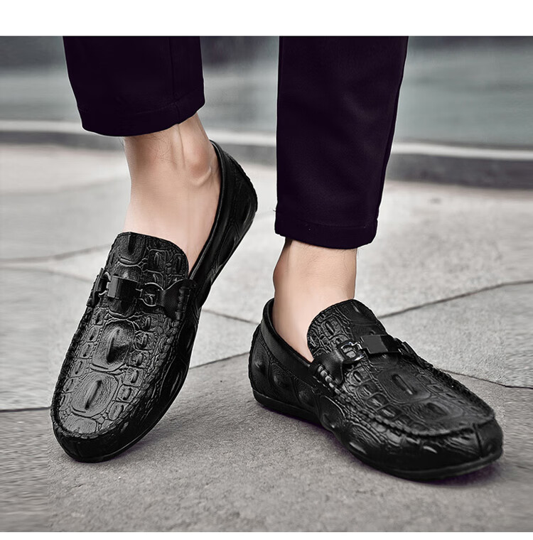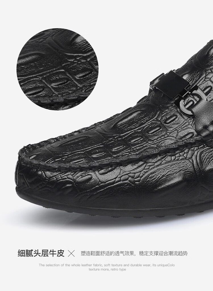 卡帝乐鳄鱼皮鞋男商务休闲鞋真皮系带中老年爸爸牛皮职场通勤男士西装正装鞋 5112黑色 41