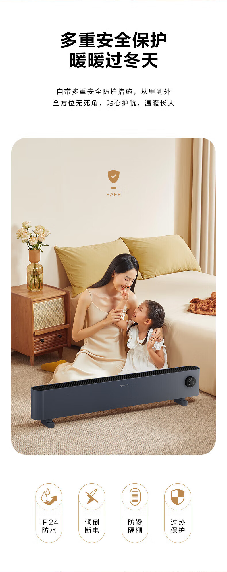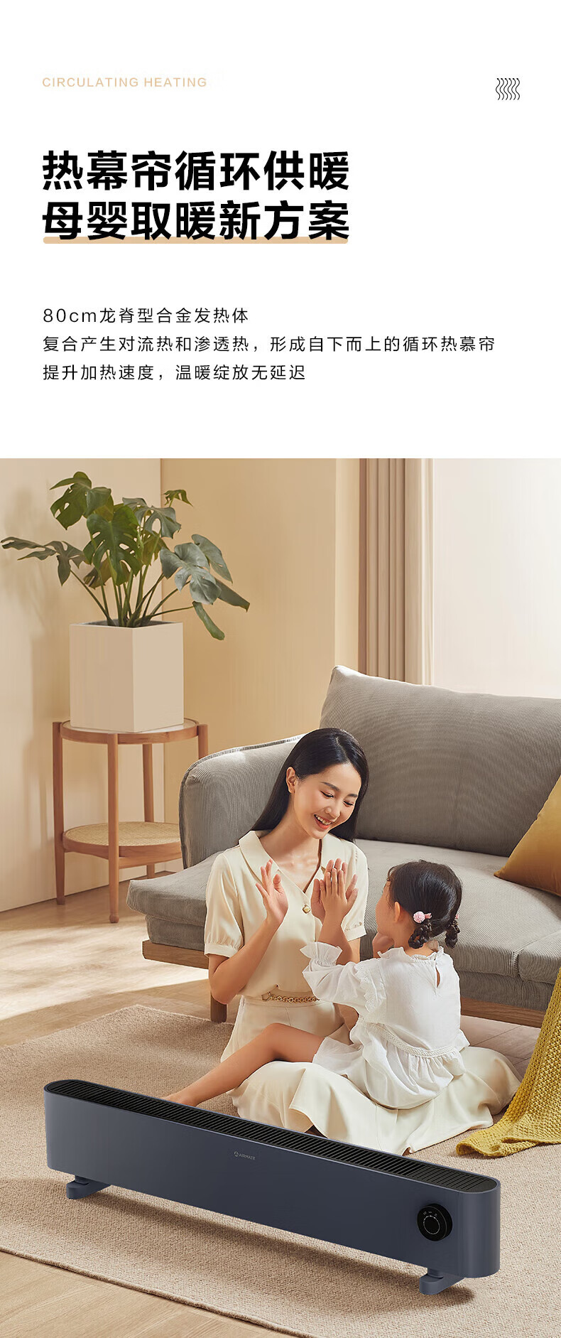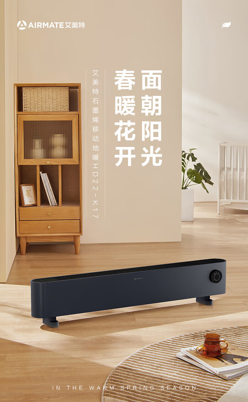 艾美特(AIRMATE)石墨烯电热踢脚线取暖器电暖气家用电暖器节能地暖客厅暖风机全屋取暖神器大面积 新升级1.1m长石墨烯踢脚线HD22-K17