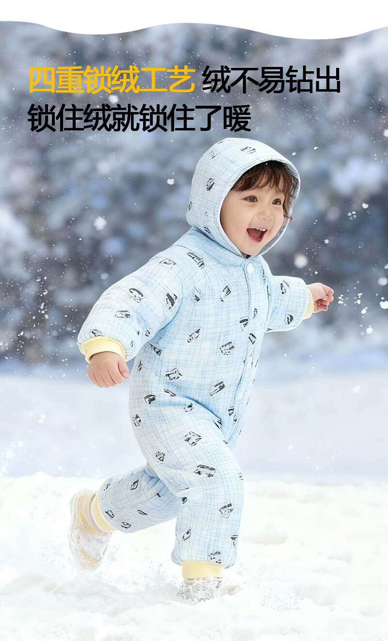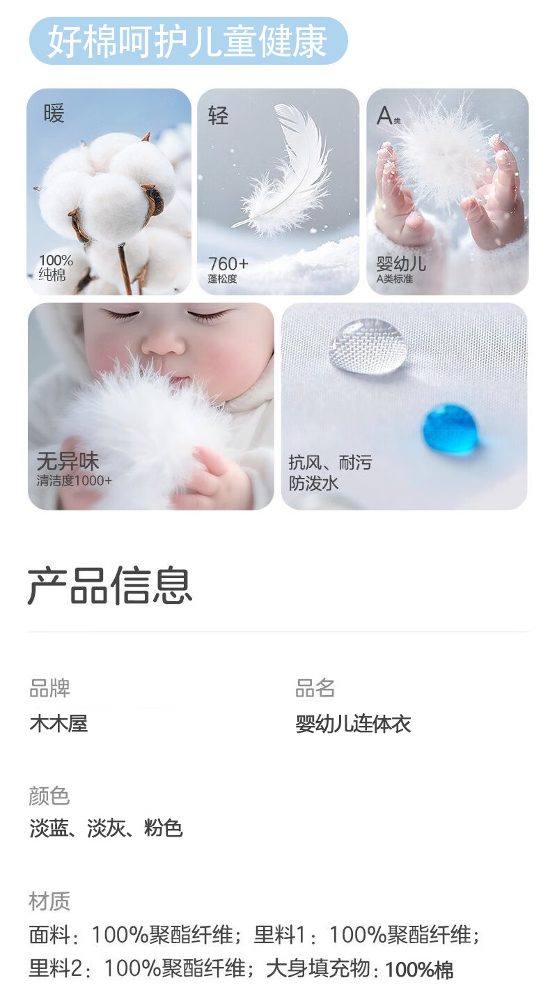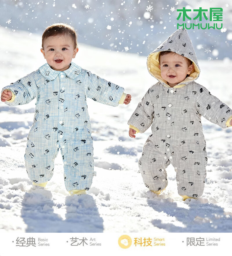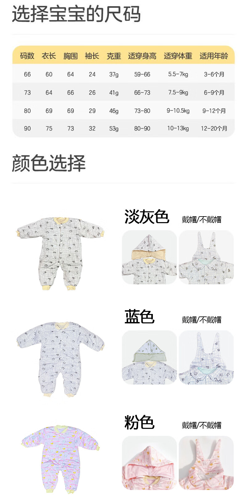 木木屋(mumuwu)【J】秋冬婴儿连体冬季保暖棉服宝宝连体衣 灰色-连体衣【带帽子款不带帽子随机发】 66cm码数