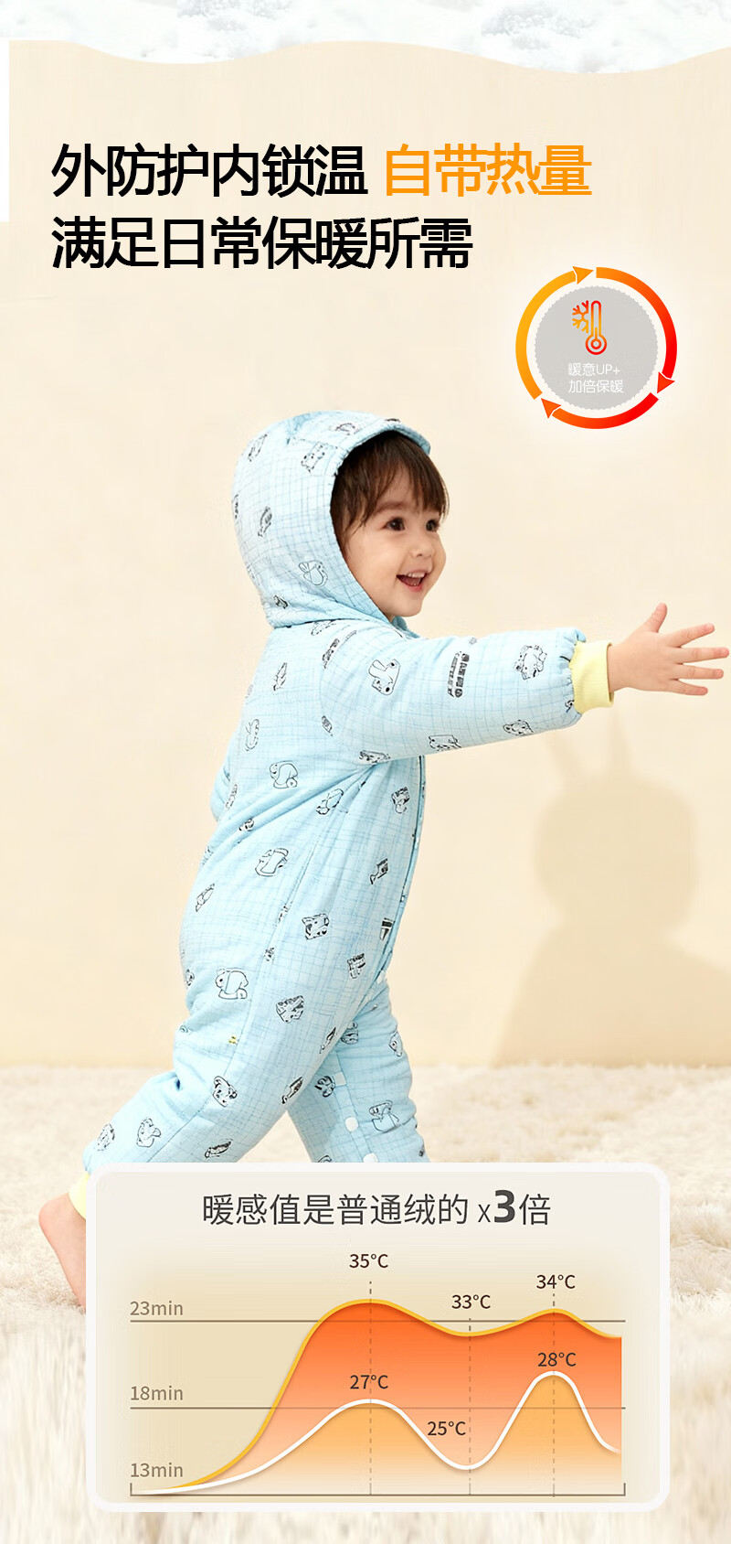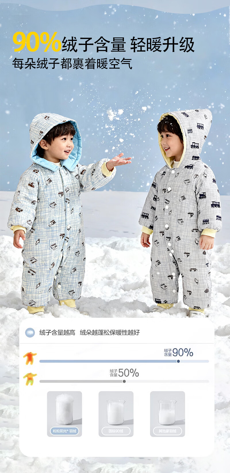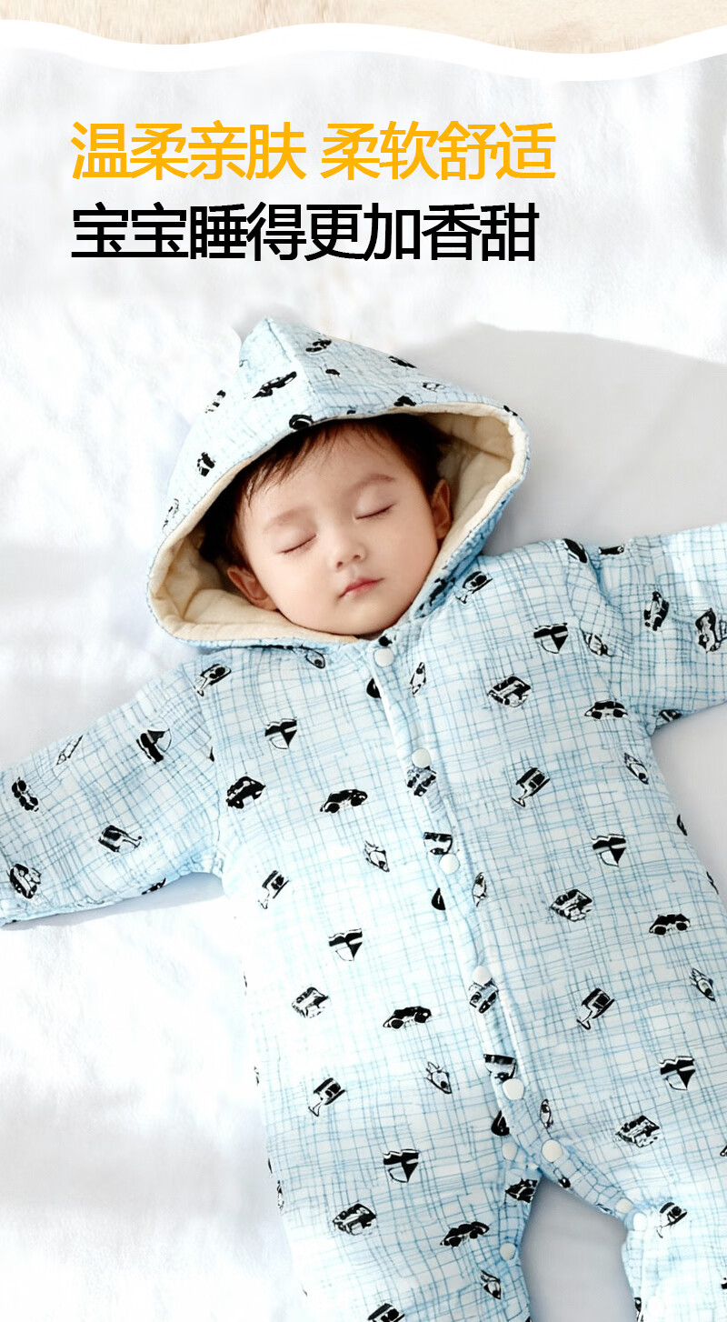 木木屋(mumuwu)【J】秋冬婴儿连体冬季保暖棉服宝宝连体衣 灰色-连体衣【带帽子款不带帽子随机发】 66cm码数