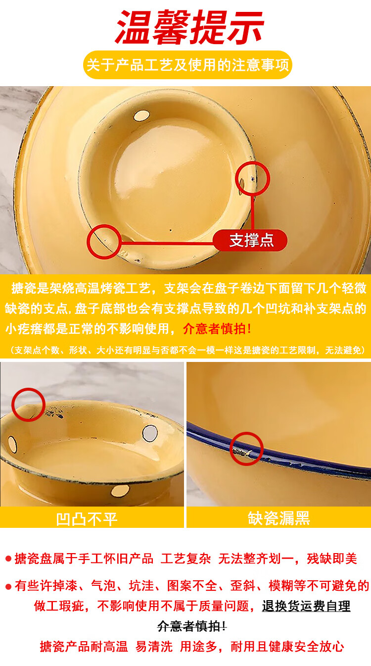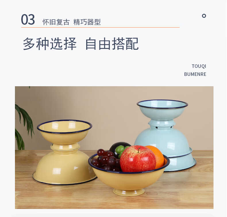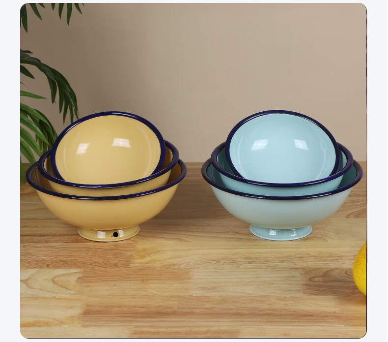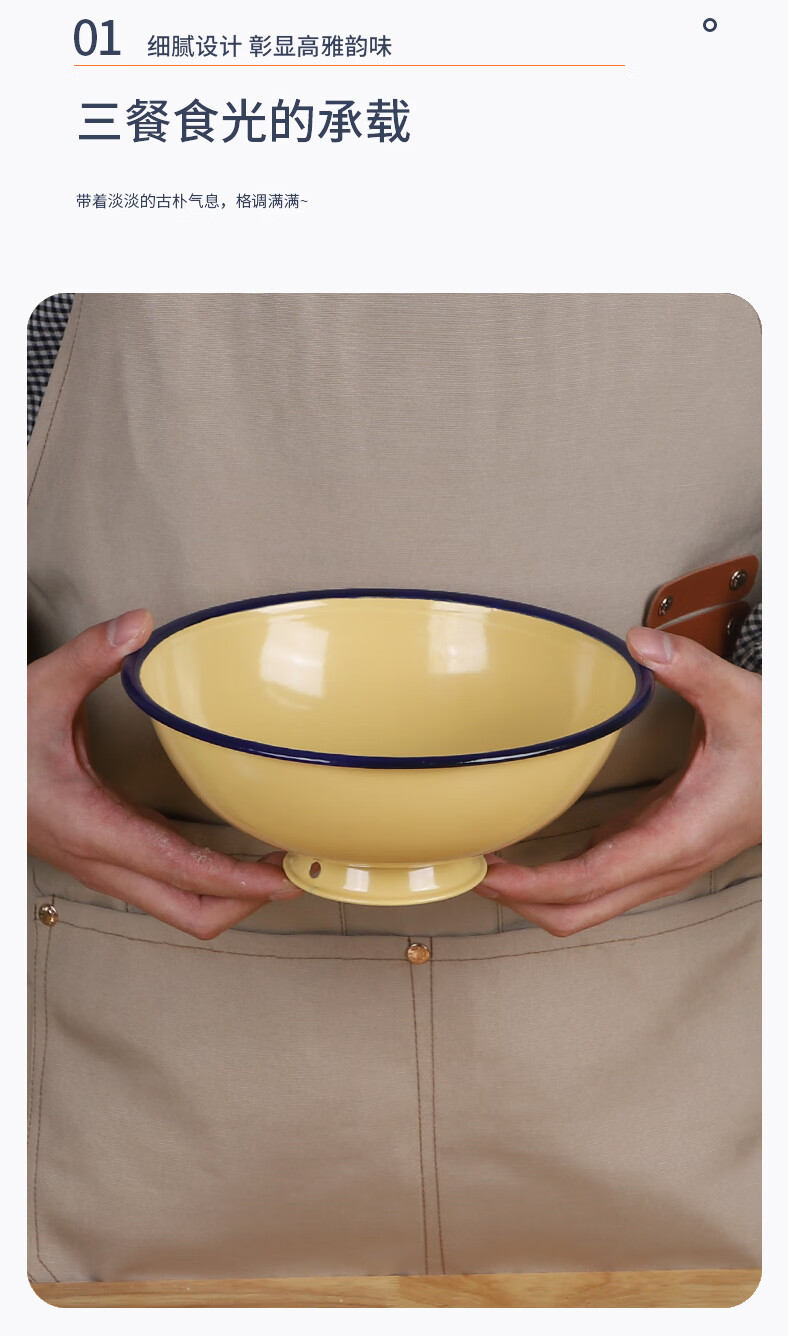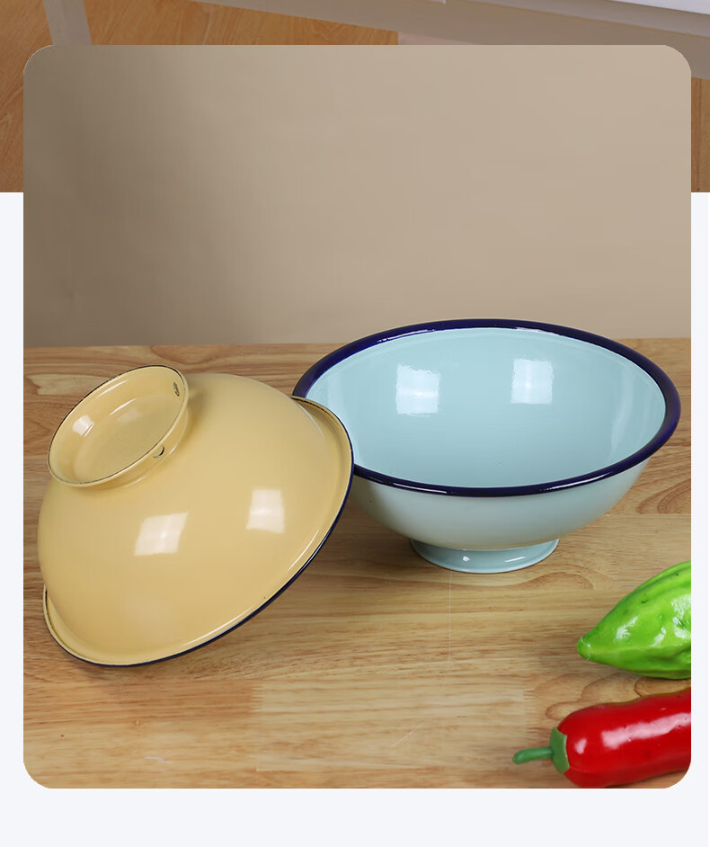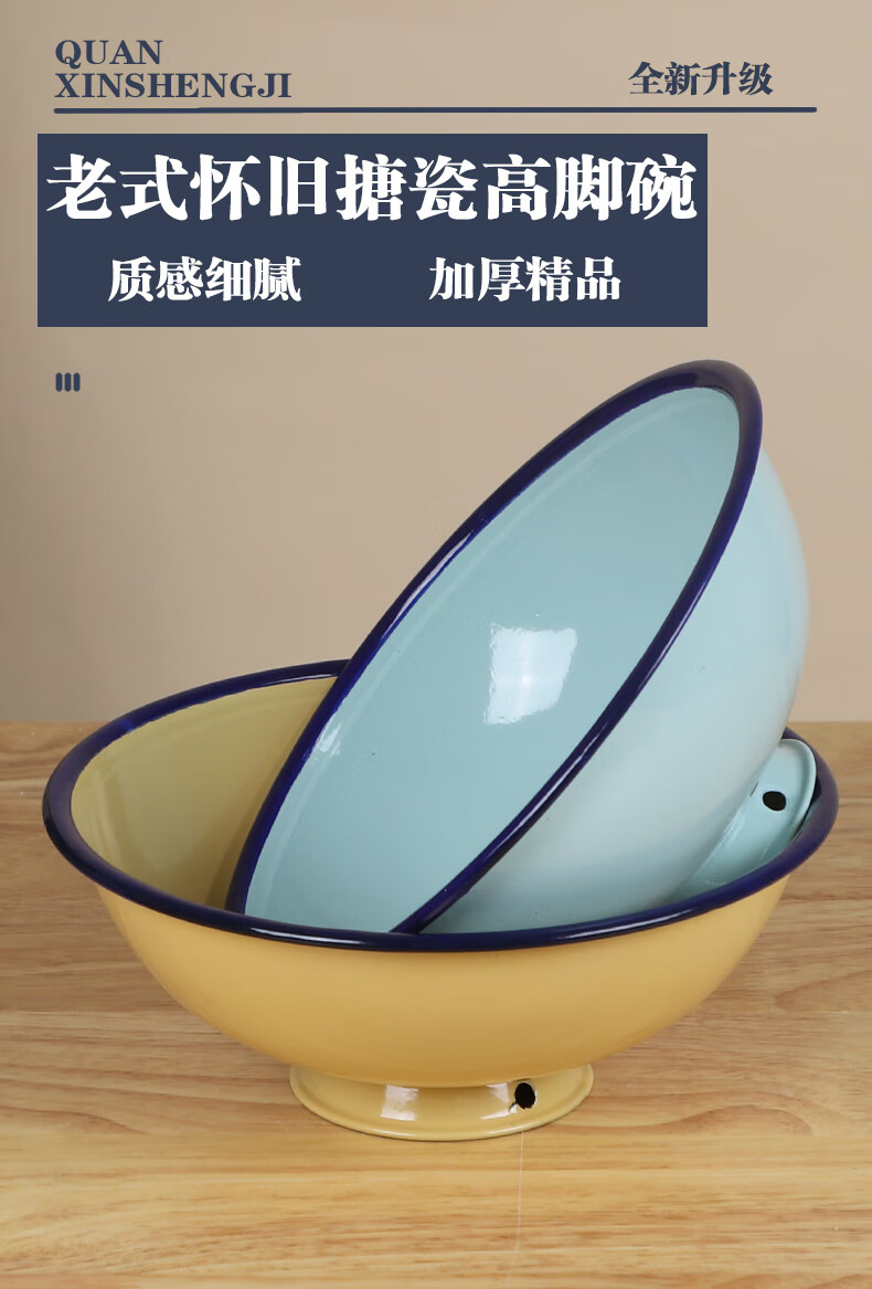 MPPMCK老式搪瓷碗加厚耐高温家用高颜值个人精致好 【加厚湖蓝】18厘米高脚碗