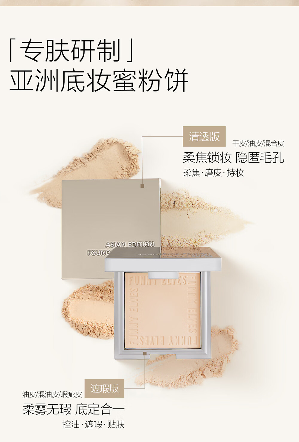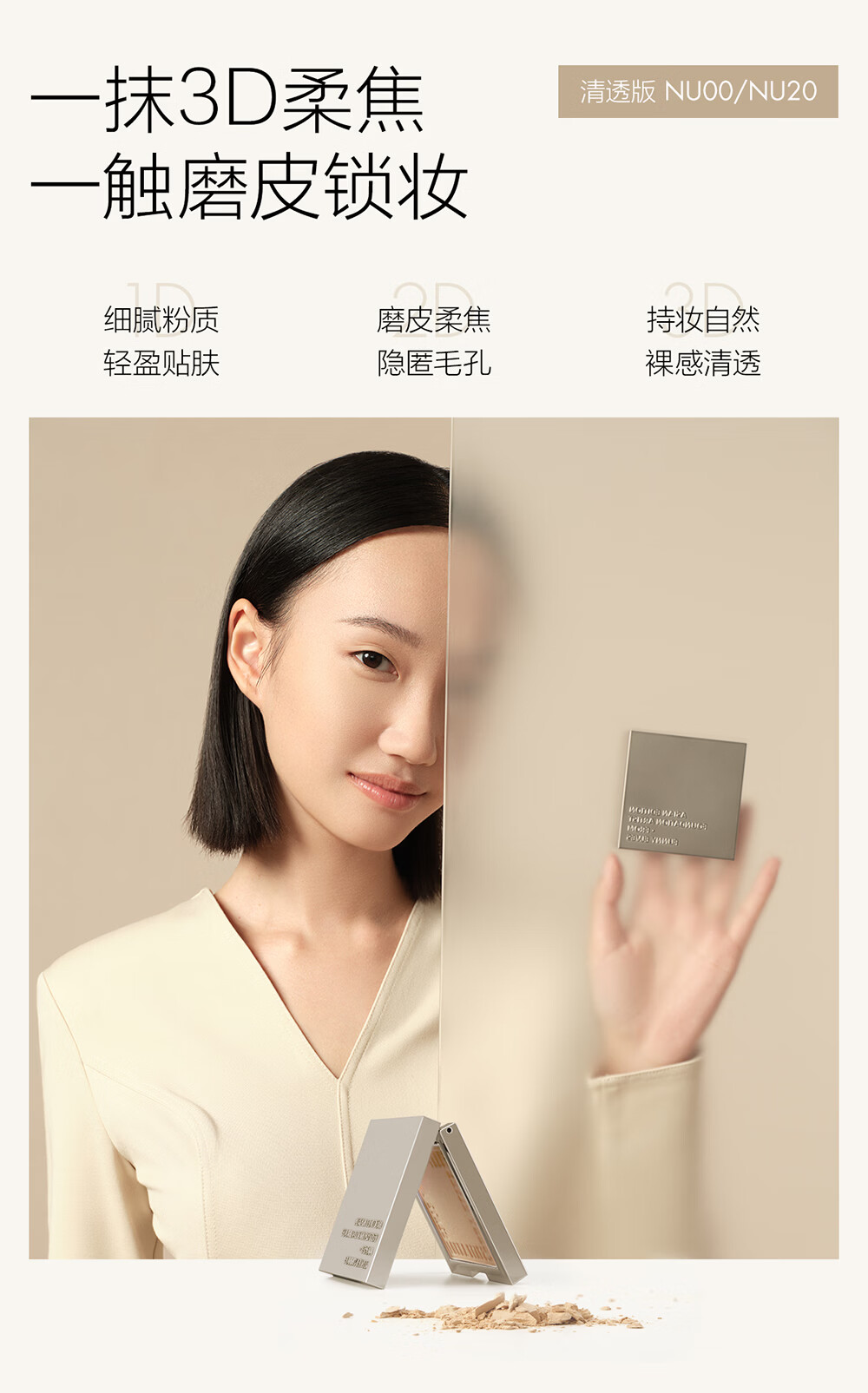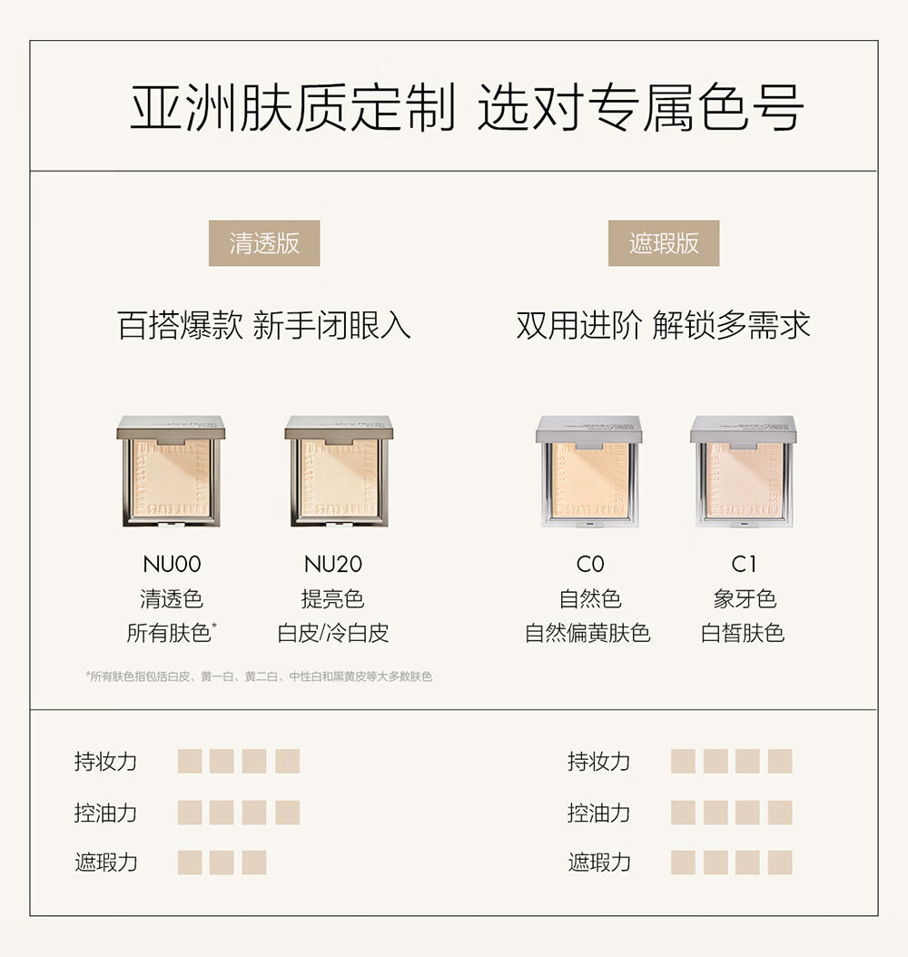 方里柔焦蜜粉饼底妆套装遮瑕定妆 清透色7gNU00+干皮W21