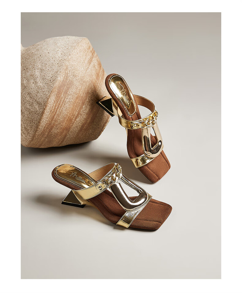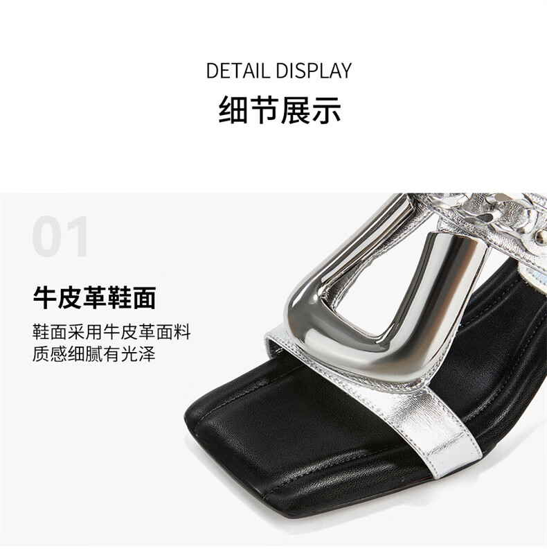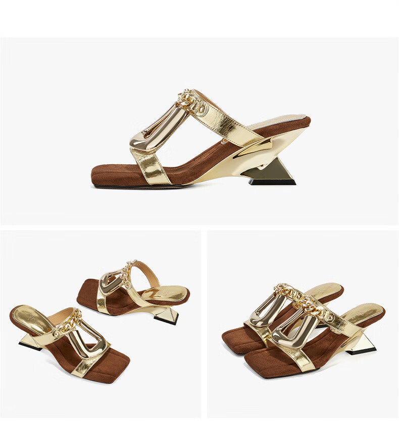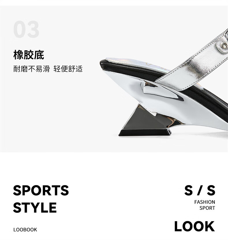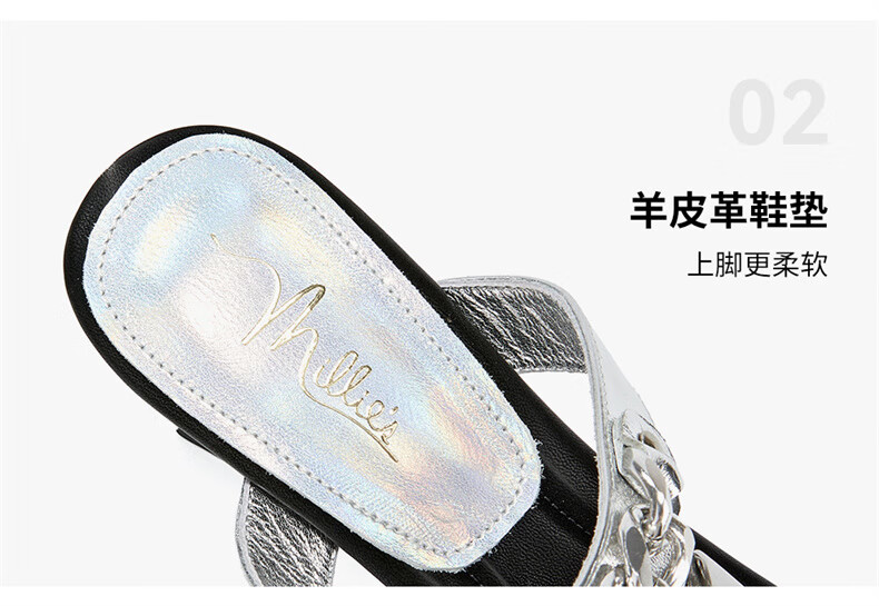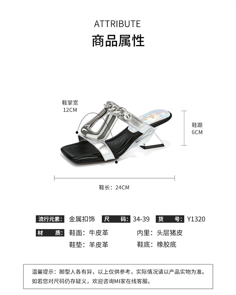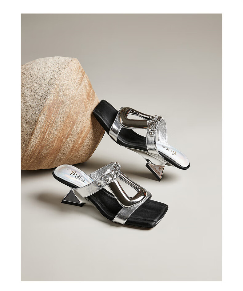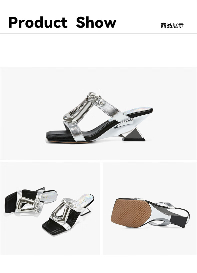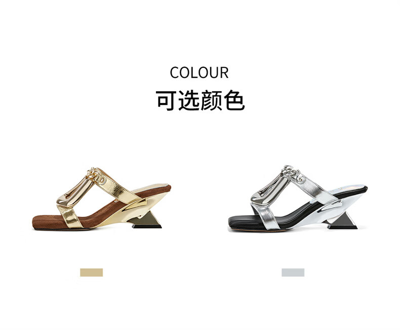 妙丽拖鞋女外穿坡跟时尚设计感休闲百搭凉拖鞋2025冬季新款 银色 37 标准码
