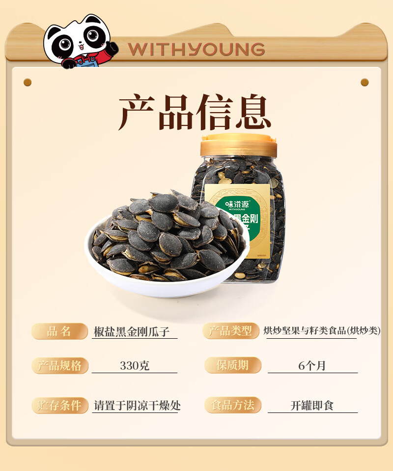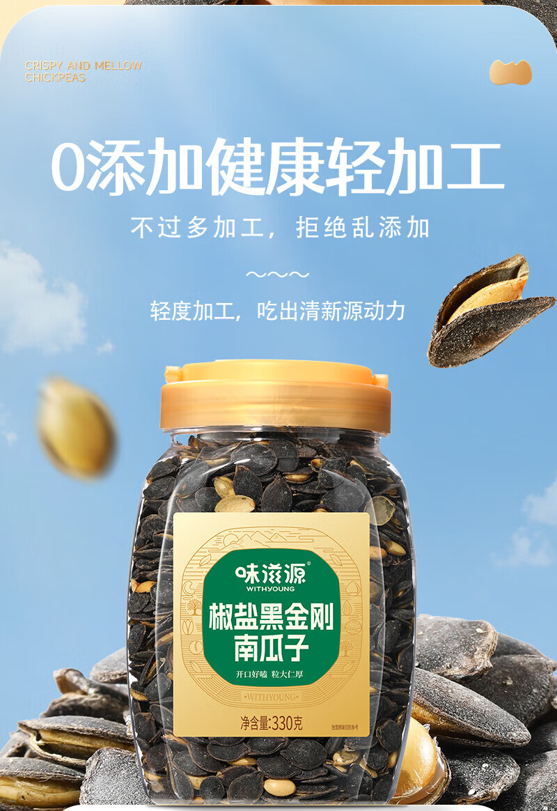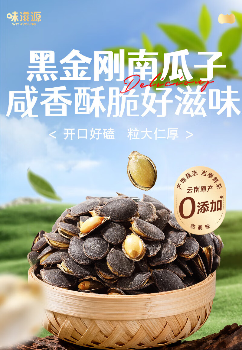 味滋源黑金刚南瓜子330g罐装 大颗粒盐味新炒货坚果籽零食小包装年货 330g/罐*1