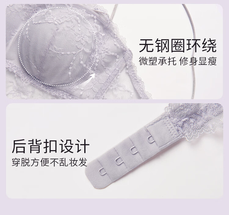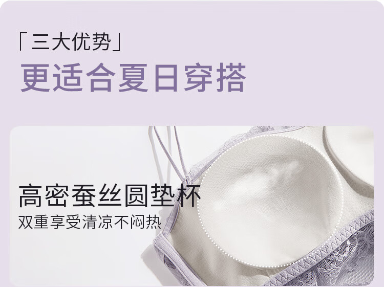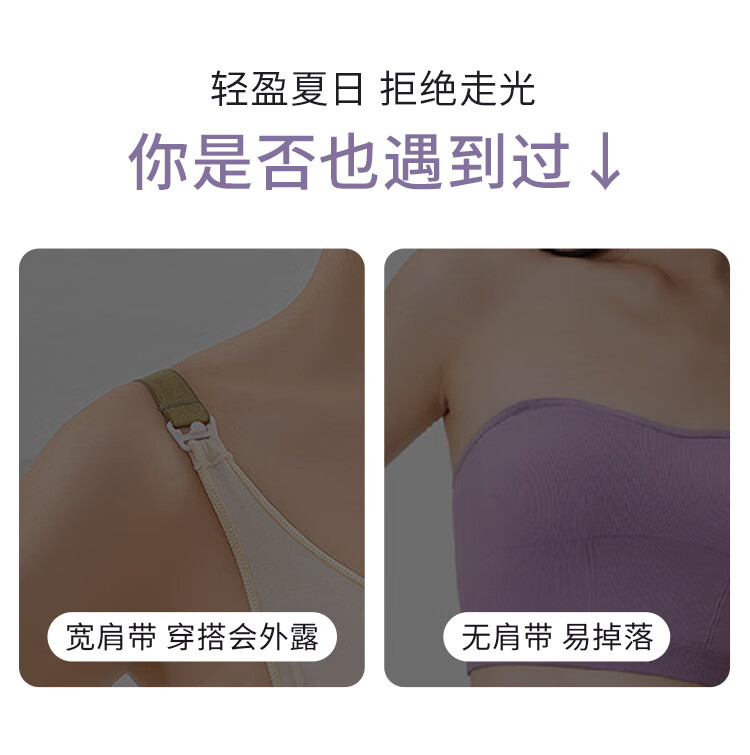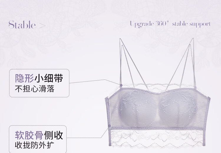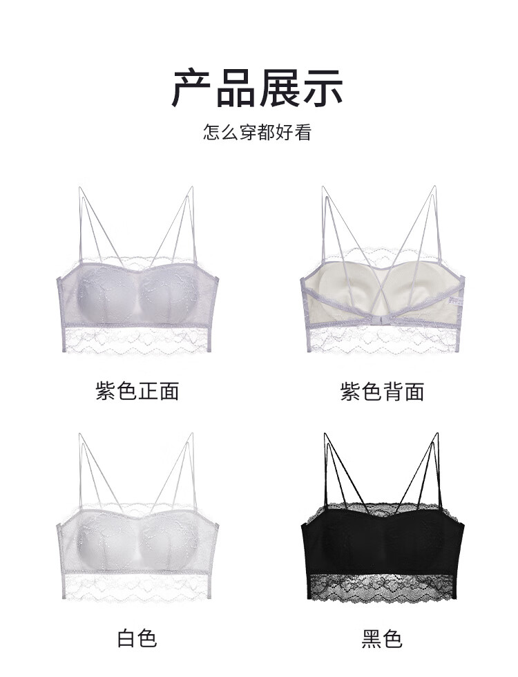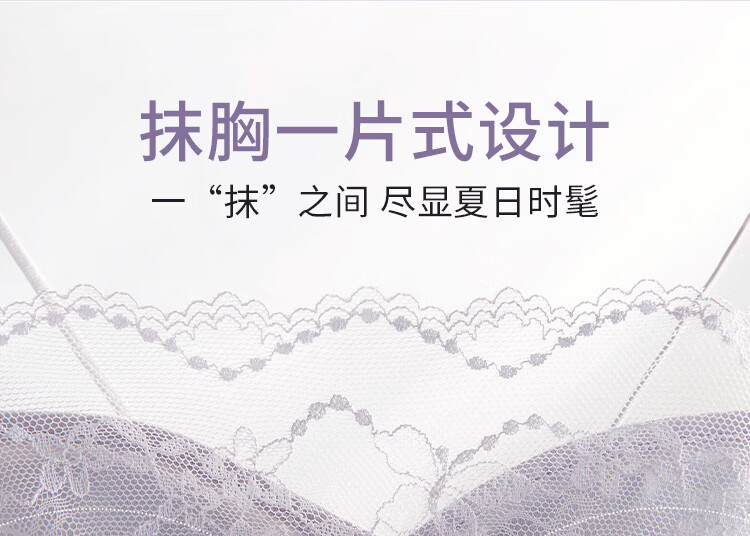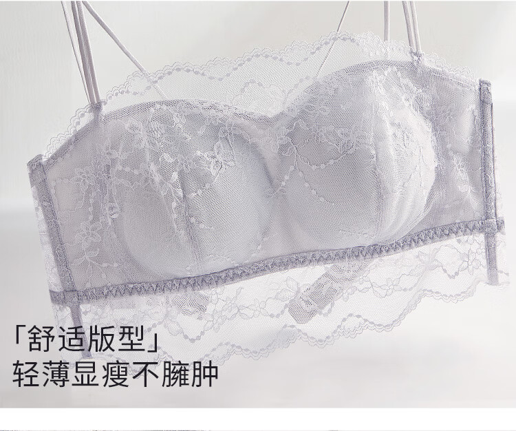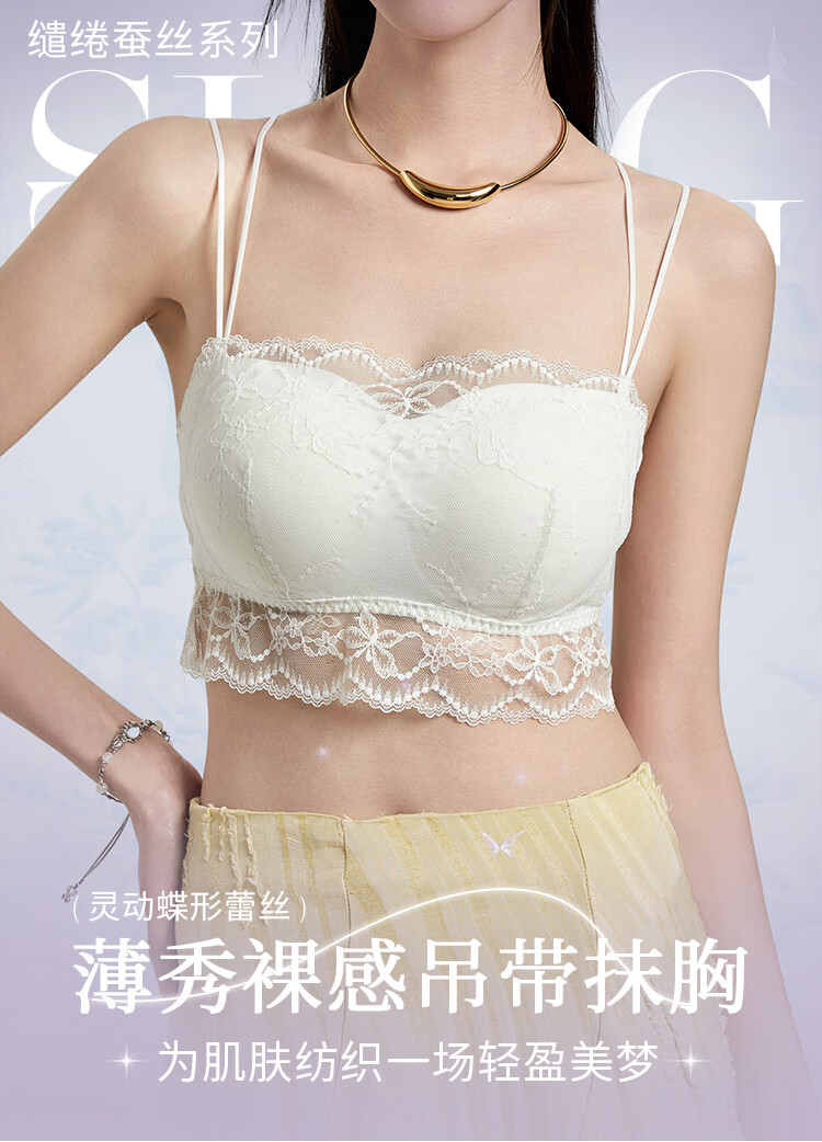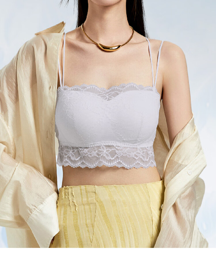 夏娃的诱惑薄款美背内衣女无钢圈抹胸式蕾丝防走光细肩带文胸内衣 月光白 M (160/85) 推荐85-100斤