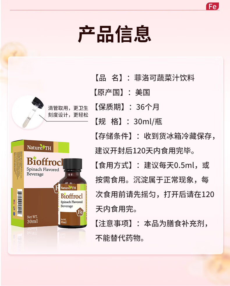 菲洛可铁剂30ML营养液 蔬菜汁饮料 美国进口 儿童孕妇青少年铁剂 30ml*1瓶