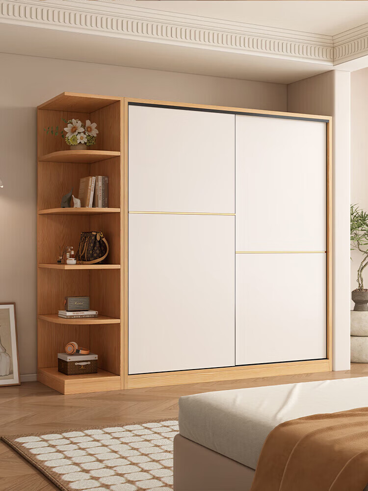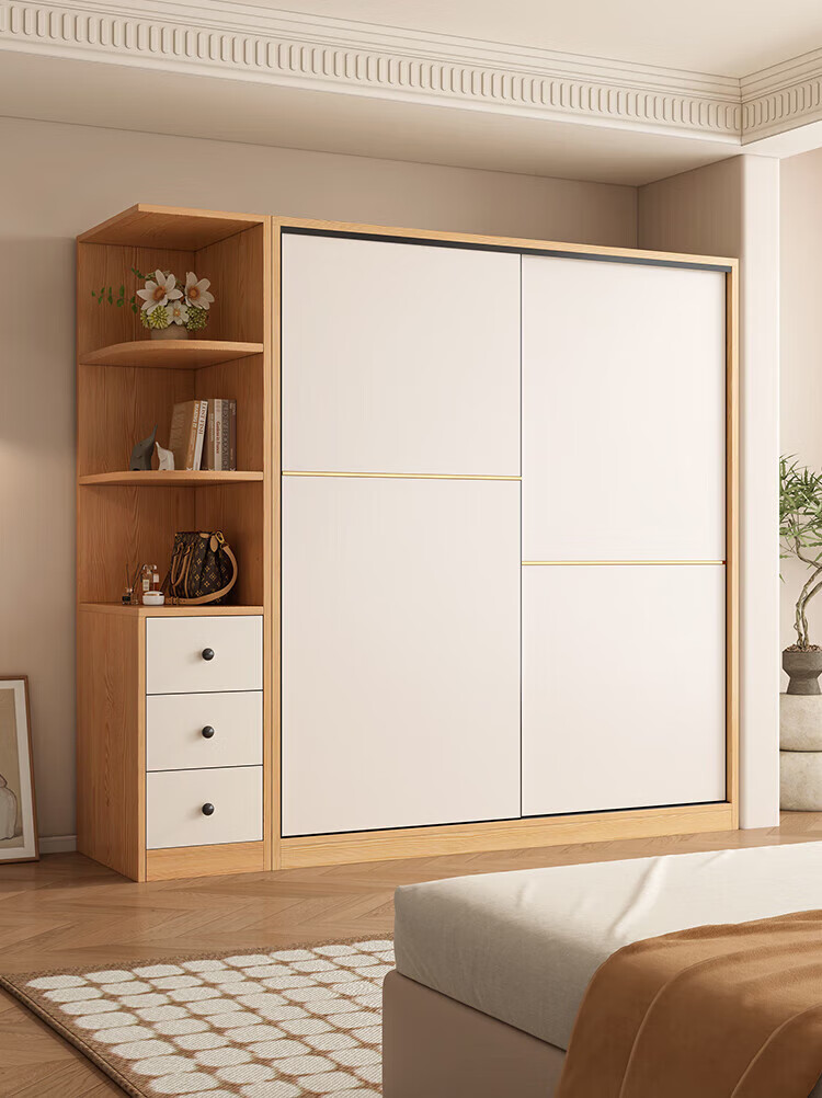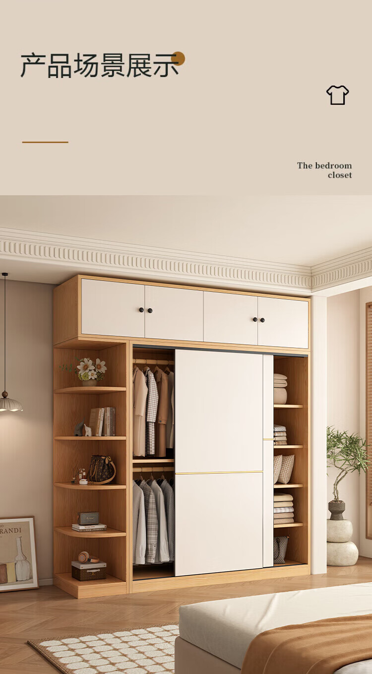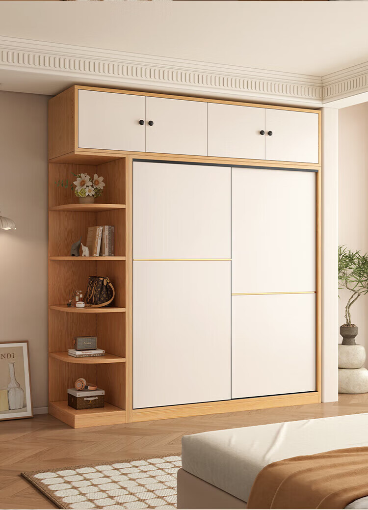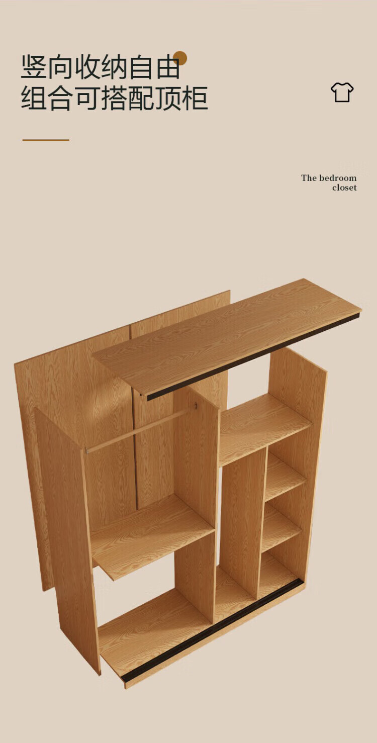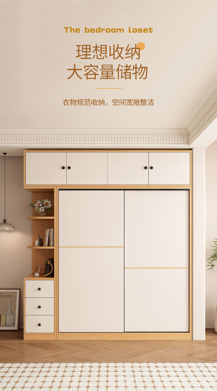 清逸【免费安装】衣柜卧室推拉门实木质多门储物衣橱原木简易大衣柜 【三门】200厘米主柜+顶柜+边柜