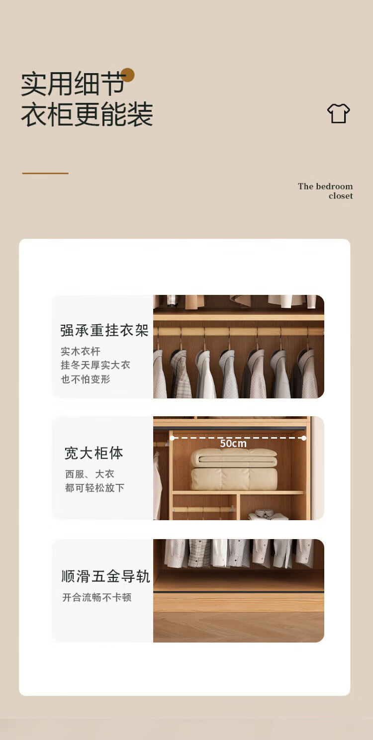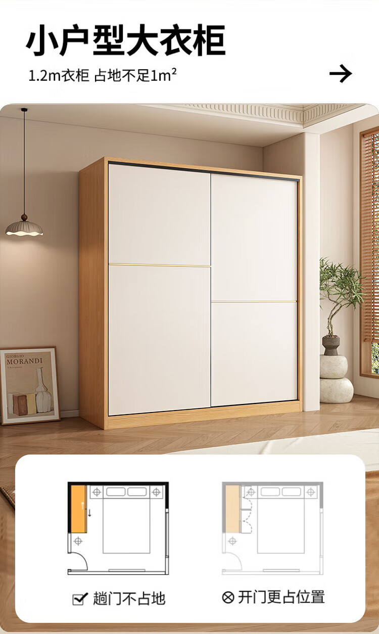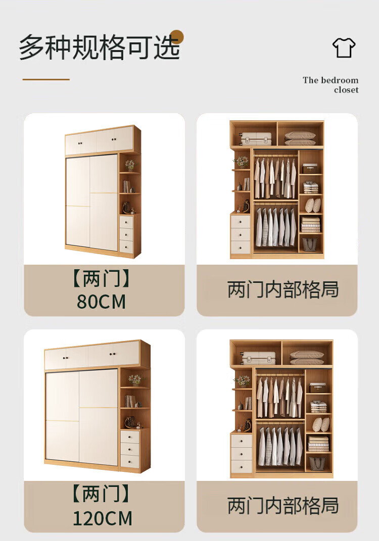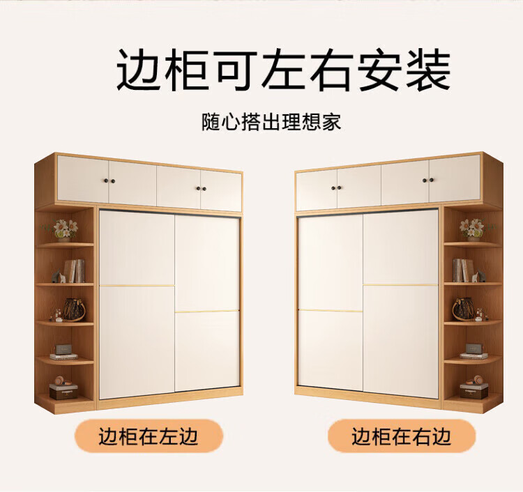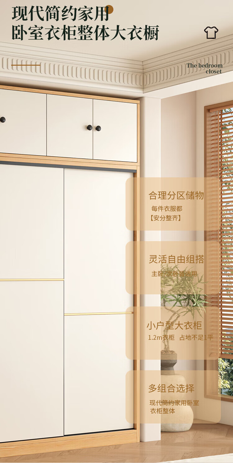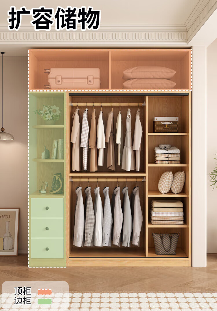 清逸【免费安装】衣柜卧室推拉门实木质多门储物衣橱原木简易大衣柜 【三门】200厘米主柜+顶柜+边柜