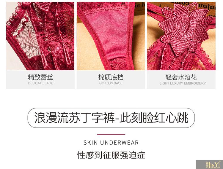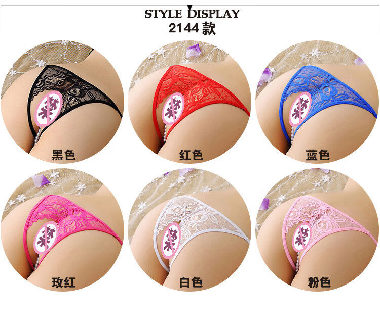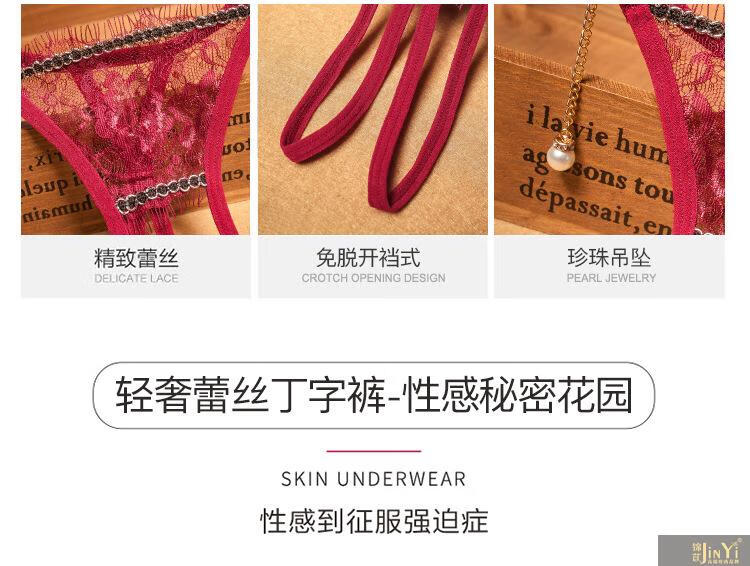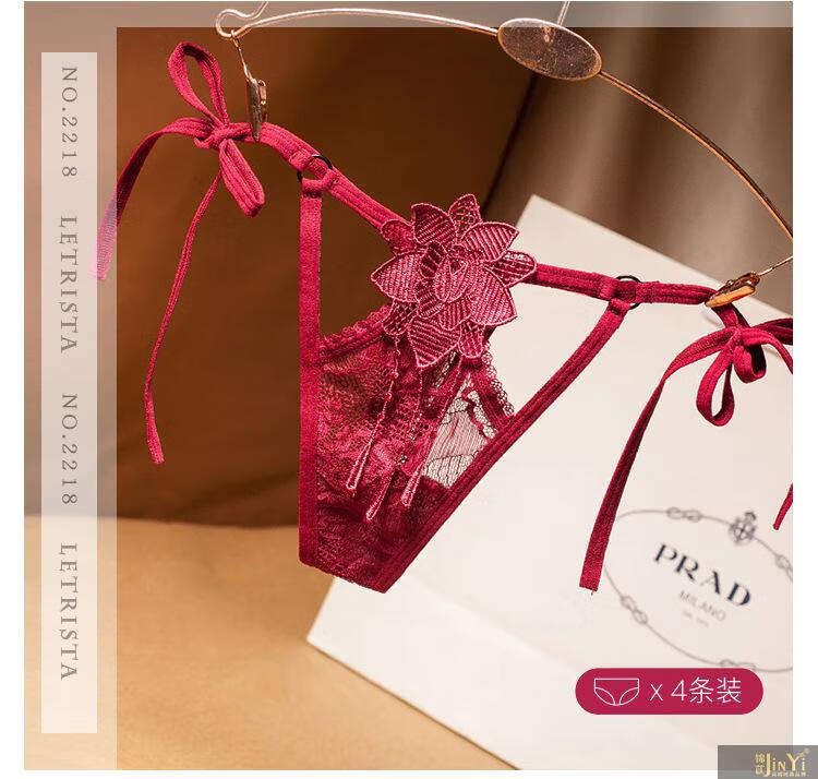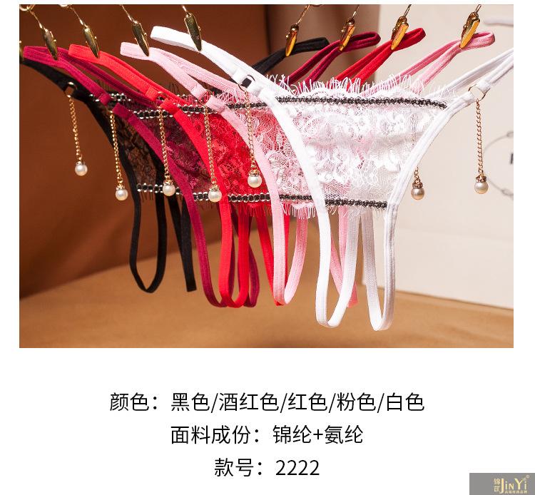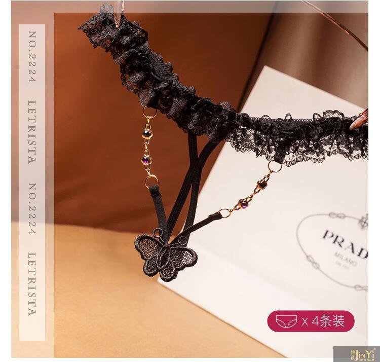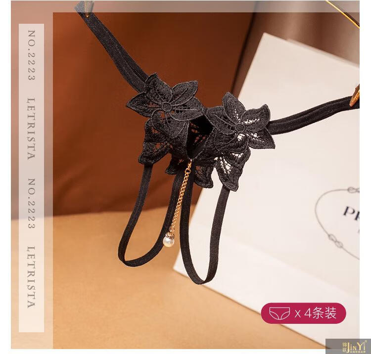 锦苡轻奢蕾丝丁字女透明薄款性感低腰珍珠按摩床上调情火辣内裤 2222黑2223黑2218黑2144黑 礼盒保密发货 4条 均码