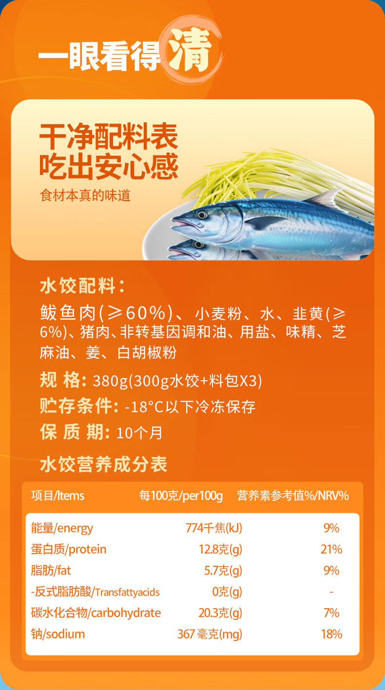饺好运鲅鱼水饺 手工海鲜饺子早餐宵夜速食速冻饺子儿童早餐 鲅鱼水饺300g*2袋