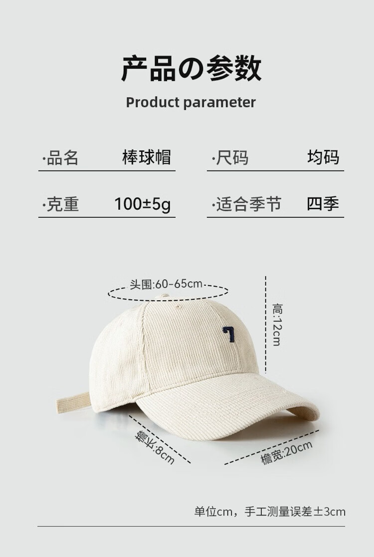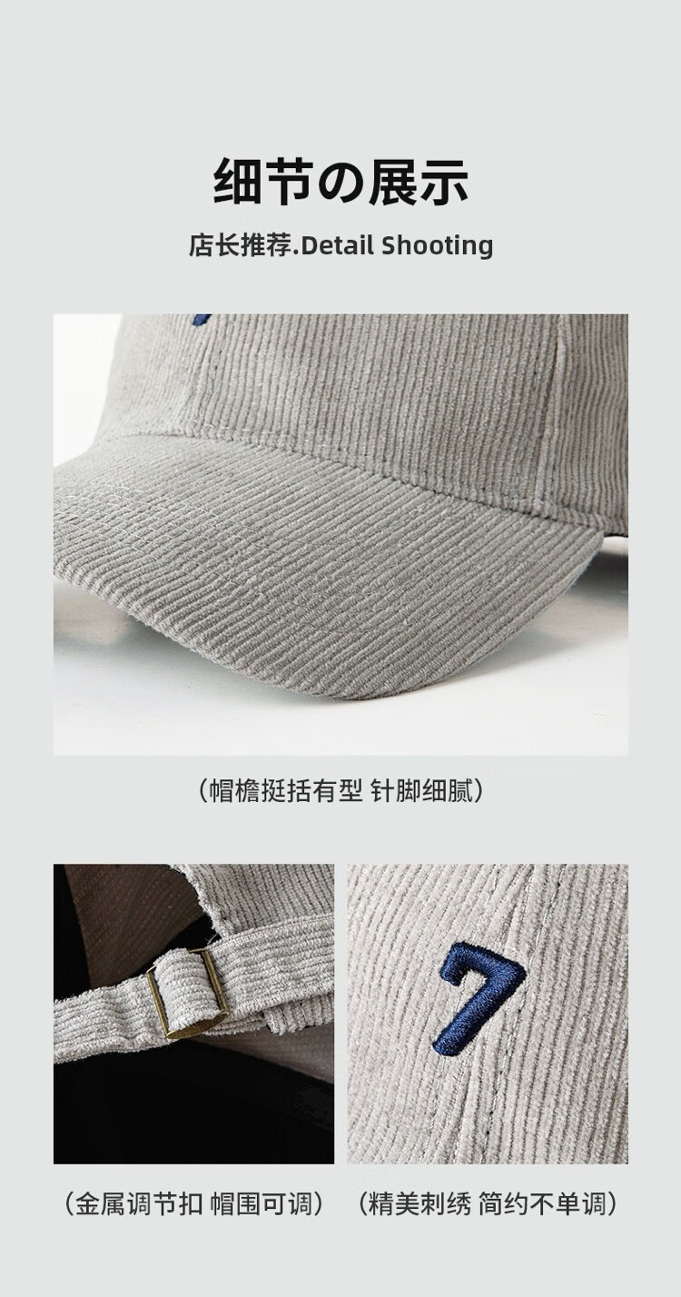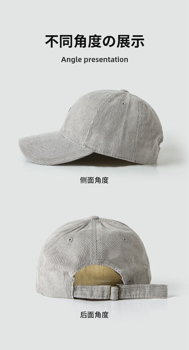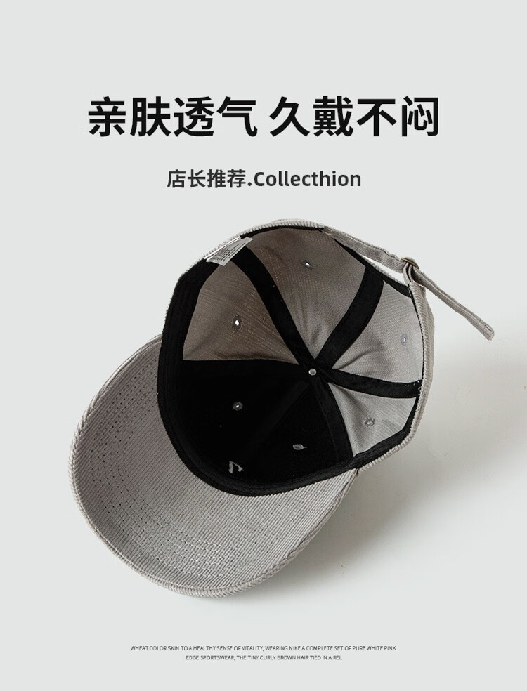南沚65CM大头围棒球帽子男灯芯绒鸭舌帽女韩版潮百搭大头围显脸小遮阳 7-藏青 XL 60-65CM