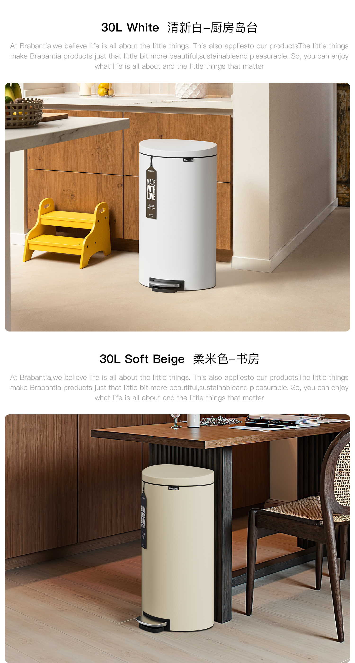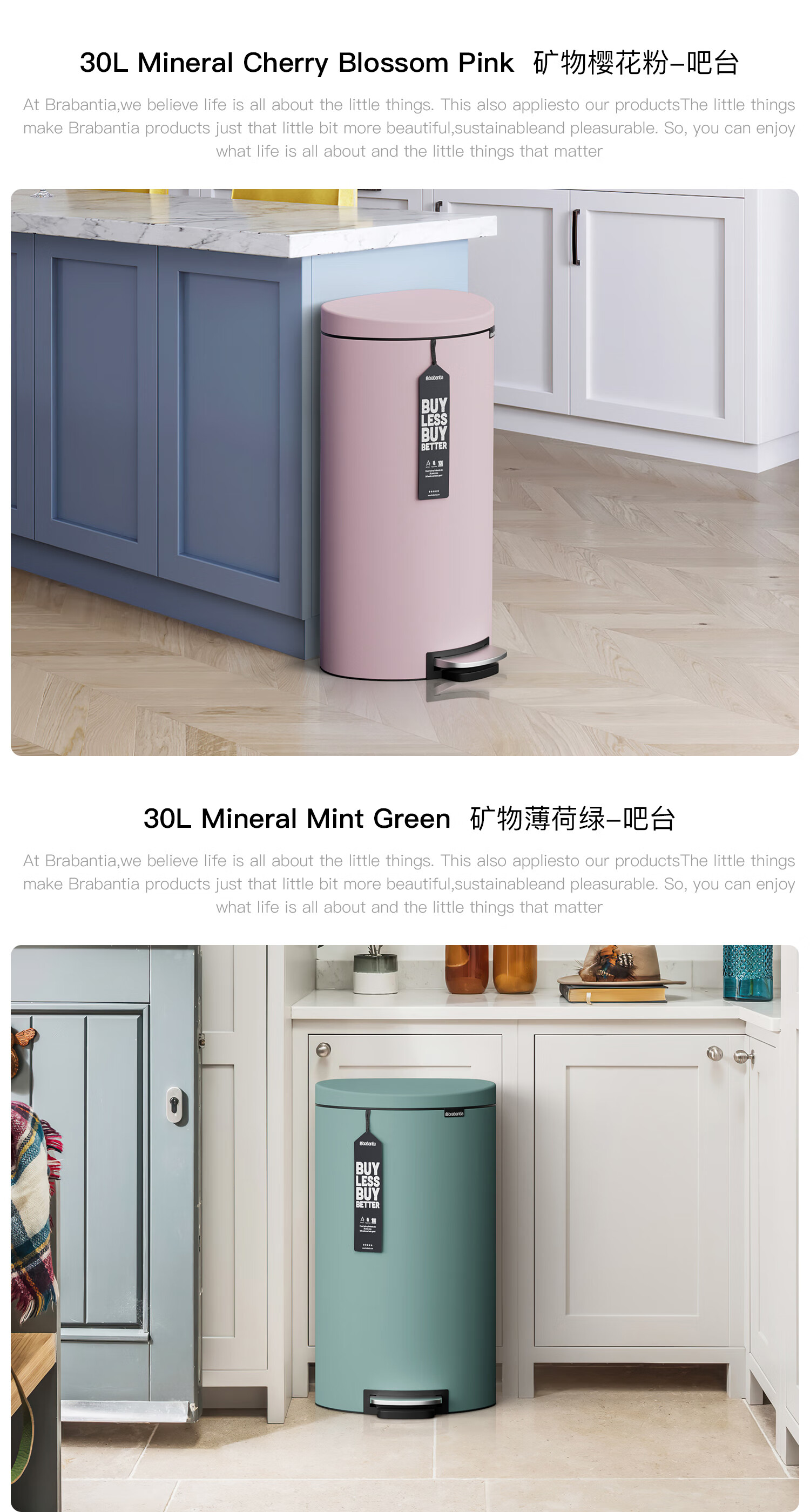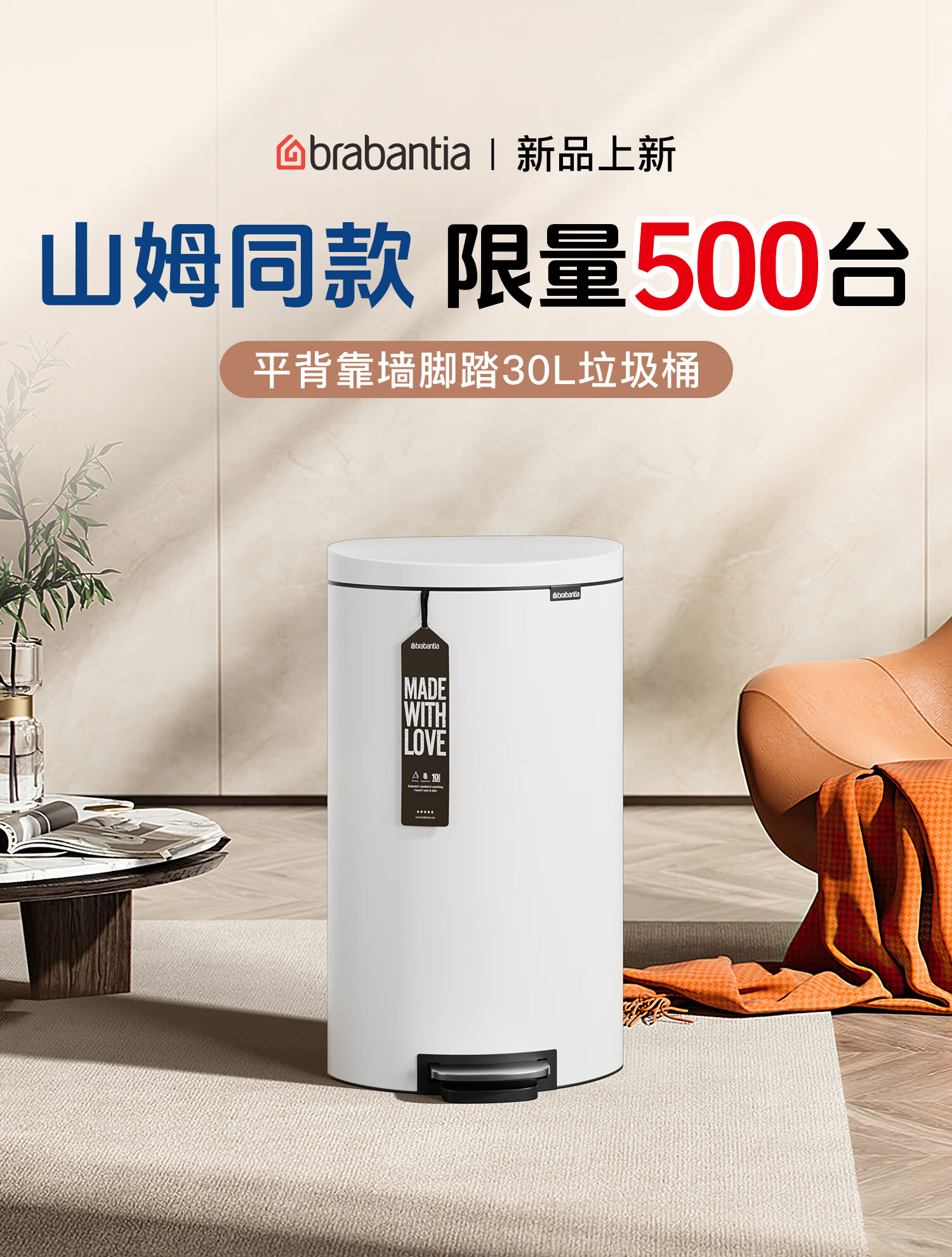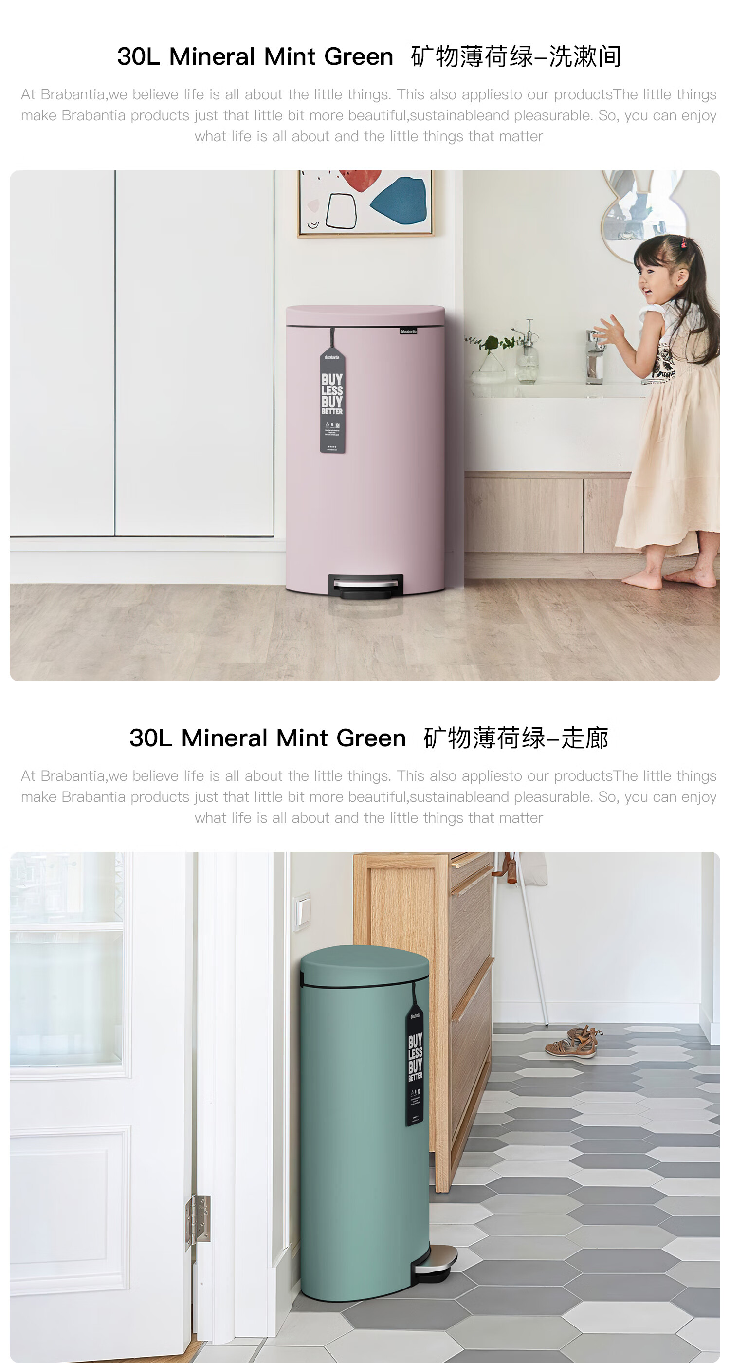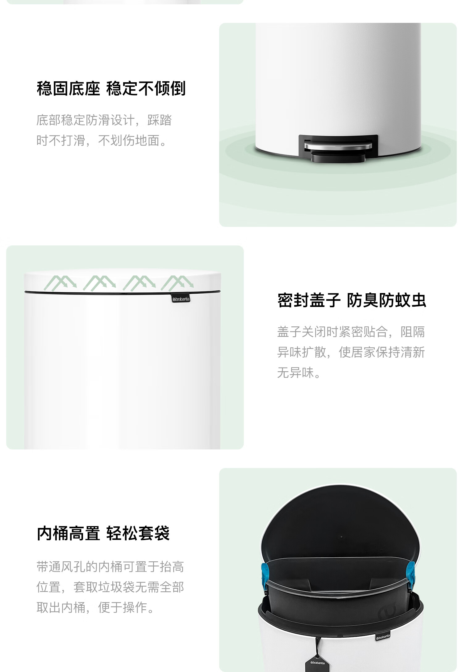 Brabantia柏宾士山姆同款30L垃圾桶 家用卫生间客厅卧室高级脚踏平背靠墙式 O型适配性垃圾袋【12卷/年度款】