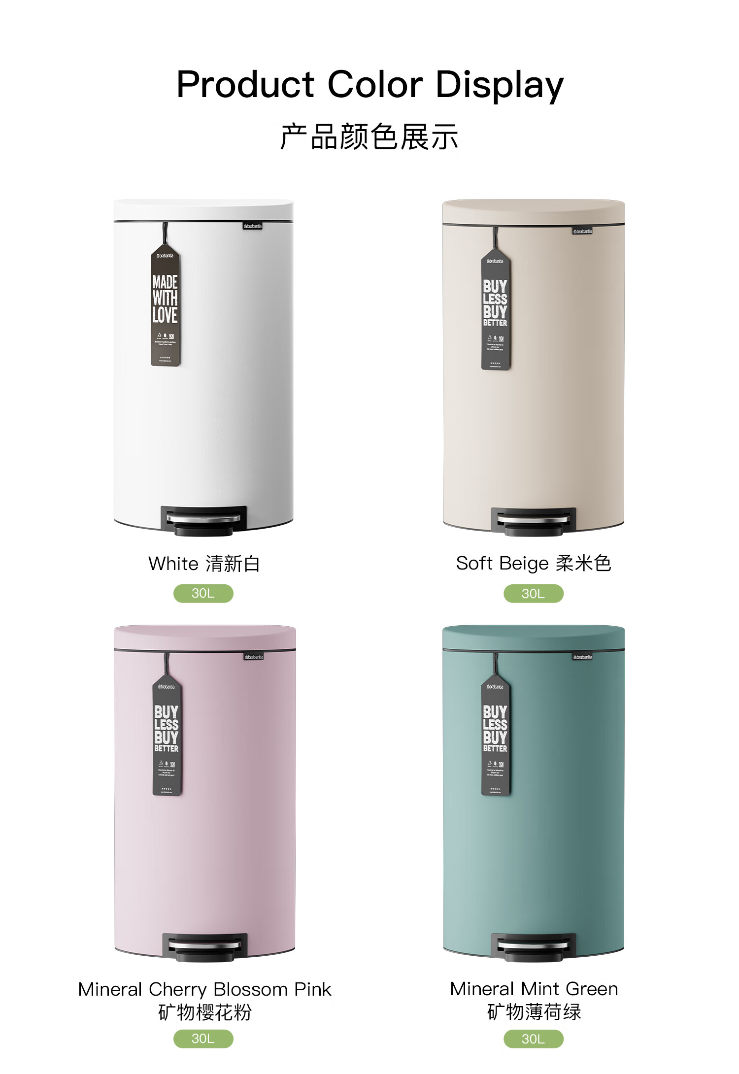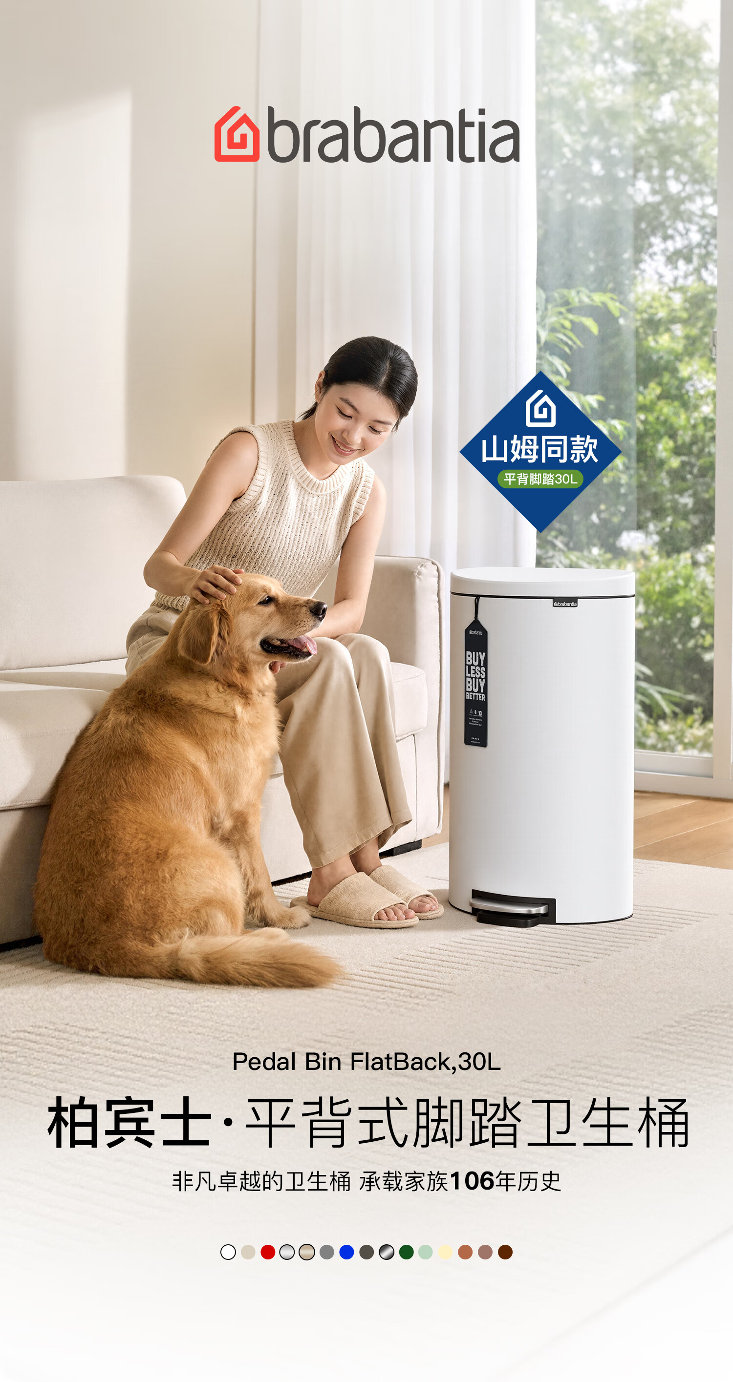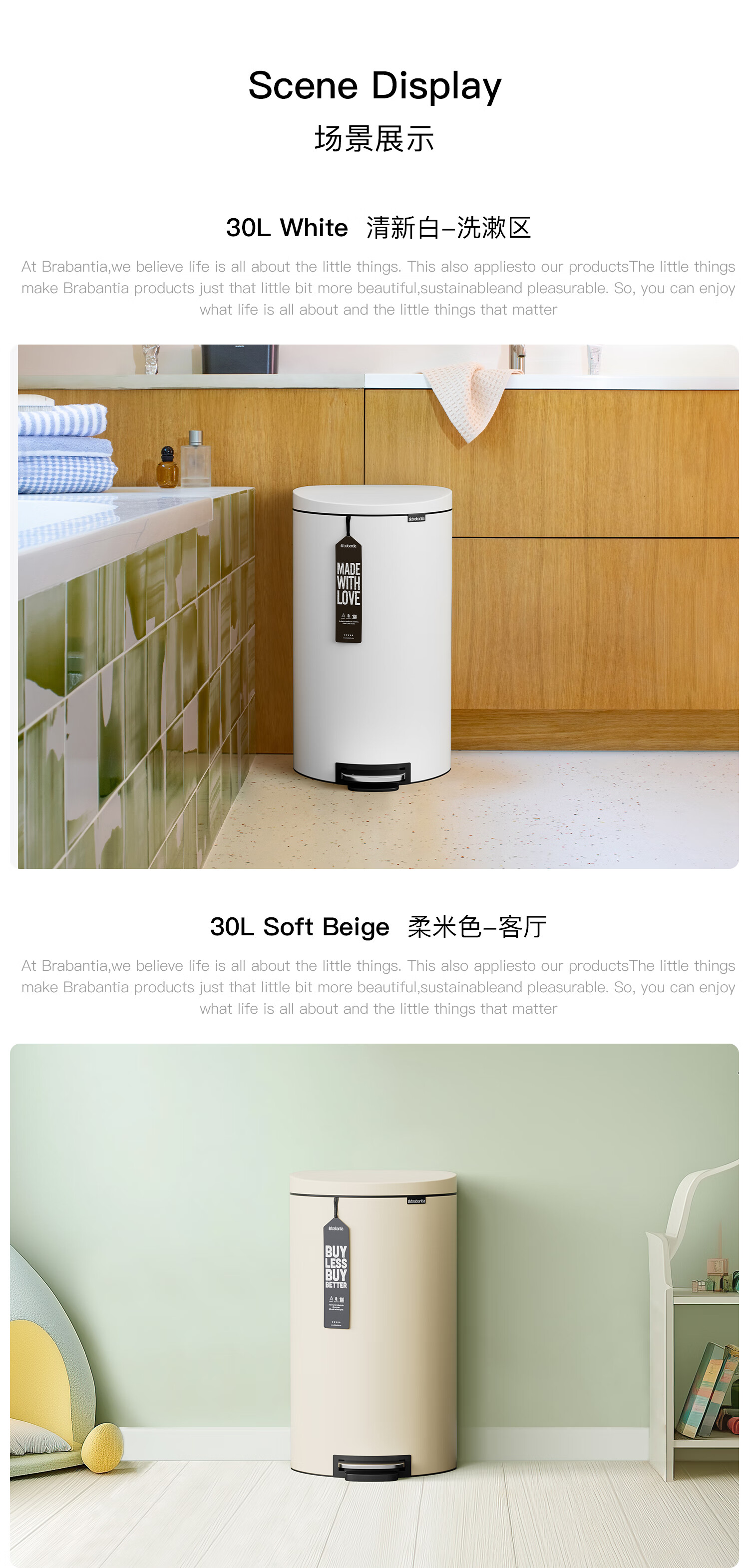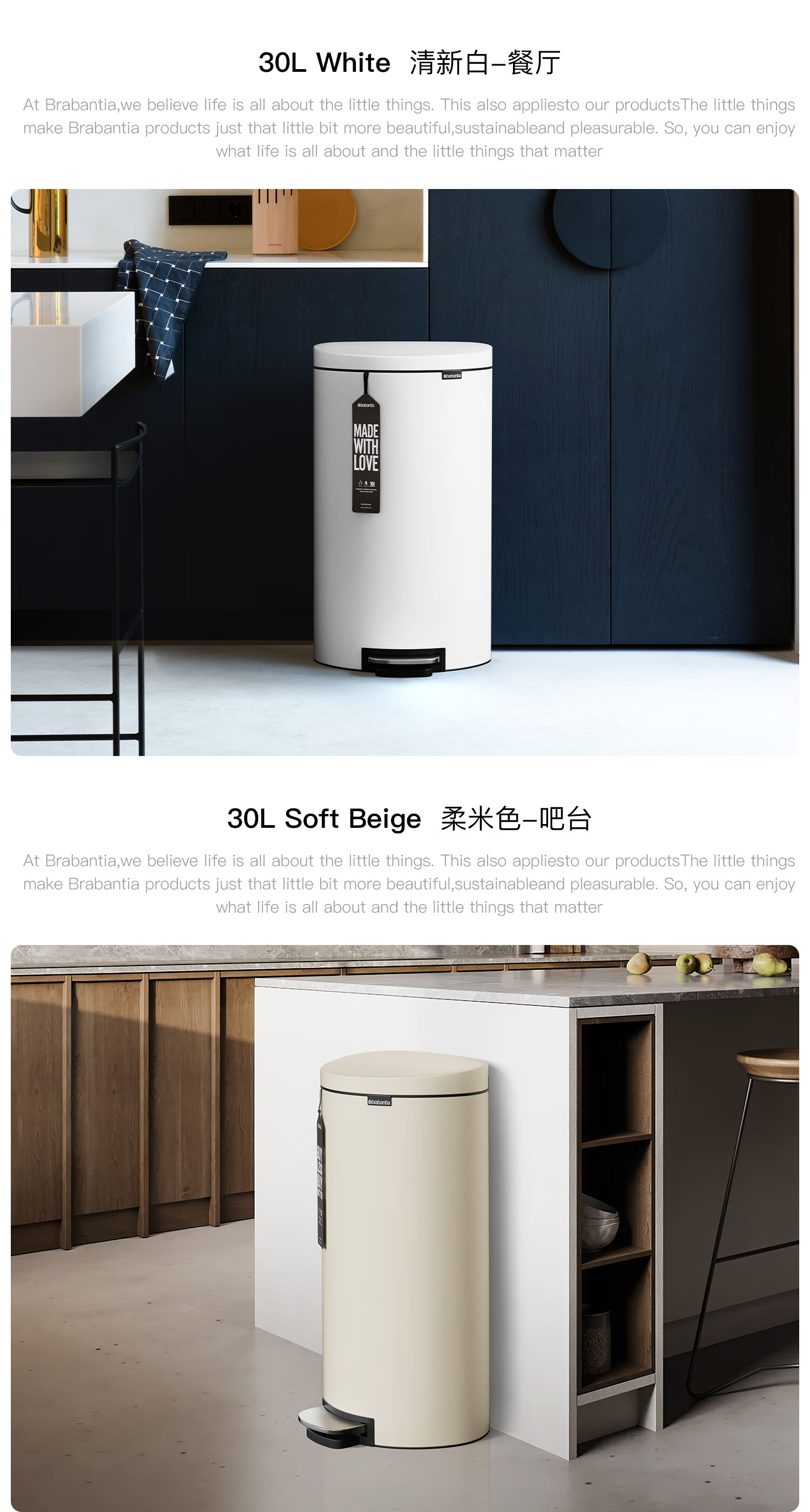 Brabantia柏宾士山姆同款30L垃圾桶 家用卫生间客厅卧室高级脚踏平背靠墙式 O型适配性垃圾袋【12卷/年度款】