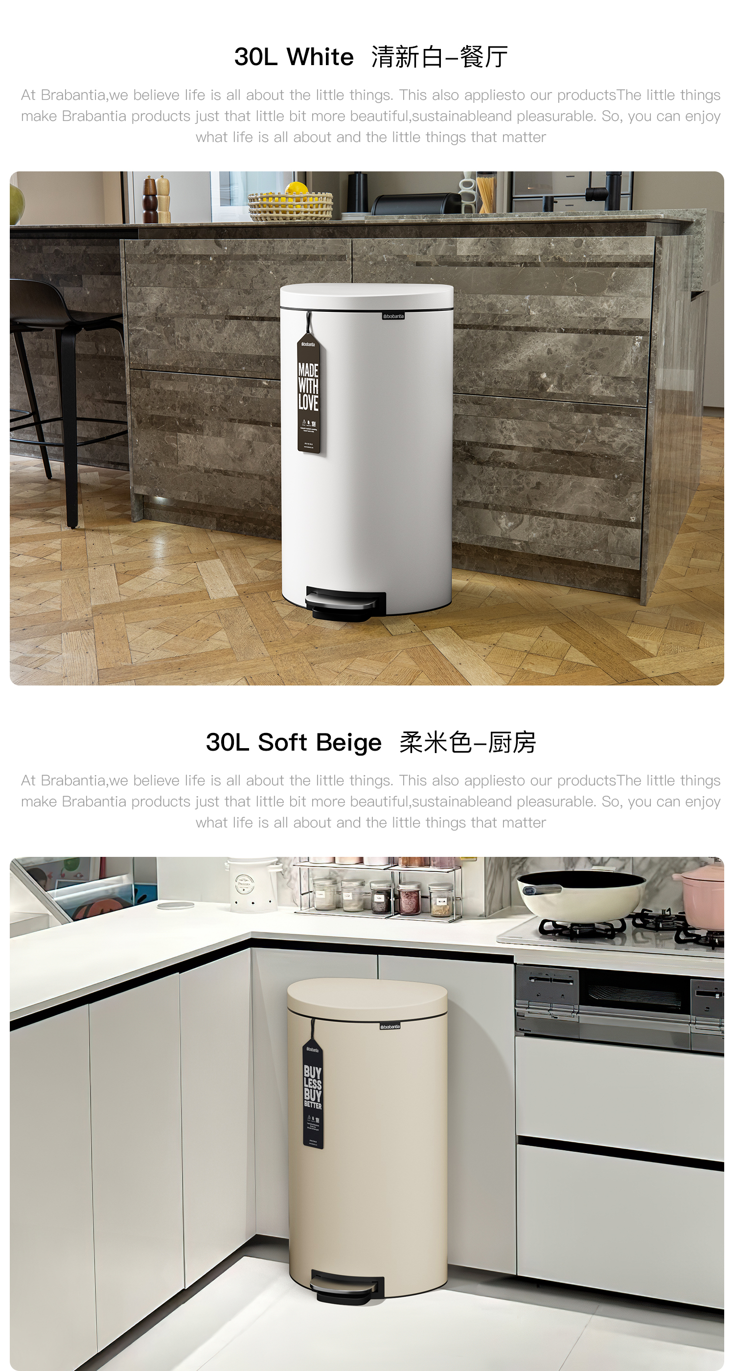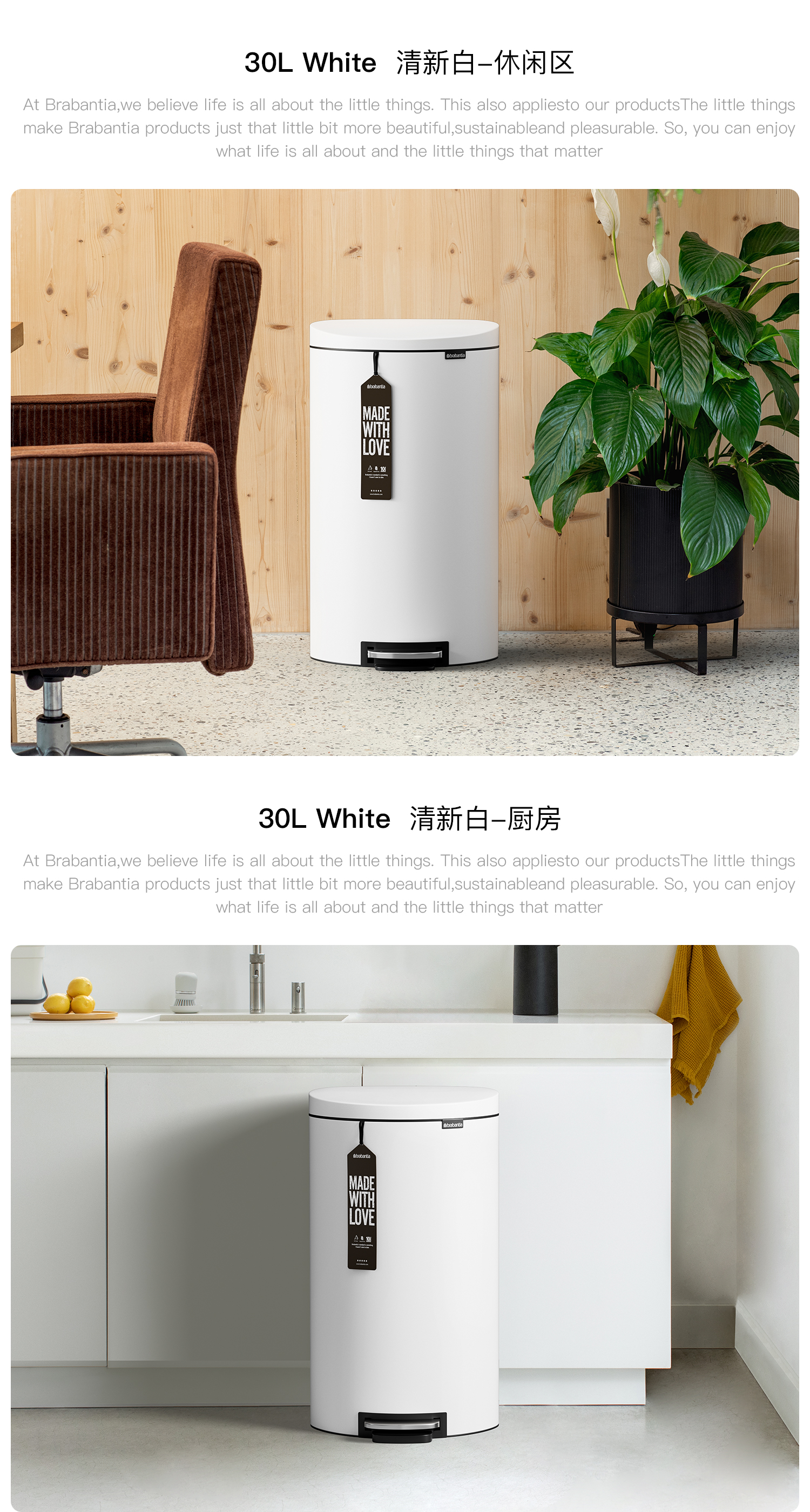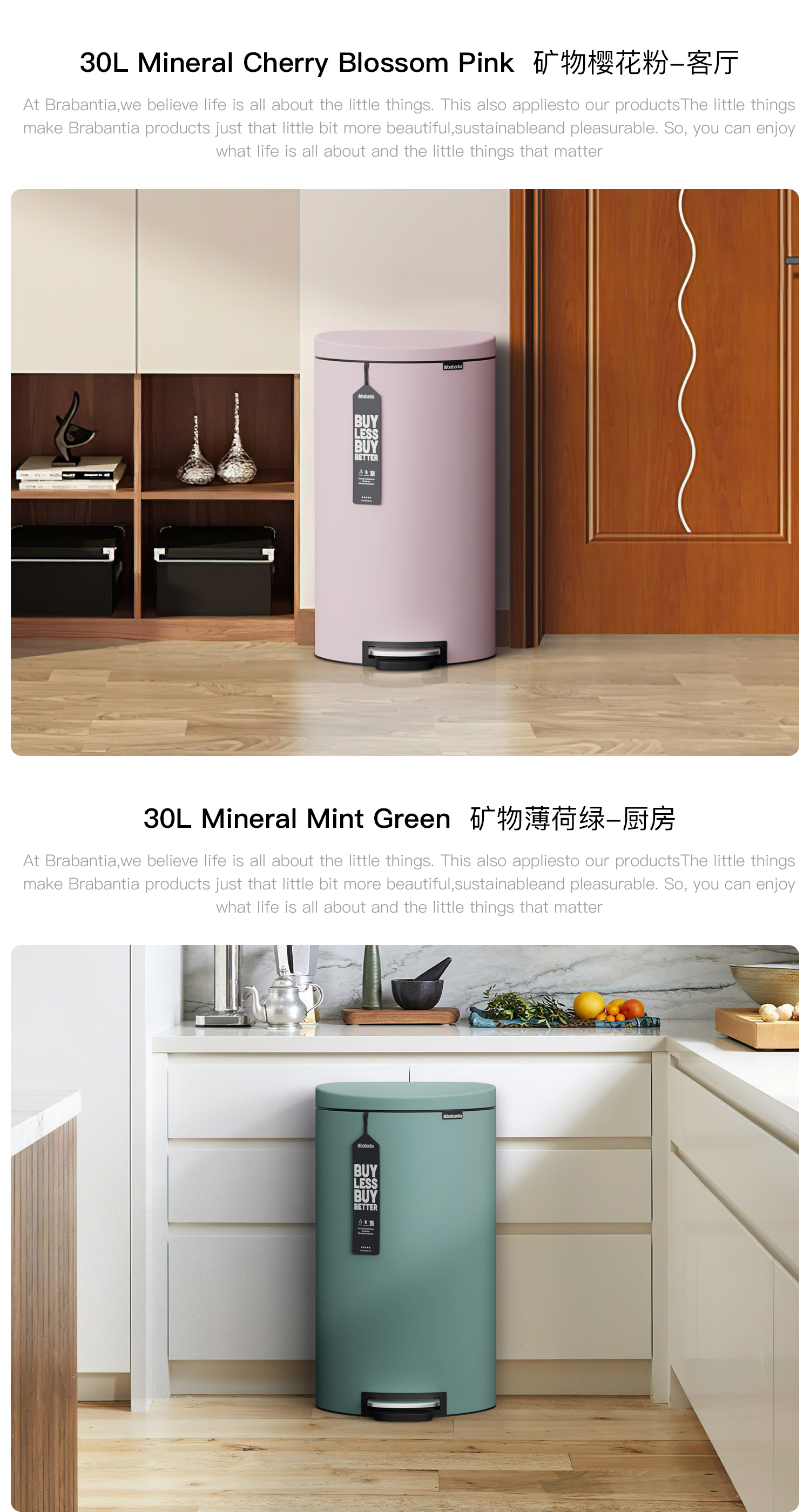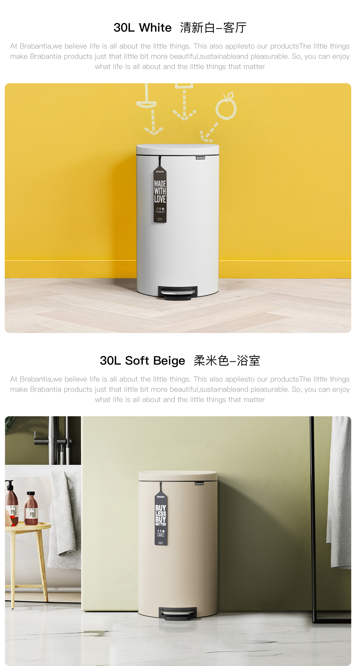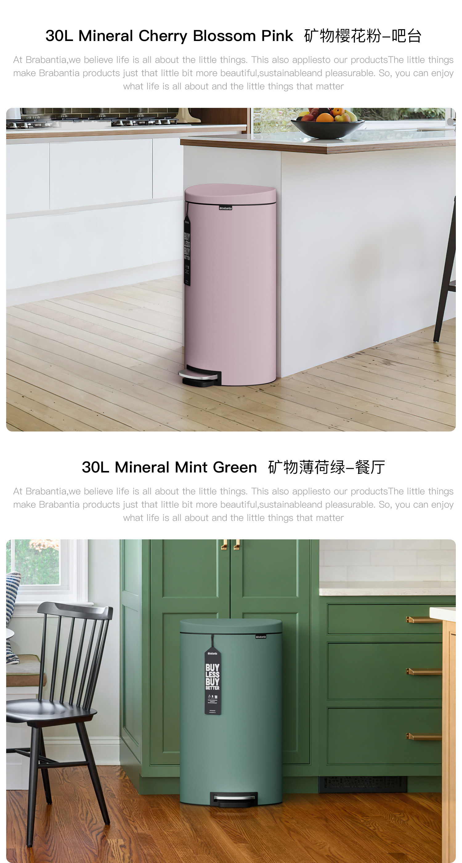 Brabantia柏宾士山姆同款30L垃圾桶 家用卫生间客厅卧室高级脚踏平背靠墙式 O型适配性垃圾袋【12卷/年度款】