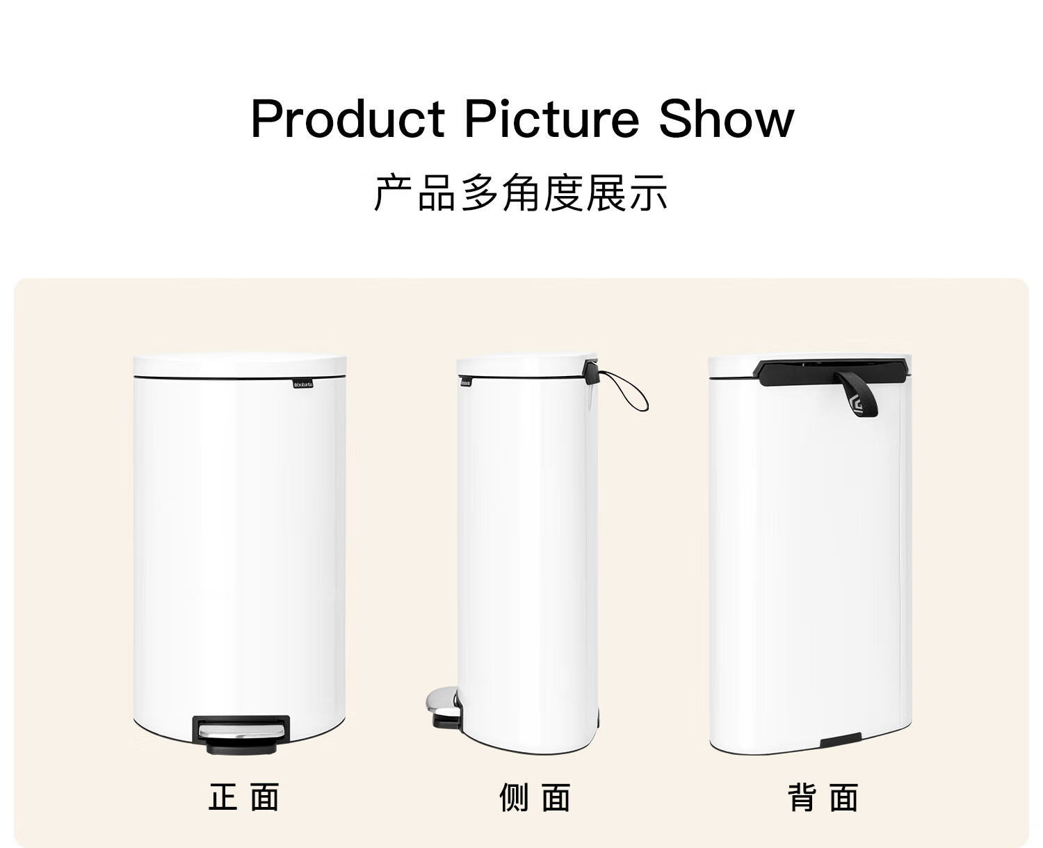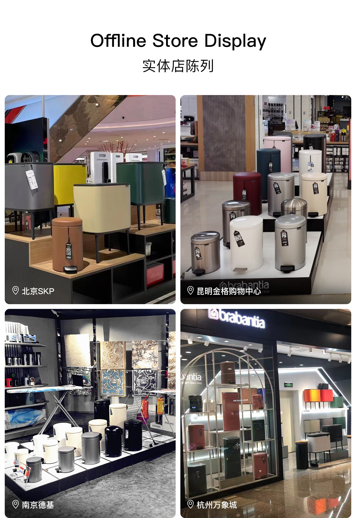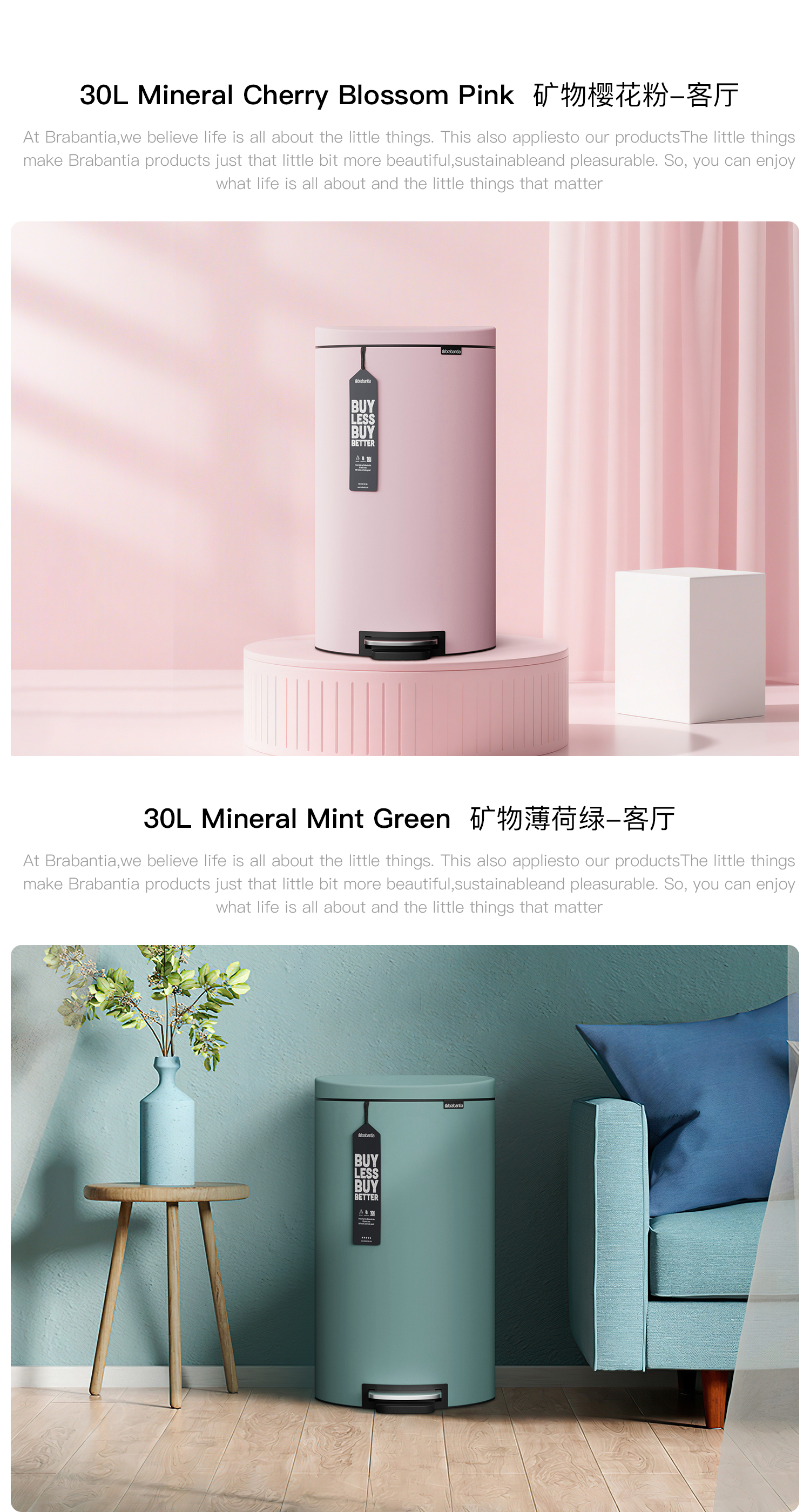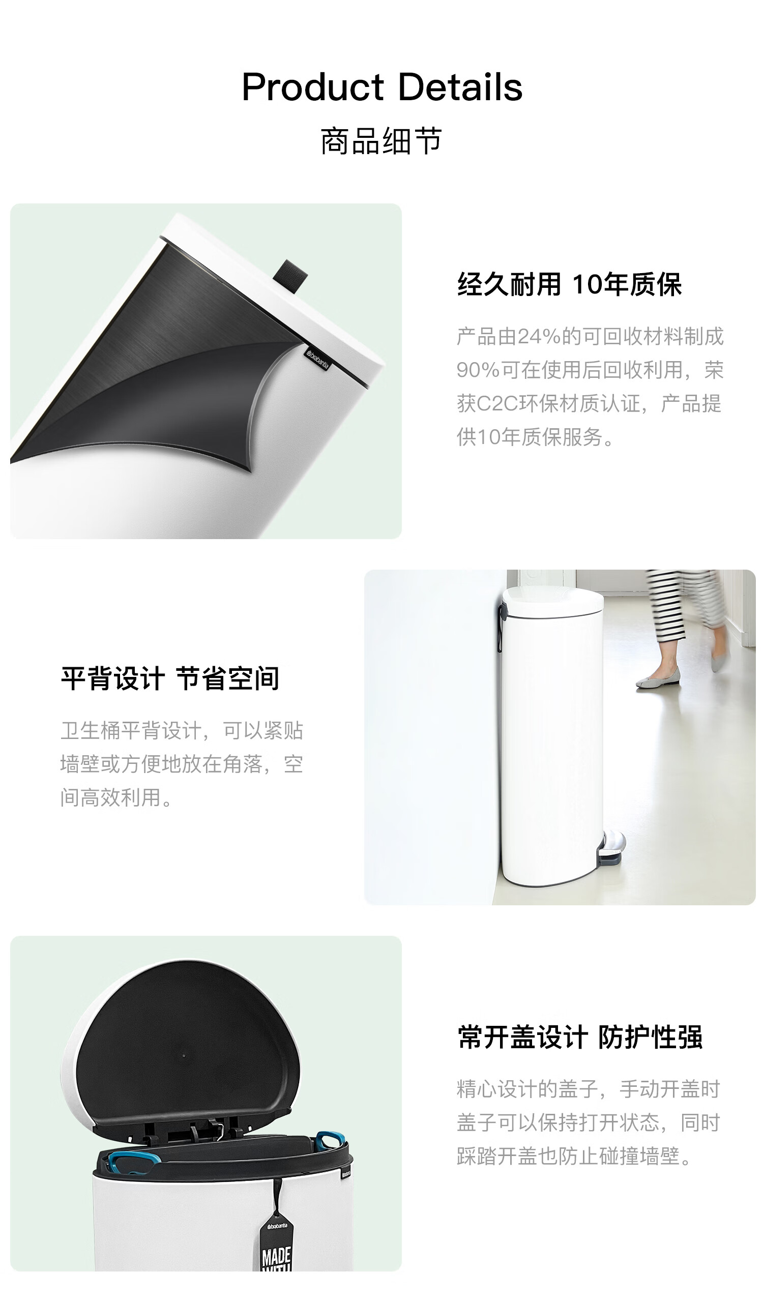 Brabantia柏宾士山姆同款30L垃圾桶 家用卫生间客厅卧室高级脚踏平背靠墙式 O型适配性垃圾袋【12卷/年度款】
