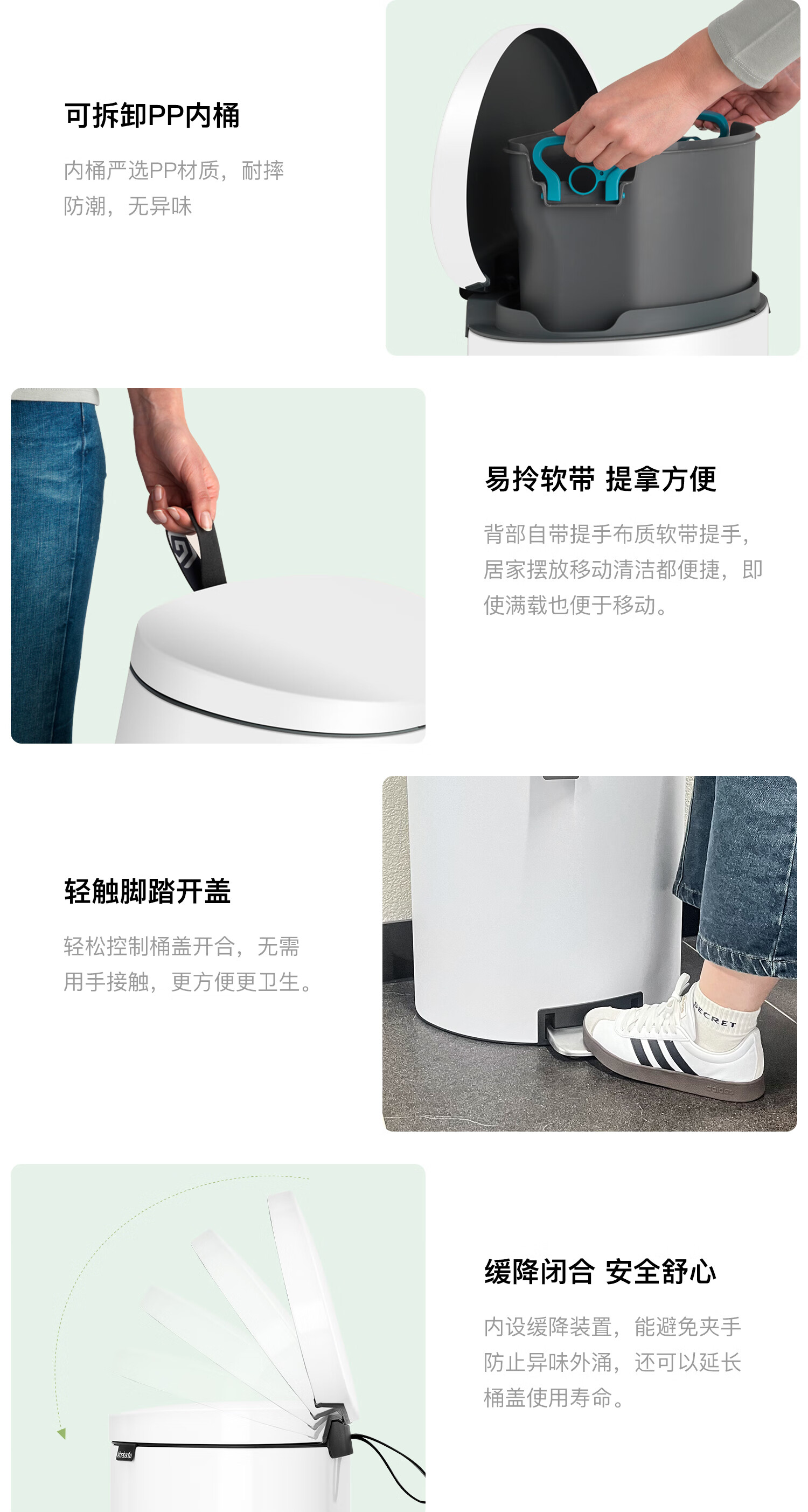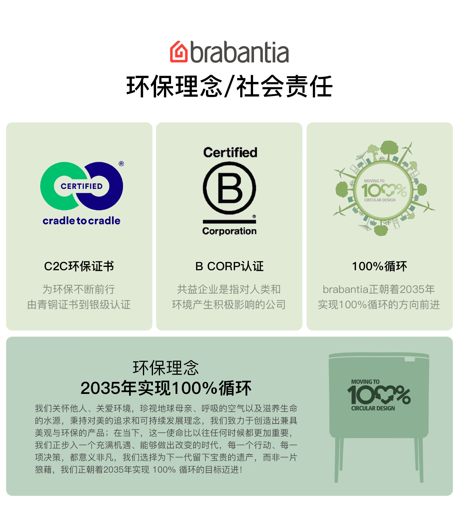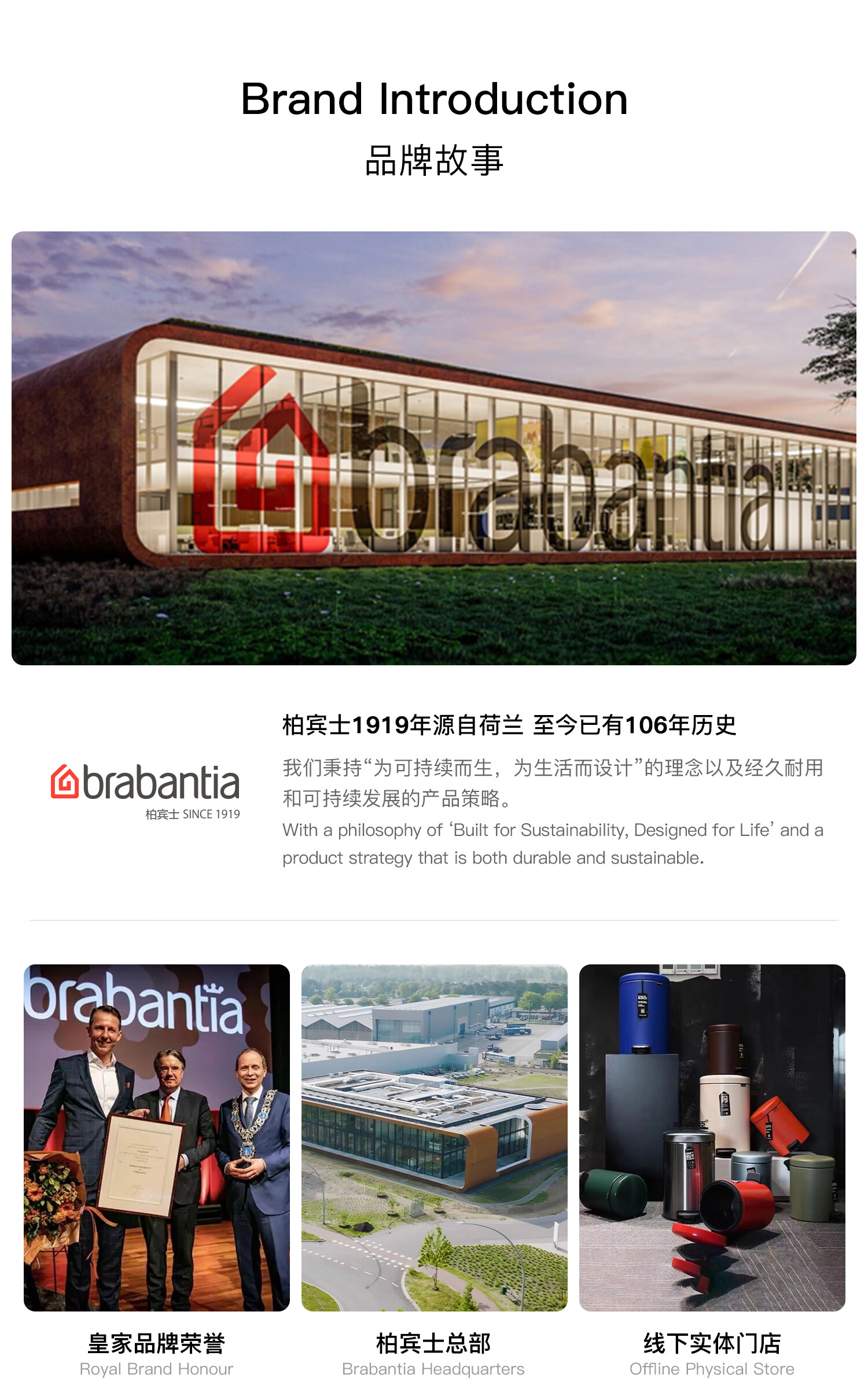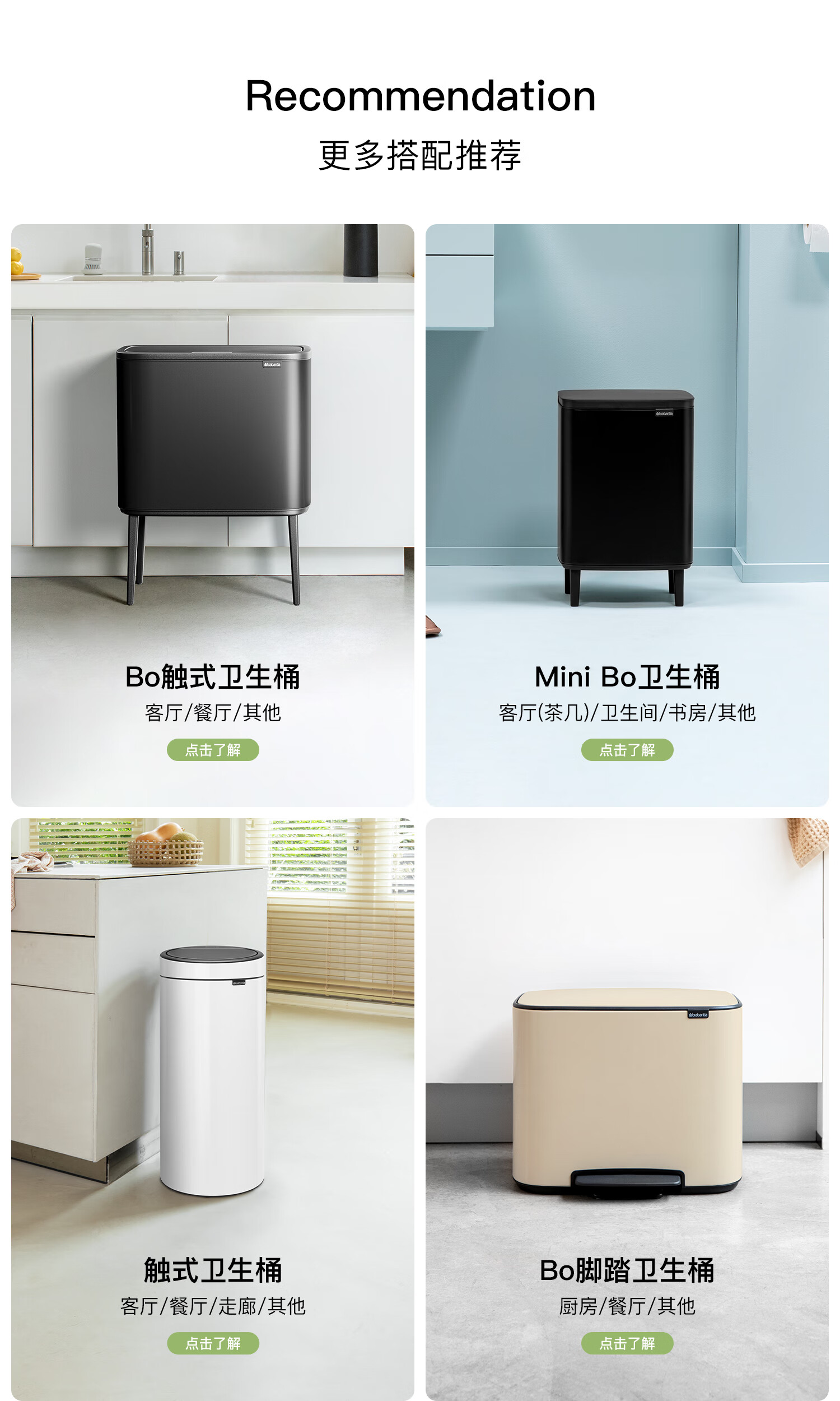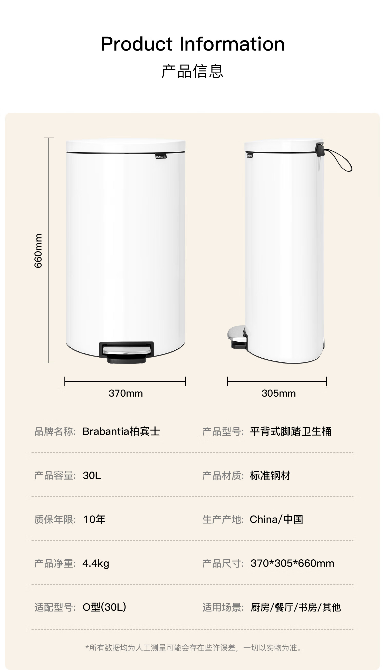 Brabantia柏宾士山姆同款30L垃圾桶 家用卫生间客厅卧室高级脚踏平背靠墙式 O型适配性垃圾袋【12卷/年度款】