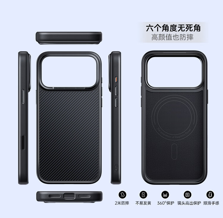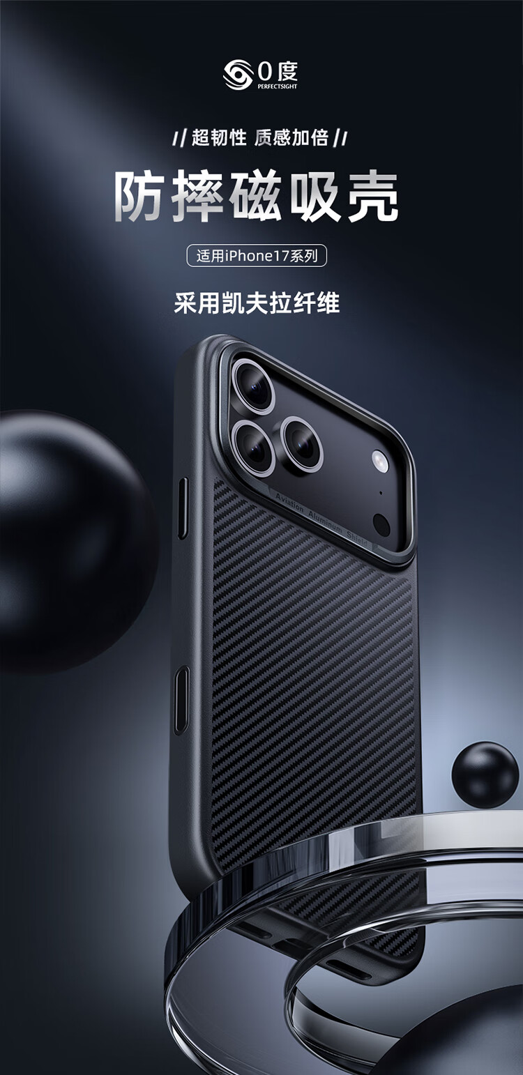 0度适用苹果iPhone17Promax手机壳iPhone17Pro保护套苹果17磁吸凯夫拉复合芳纶纤维壳全包保护壳 iPhone17PROMAX 复合凯夫拉金属圈600D