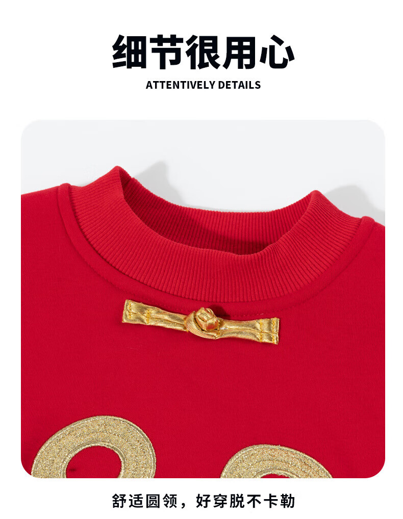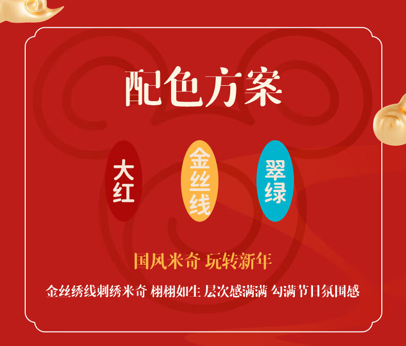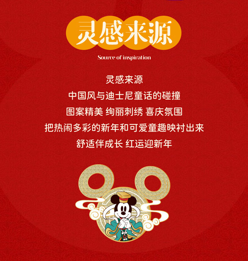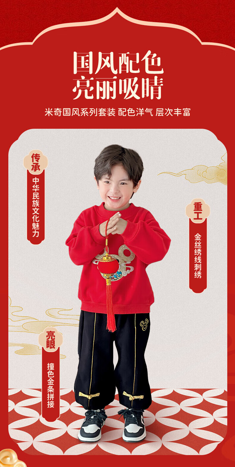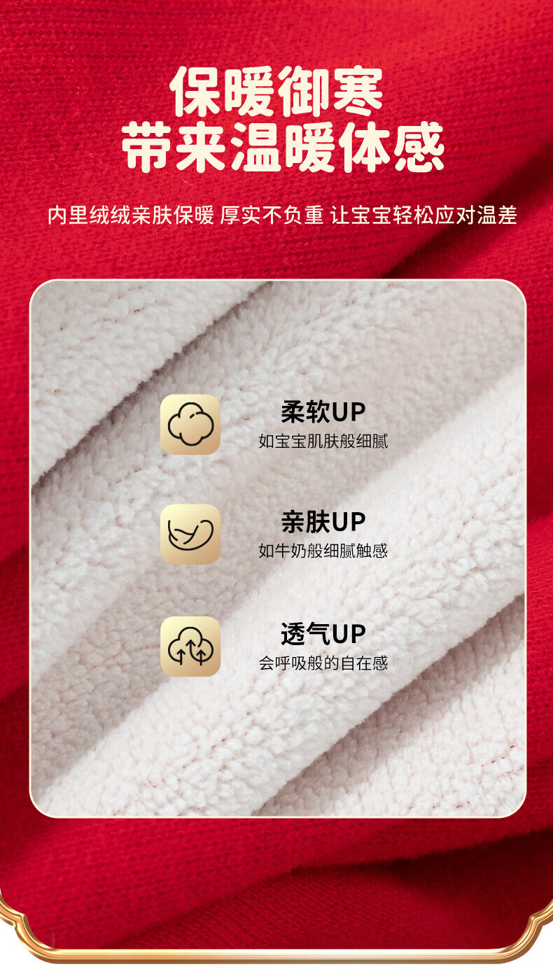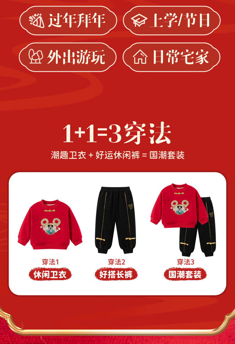 迪士尼(Disney)男童新年款红色拜年服刺绣时尚加绒保暖舒适休闲百搭儿童 国风印花米奇 120