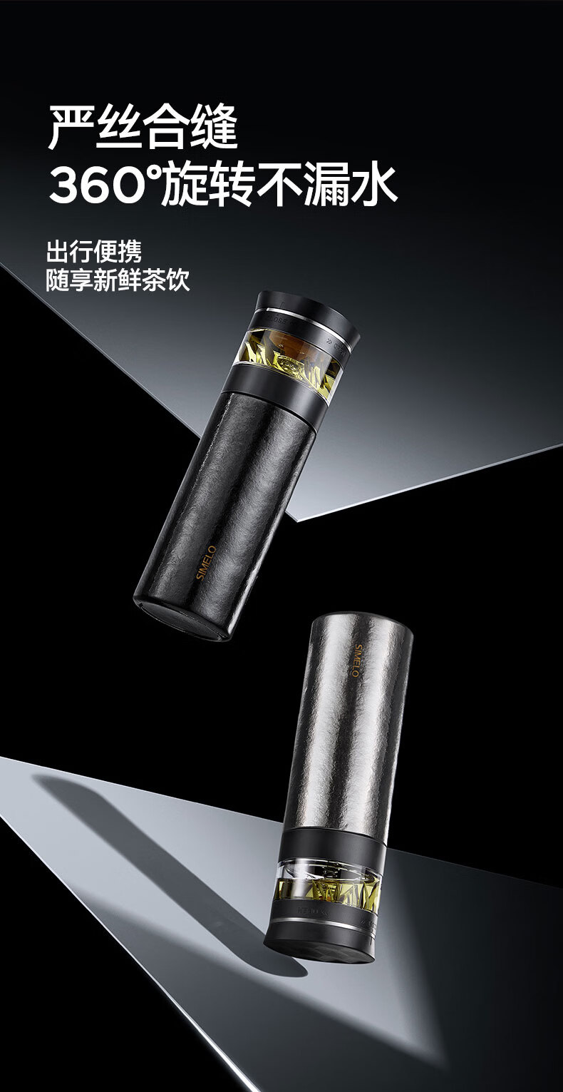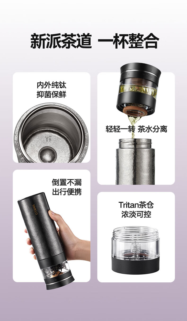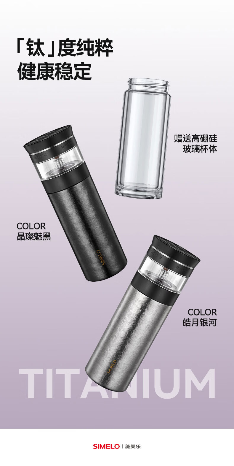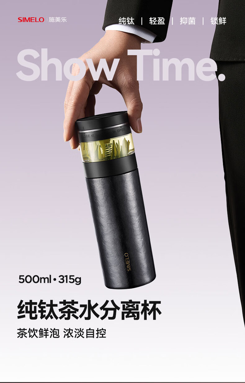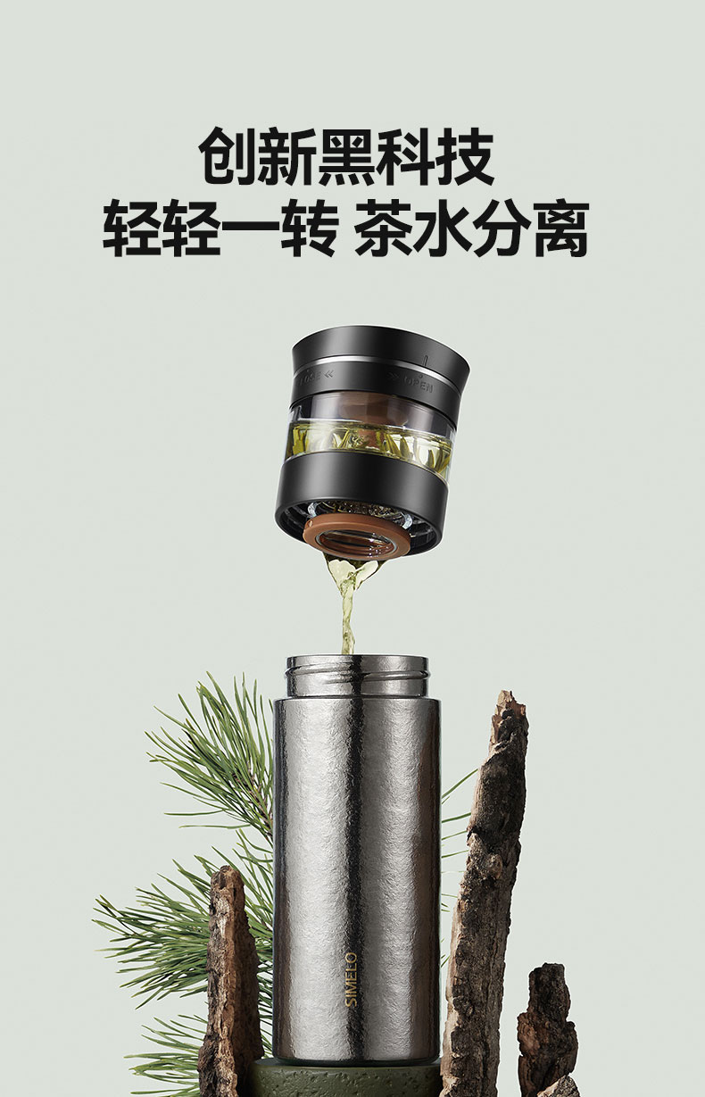 SIMELO施美乐纯钛保温杯男士茶水分离泡茶杯钛水杯玻璃杯生日礼物500ML