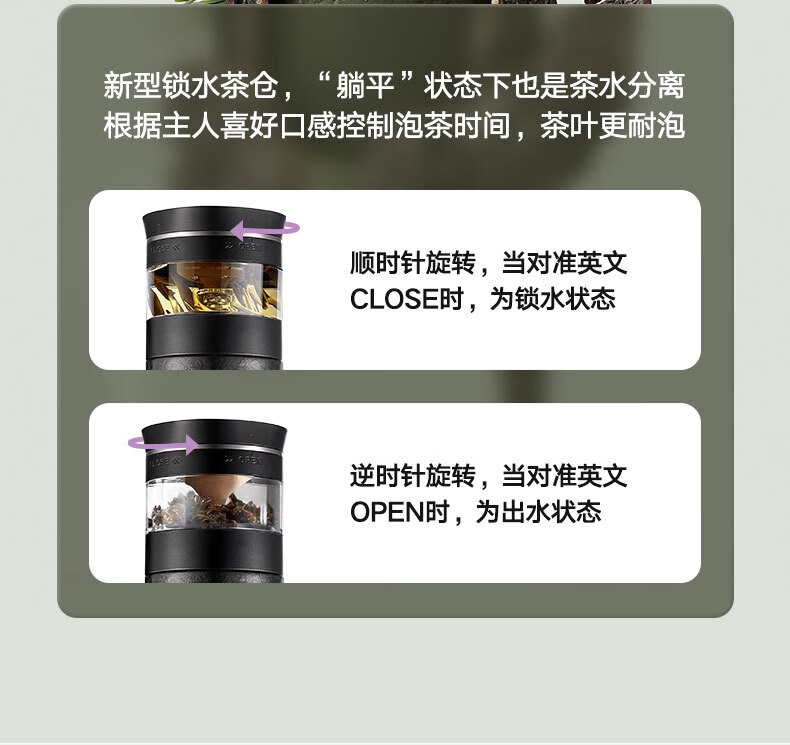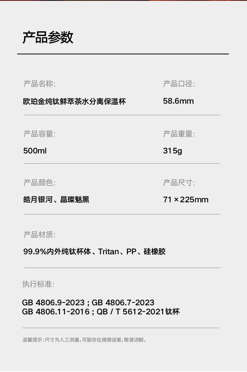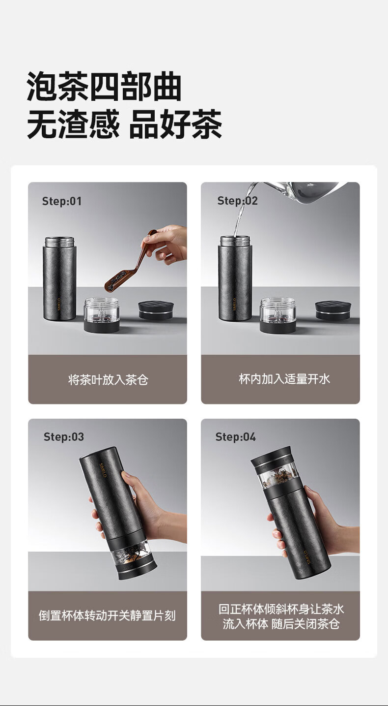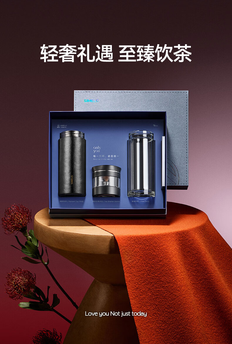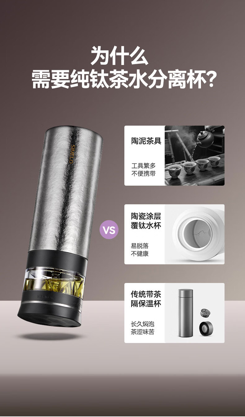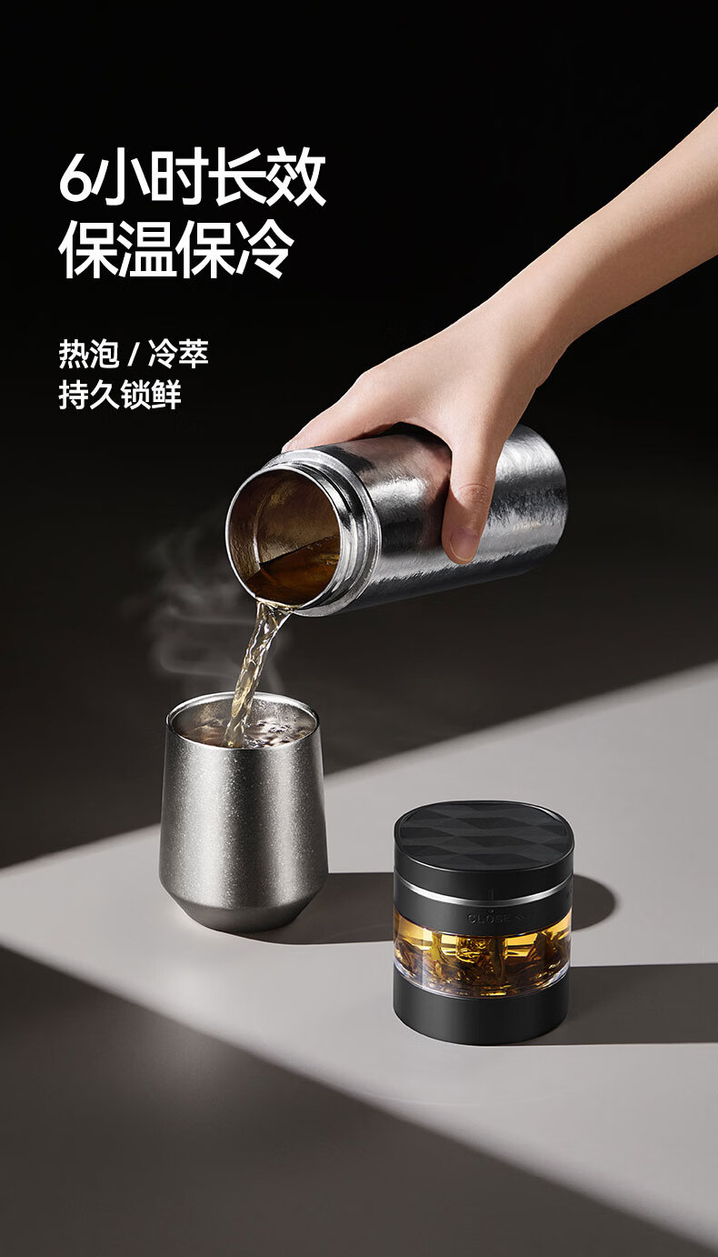 SIMELO施美乐纯钛保温杯男士茶水分离泡茶杯钛水杯玻璃杯生日礼物500ML