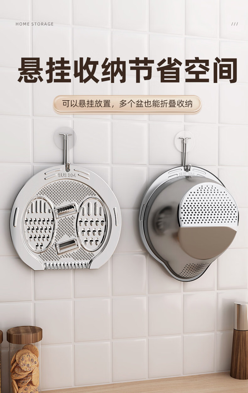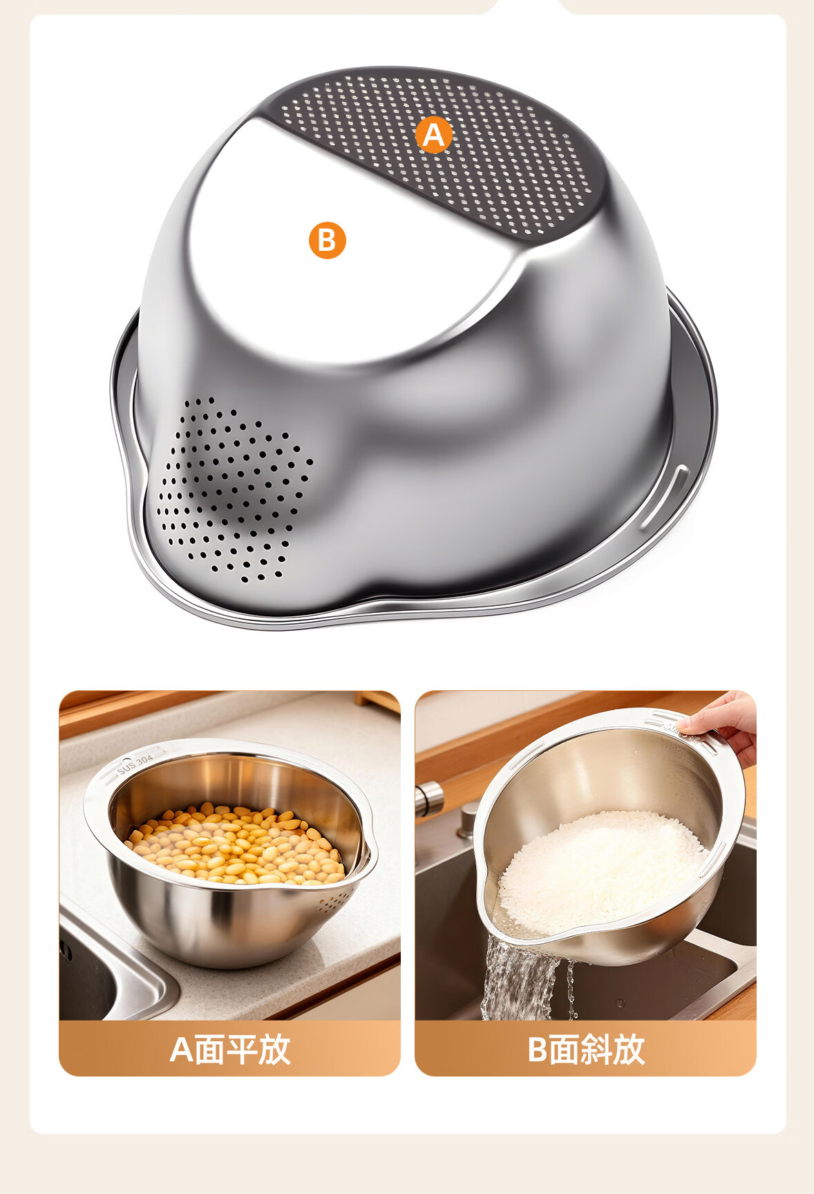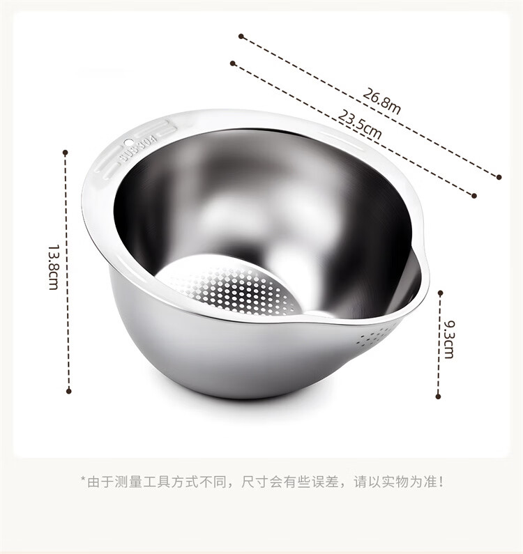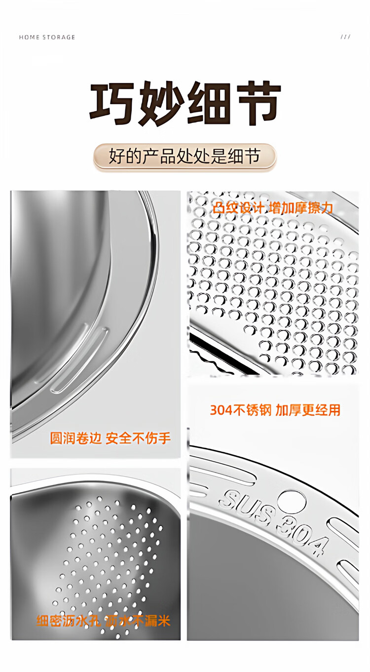 加度 304不锈钢厨房洗菜盆沥水篮滤水篮洗水果洗菜篮子淘米神器 304健康食品级 大容量加厚款(单手倾斜沥水)