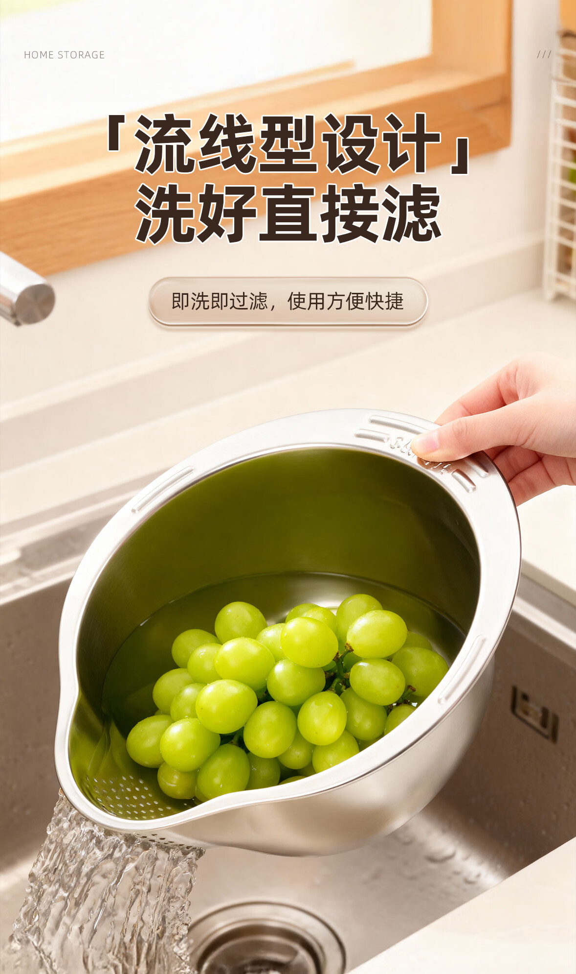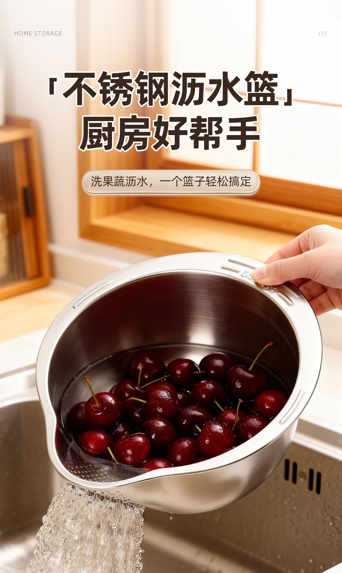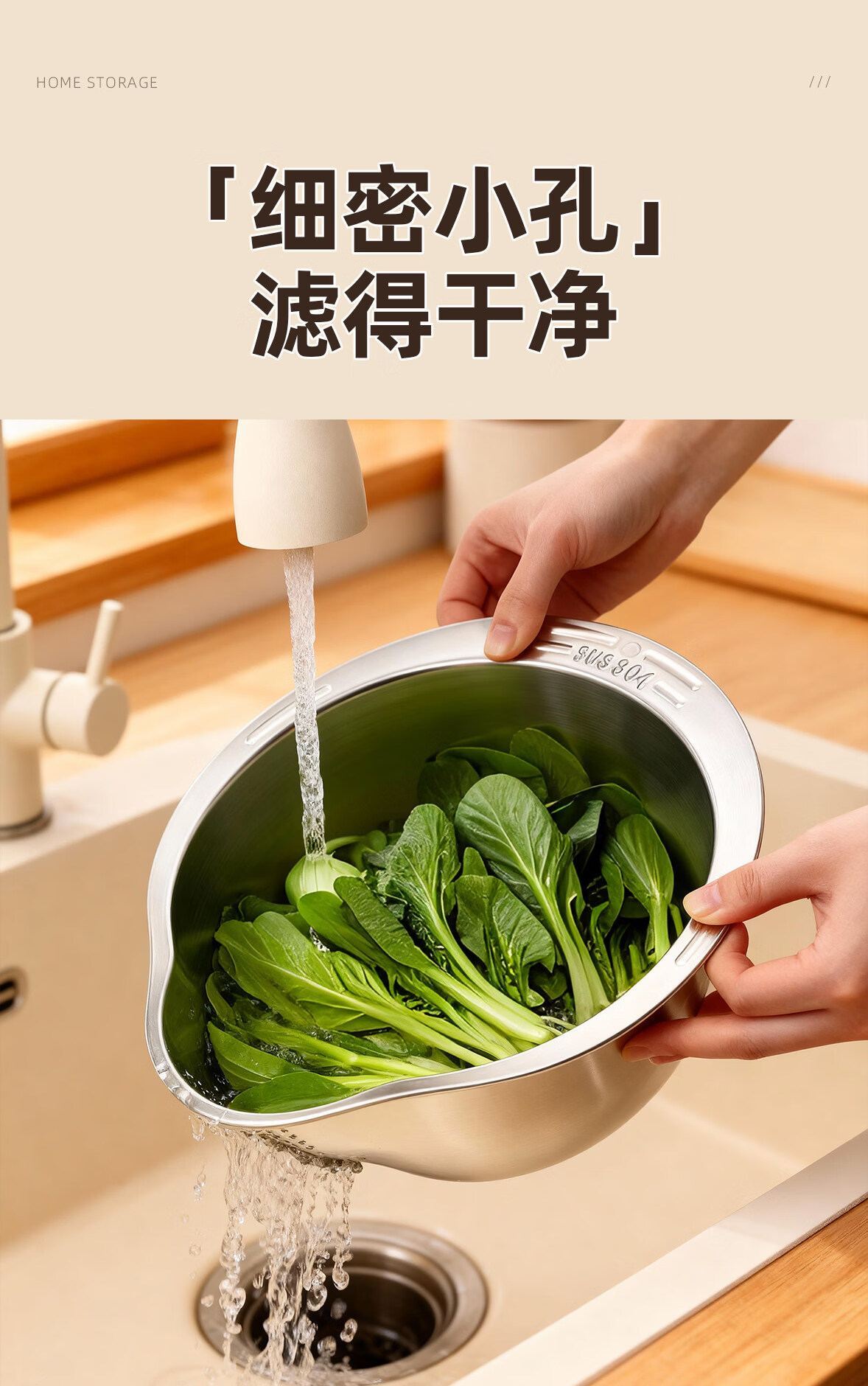 加度 304不锈钢厨房洗菜盆沥水篮滤水篮洗水果洗菜篮子淘米神器 304健康食品级 大容量加厚款(单手倾斜沥水)