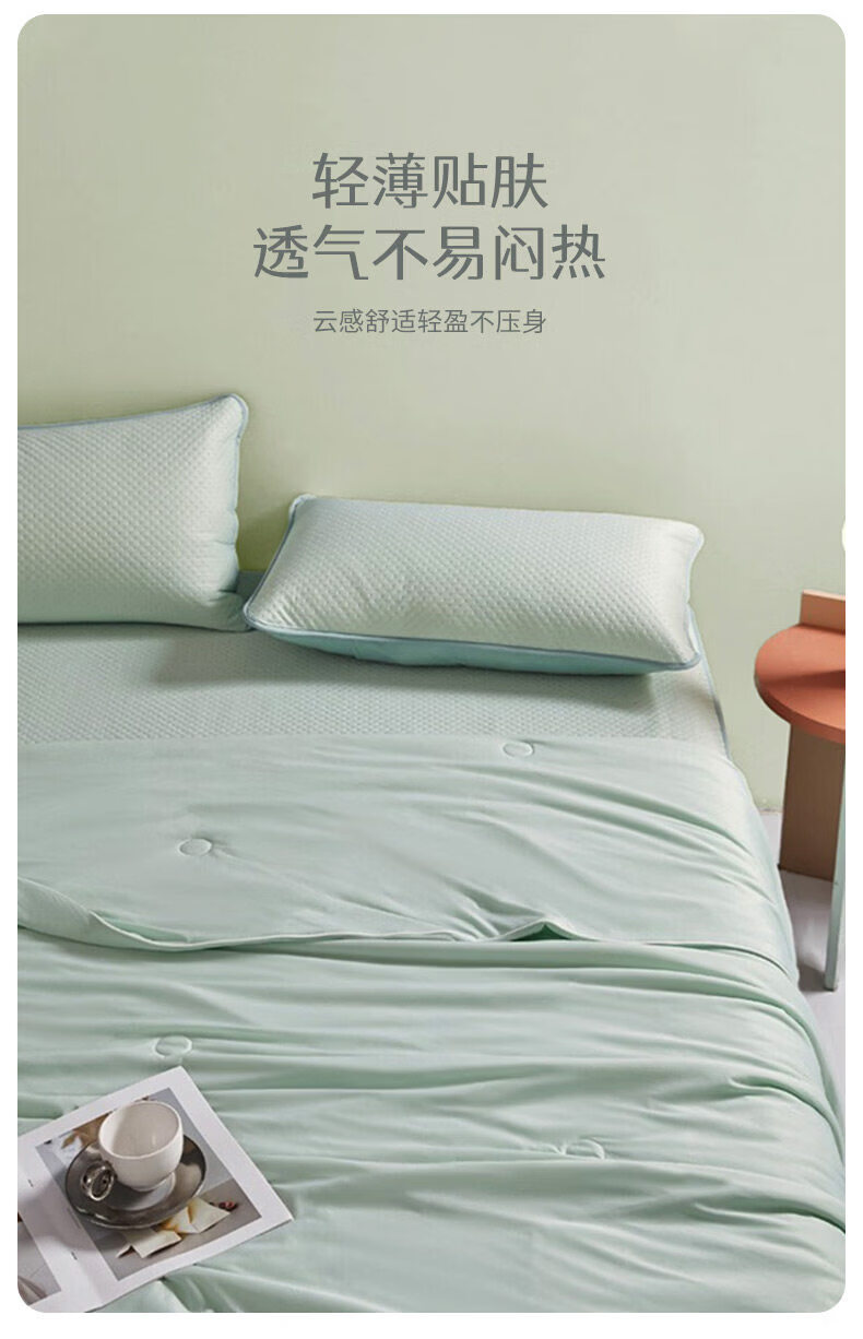 猫人(MiiOW)A类凉感丝空调被子夏凉被四件套夏季单人学生宿舍夏被芯可机洗 水绿 单夏被:200x230cm