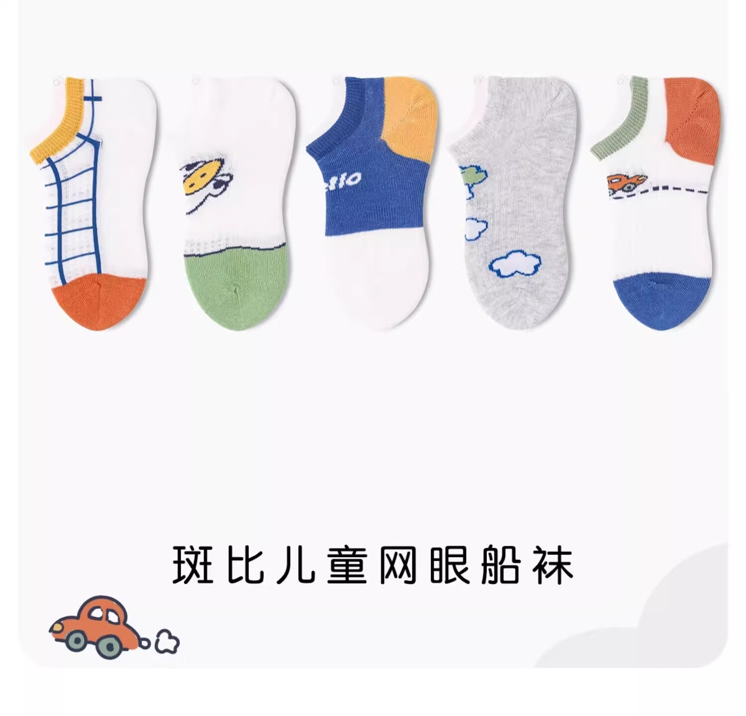 斑比儿童船袜夏季薄款棉袜中大童透气网眼短袜男童无骨袜子 BB2433 儿童夏季网眼船袜 5双 8-11岁 建议脚码33-37码【20-22】