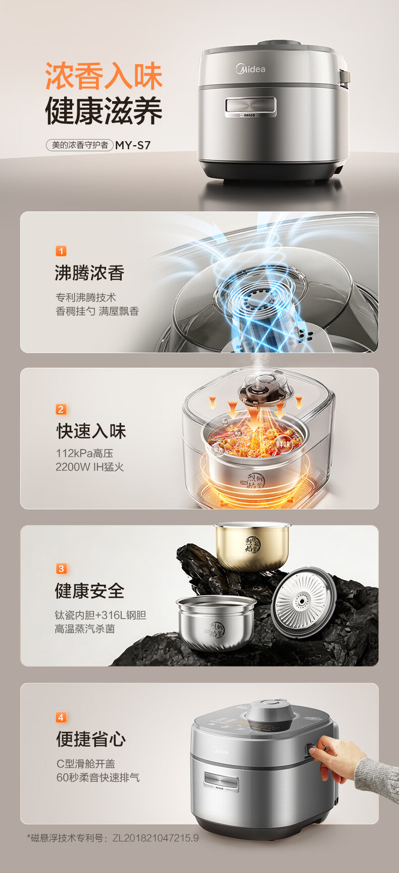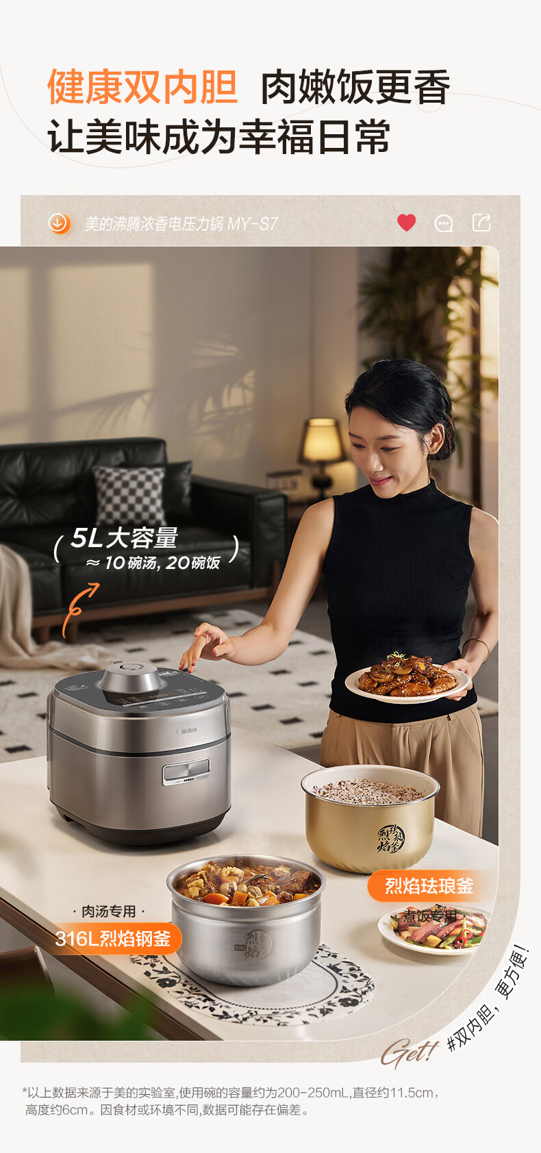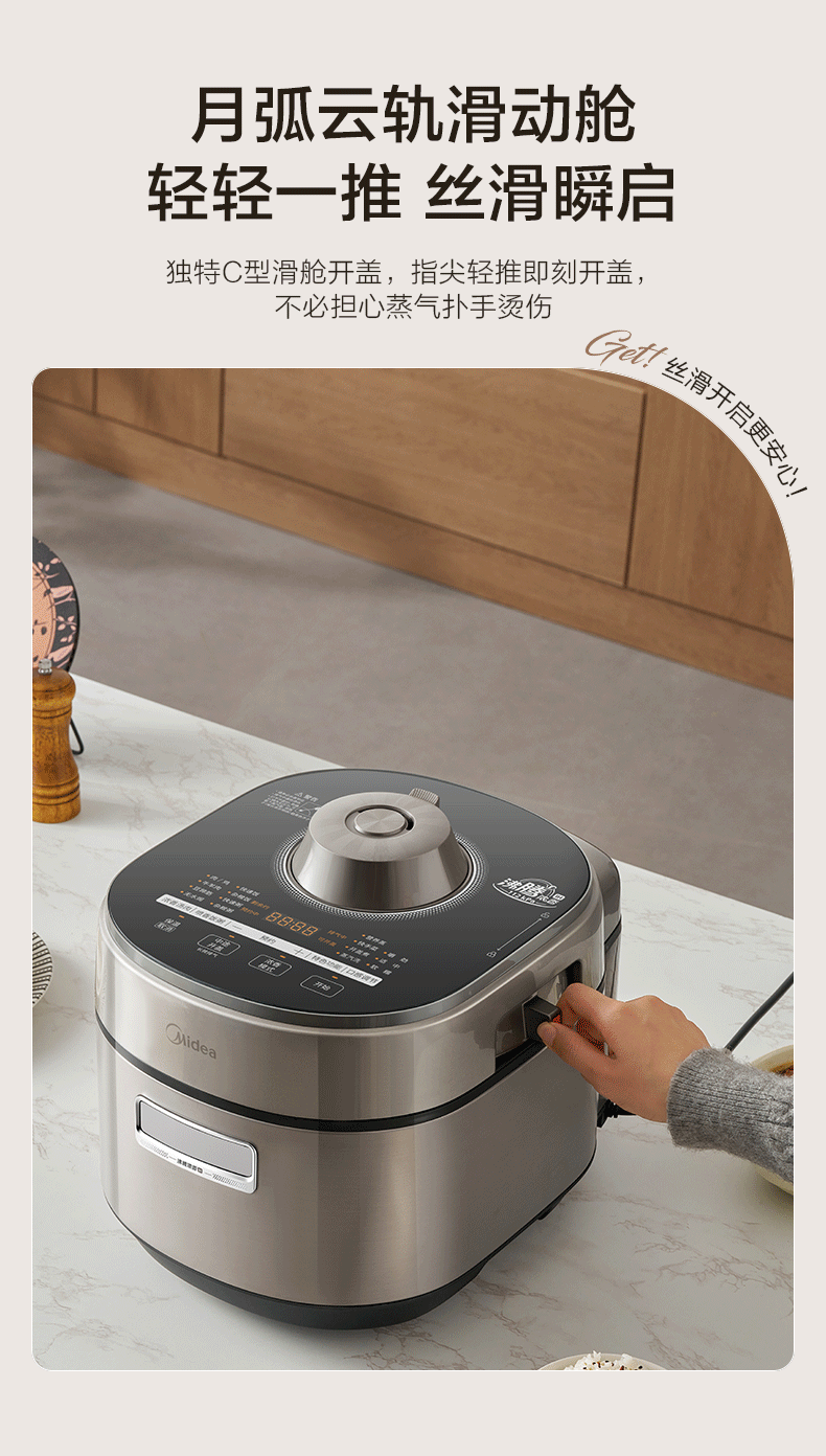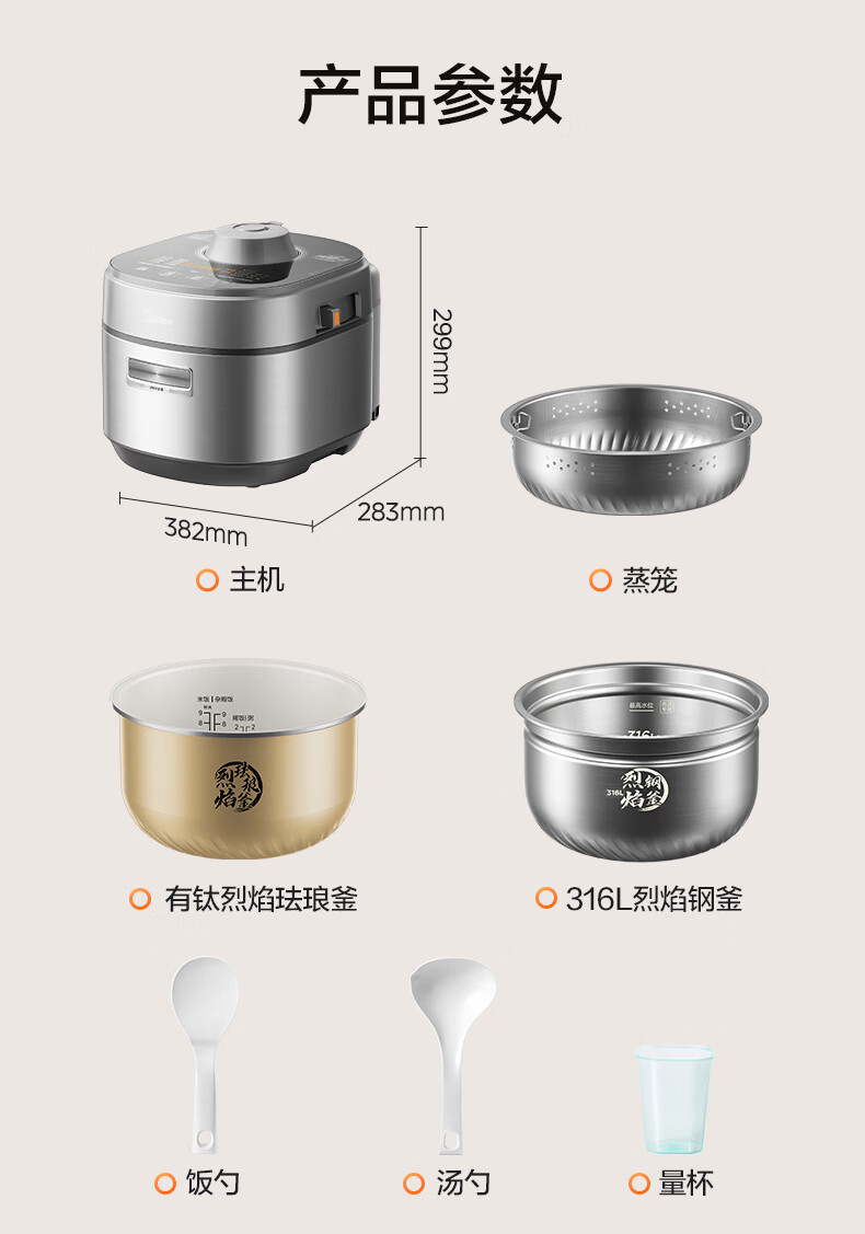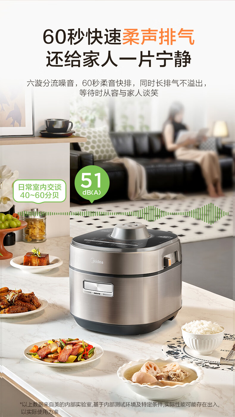 美的(Midea)大鸭梨有钛电压力锅ih加热高压112kPa电饭锅5L家用4-6人饭煲0涂层316L电压锅智能预约蒸汽洗MY-S7
