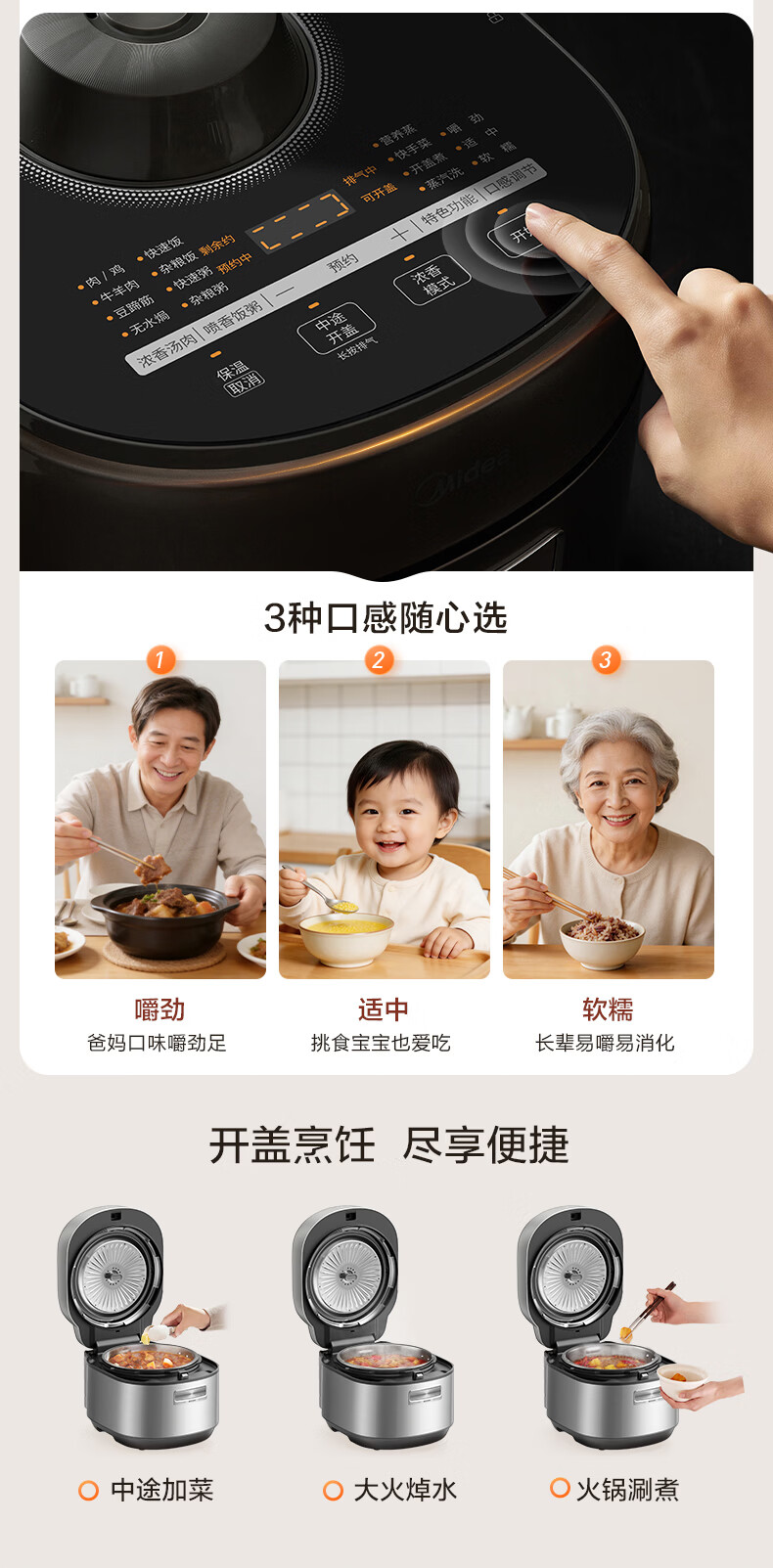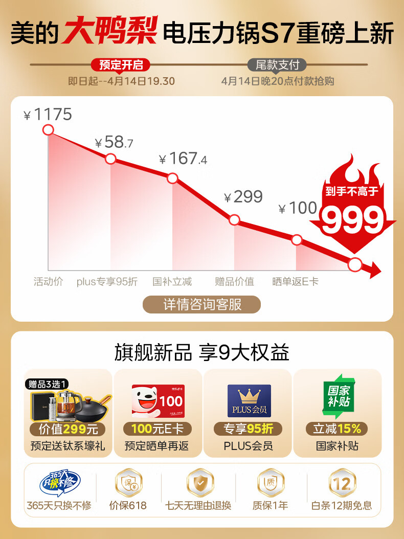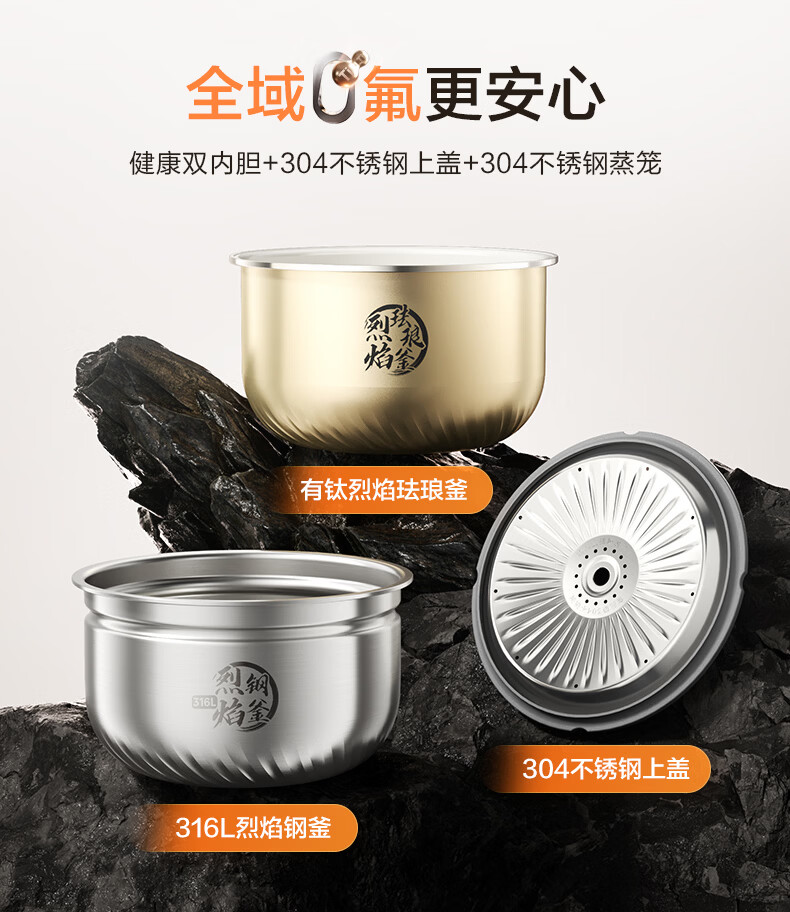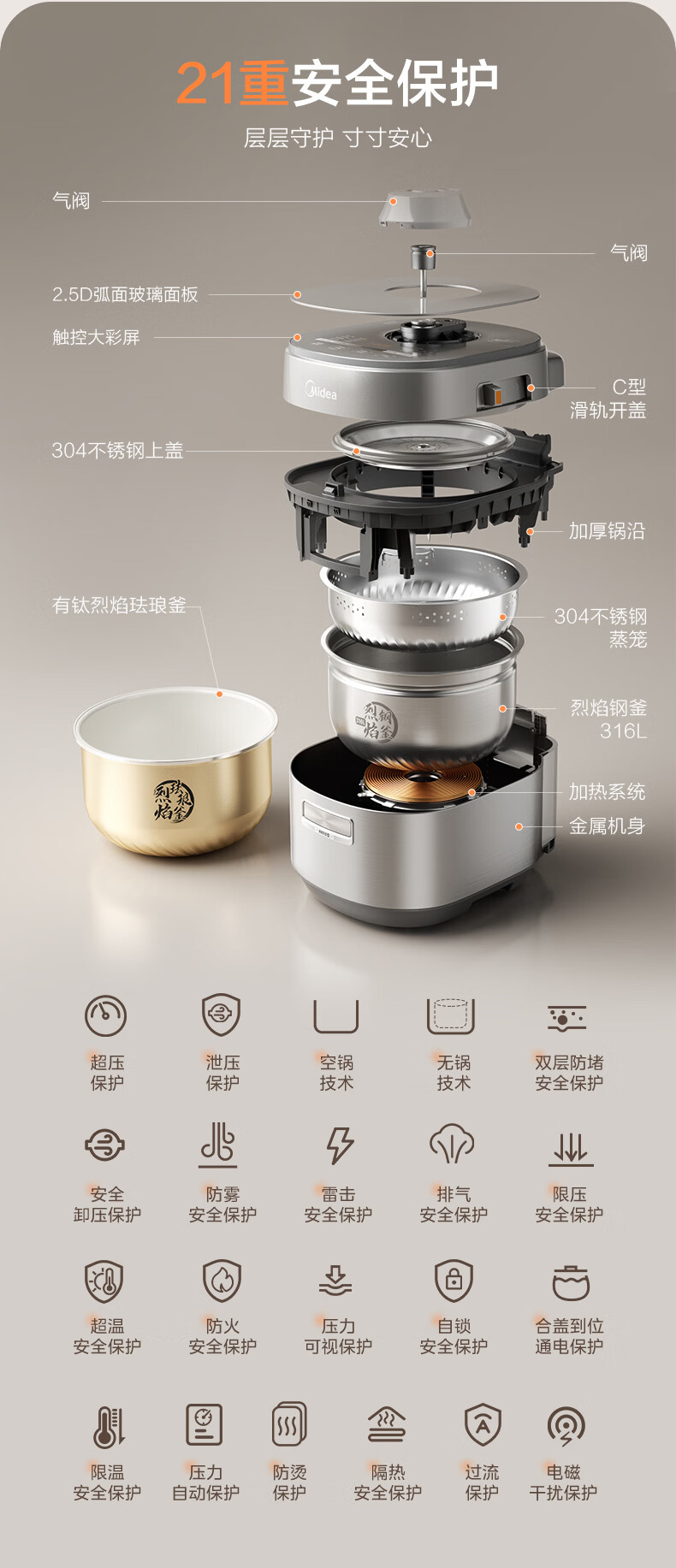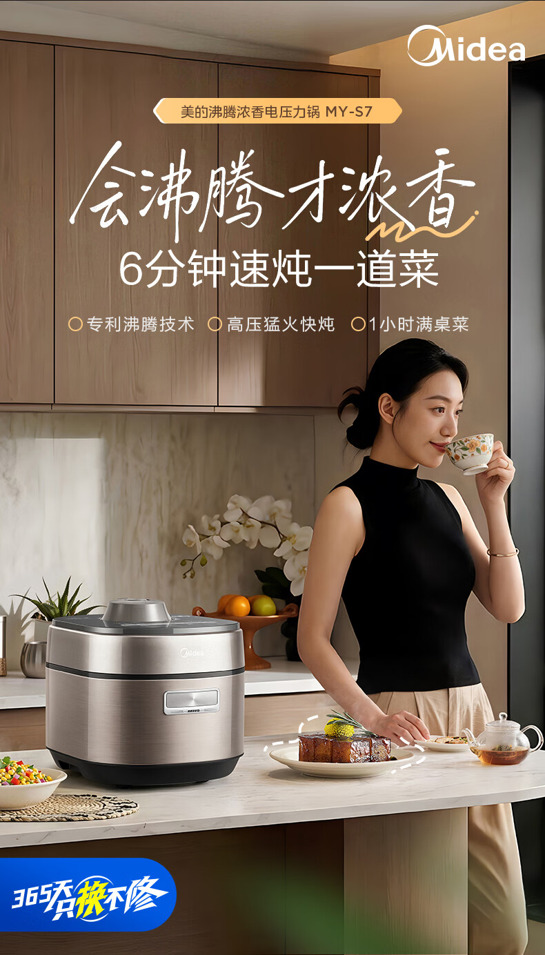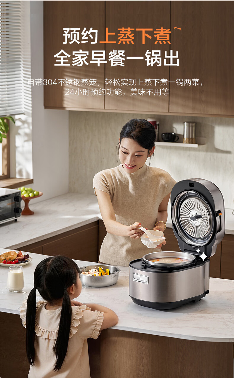 美的(Midea)大鸭梨有钛电压力锅ih加热高压112kPa电饭锅5L家用4-6人饭煲0涂层316L电压锅智能预约蒸汽洗MY-S7