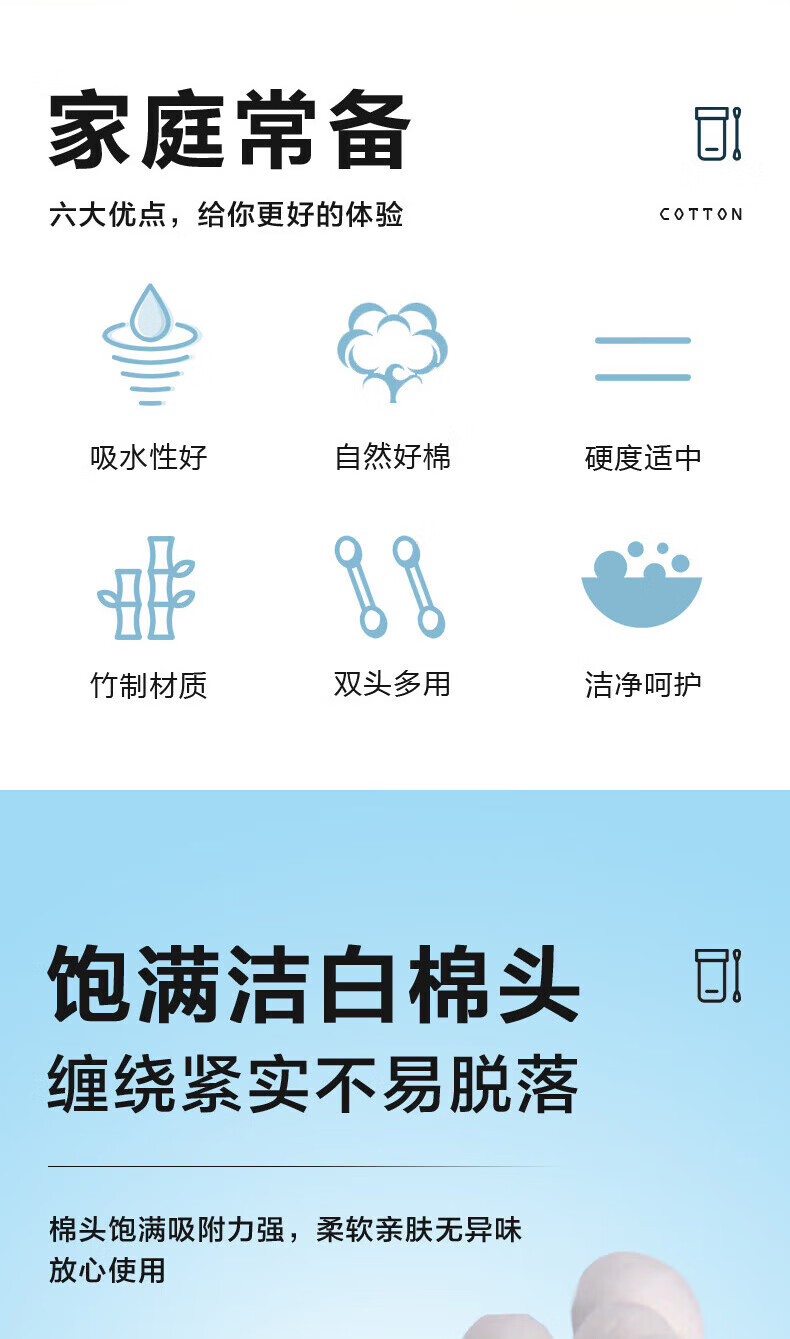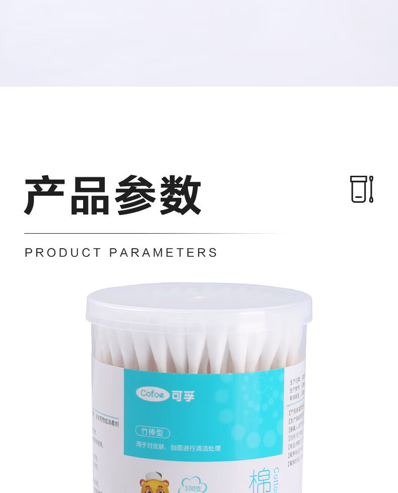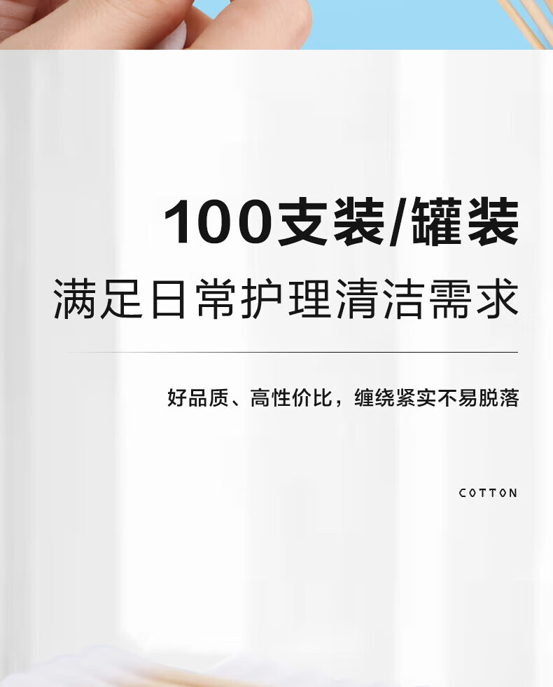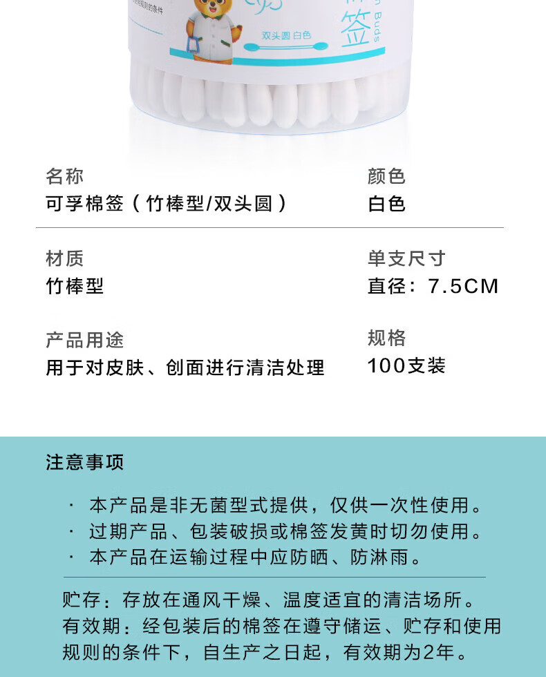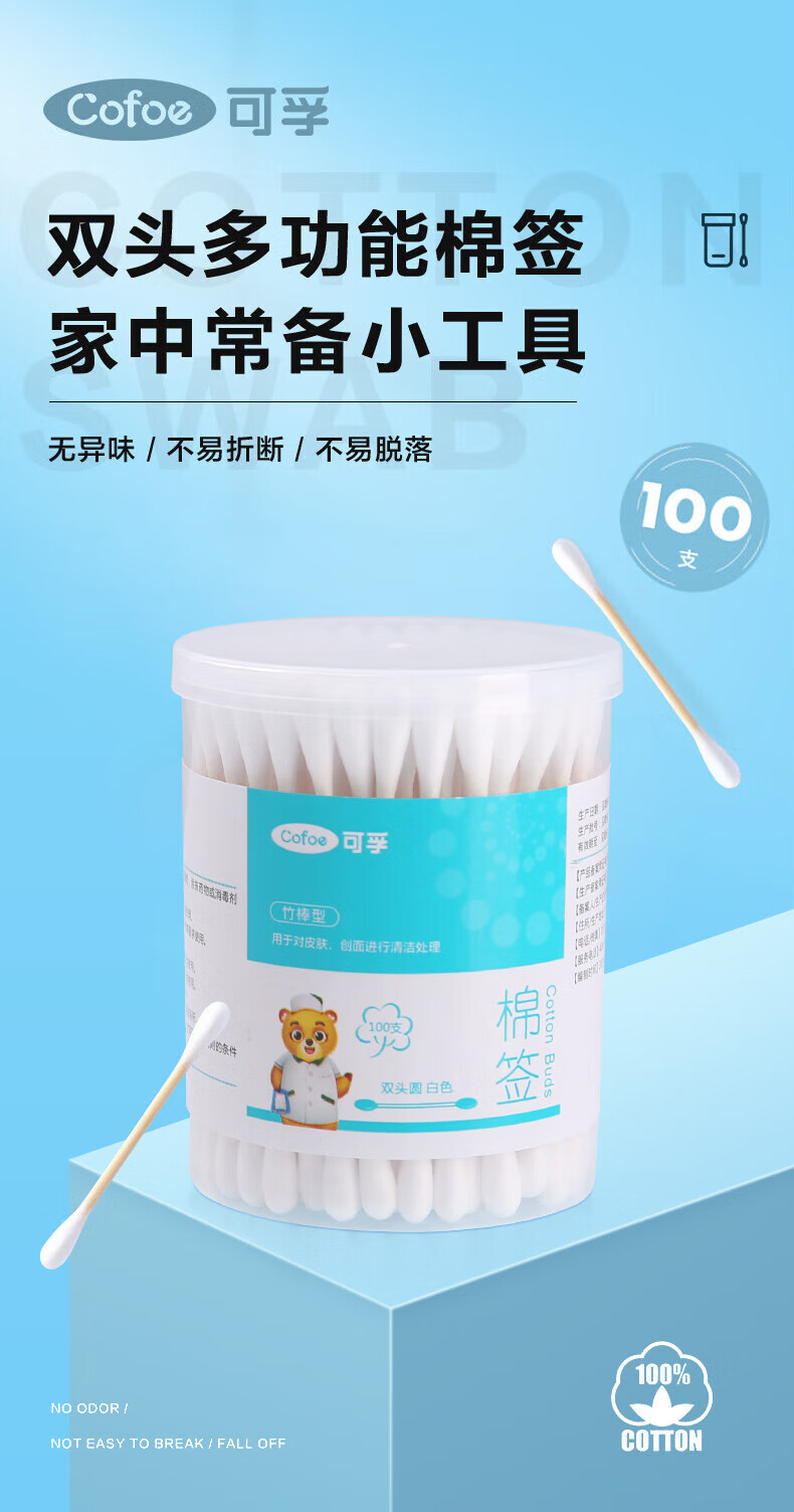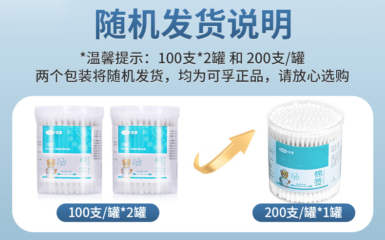 可孚医用棉签双圆头掏耳消毒 一次性脱脂棉棒独立罐装200支