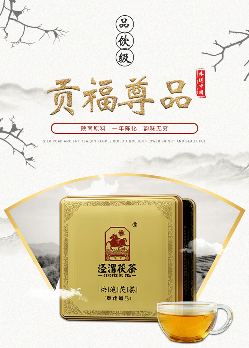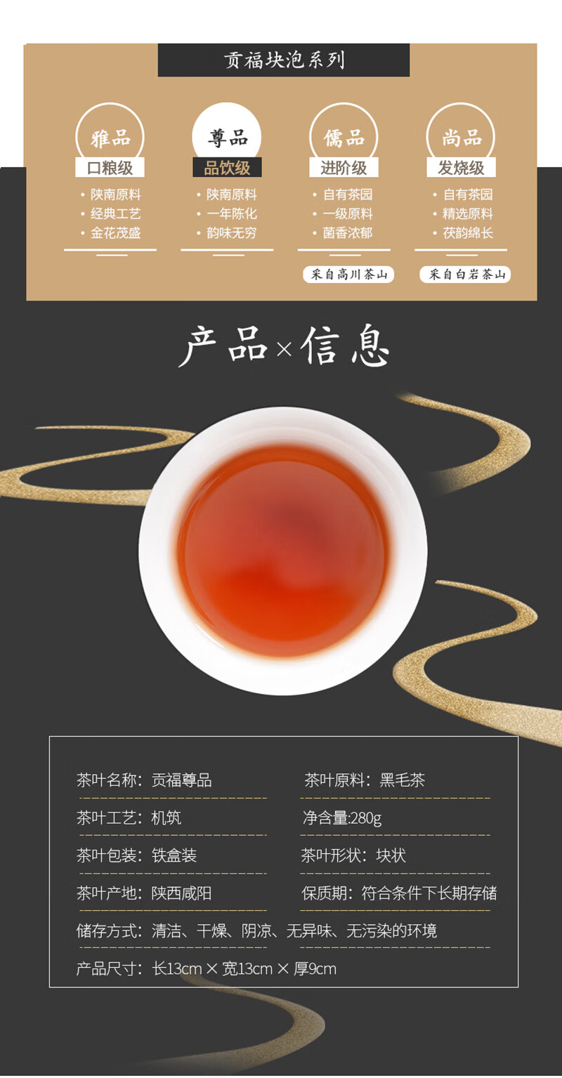 泾渭茯茶黑茶 过节礼盒 咸阳茯茶 陕西西安特产 金花茯砖茶 贡茯尊品280g