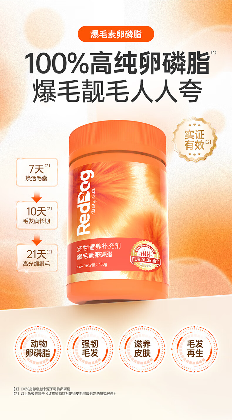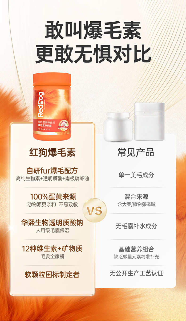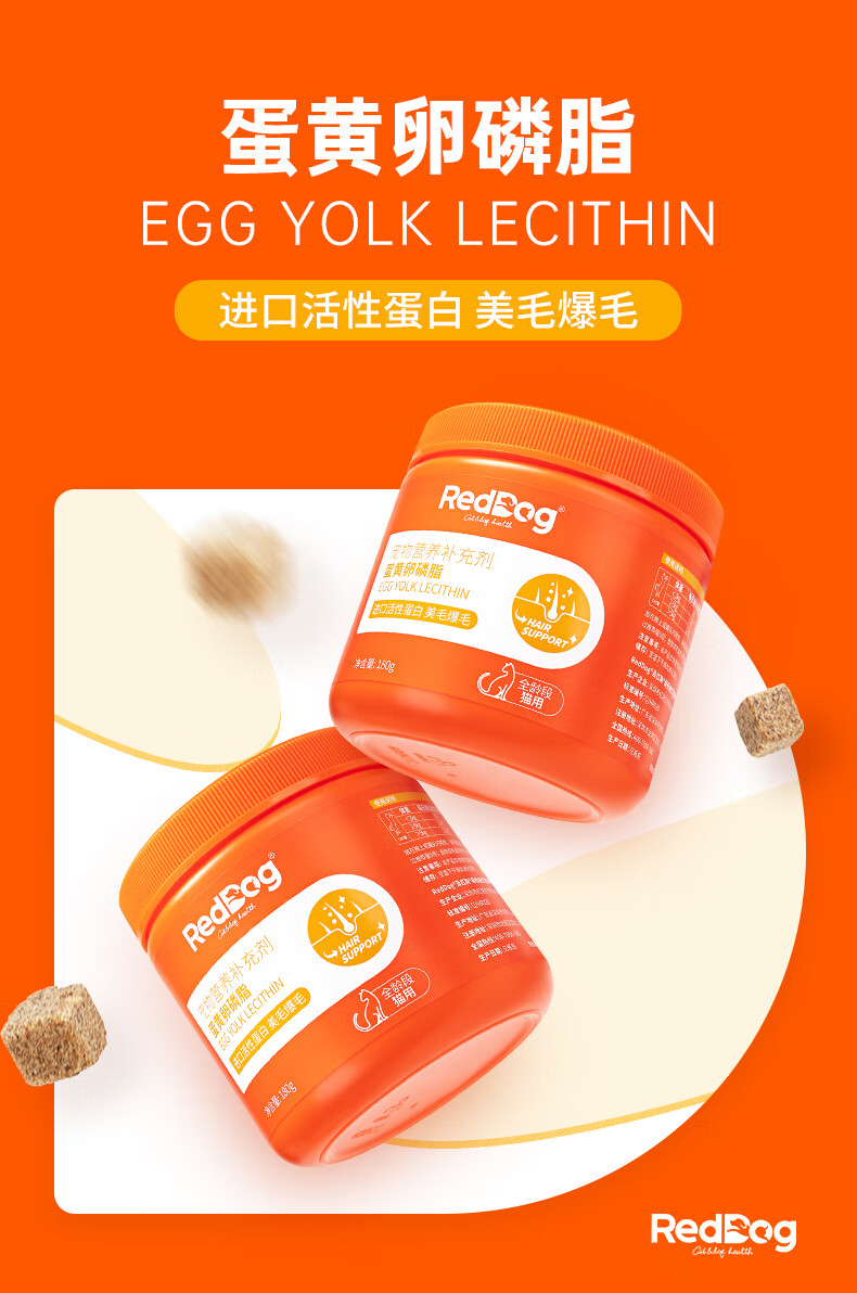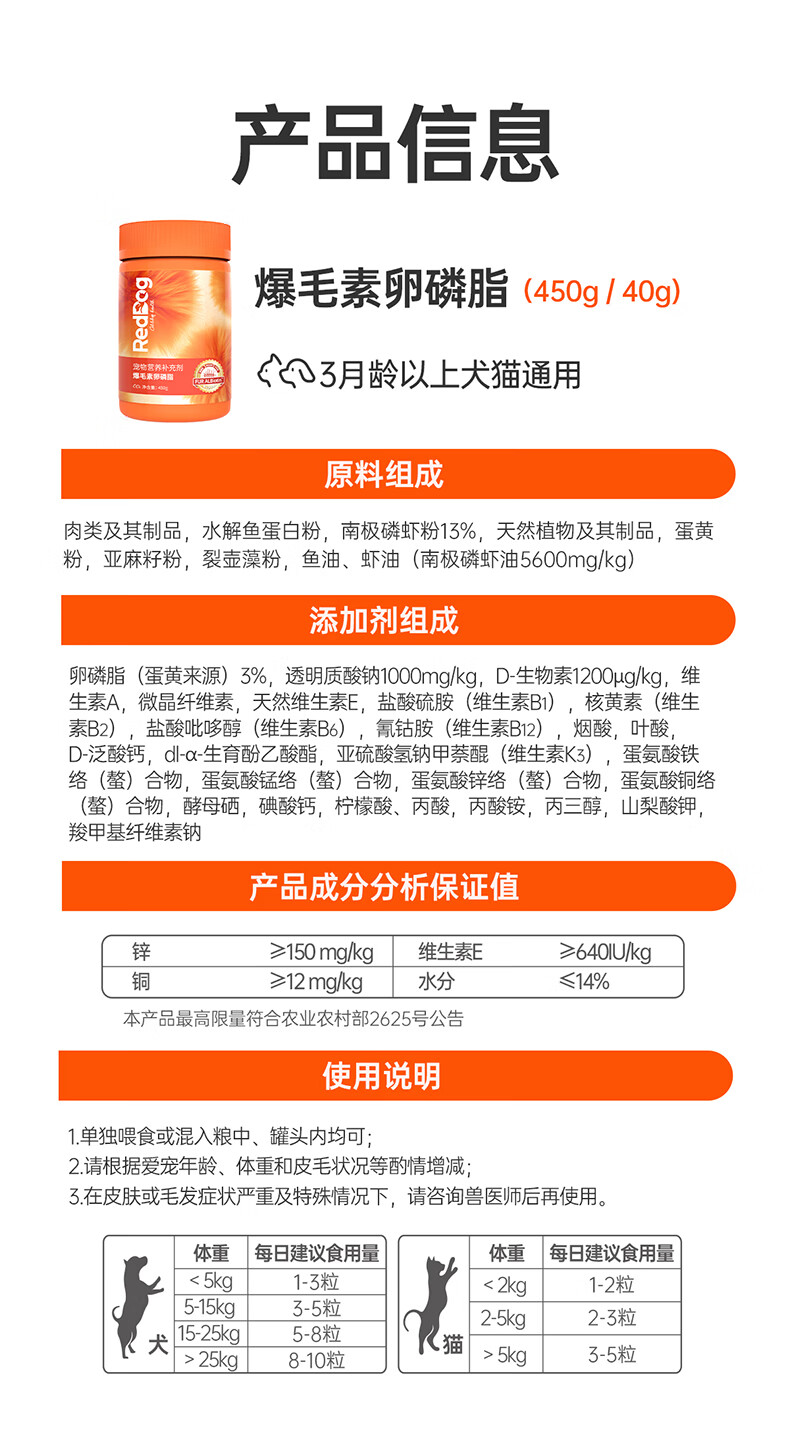 红狗(RedDog)【医院推荐】爆毛素卵磷脂狗狗猫咪 海藻粉维生素 【配方升级】犬猫爆毛素卵磷脂450g