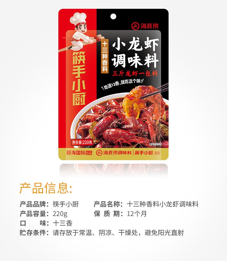 海底捞小龙虾香锅调料香辣虾蟹调味料3包装 【新货上市】 【3包】香辣小龙虾调味料