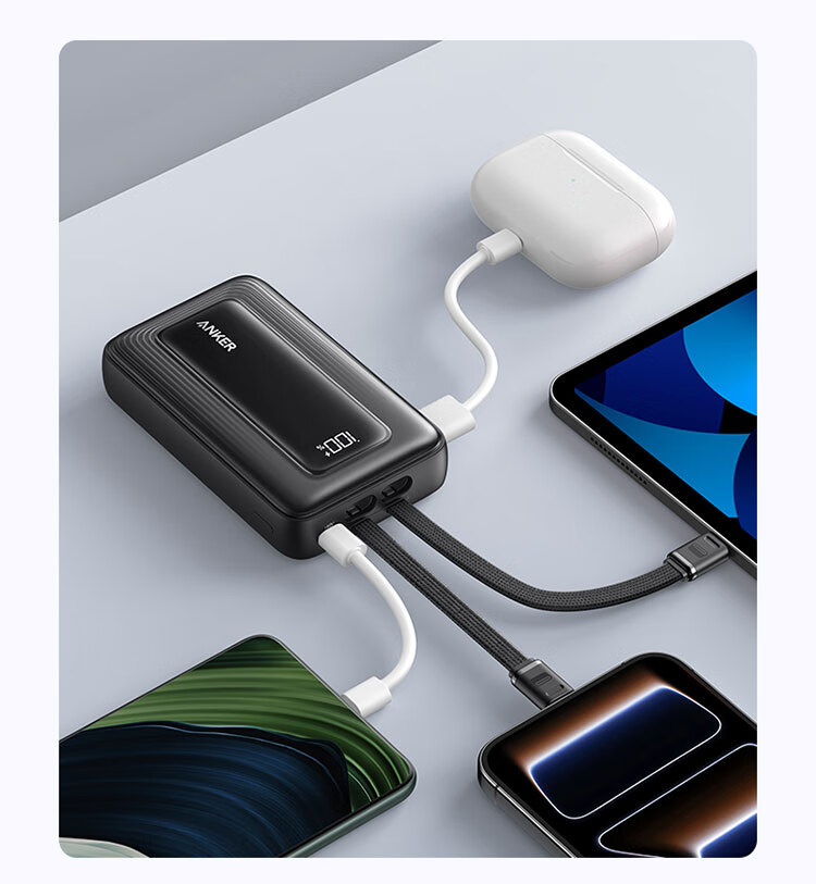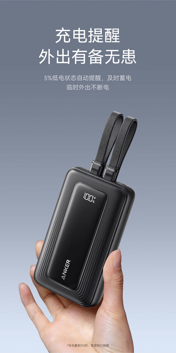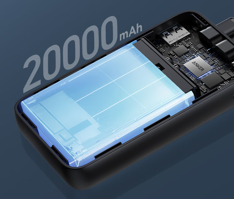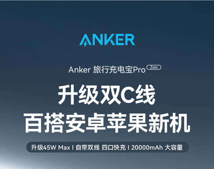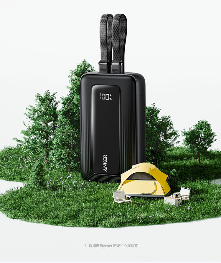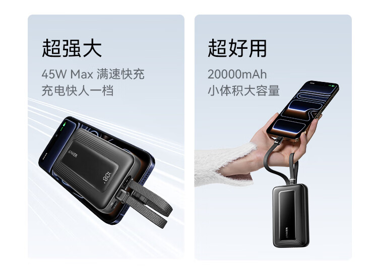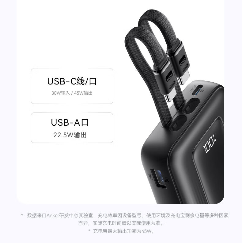 ANKER 安克【新3C认证可上飞机】旅行充电宝自带双c线45W20000毫安mAh大容量超快充移动电源安卓苹果 黑