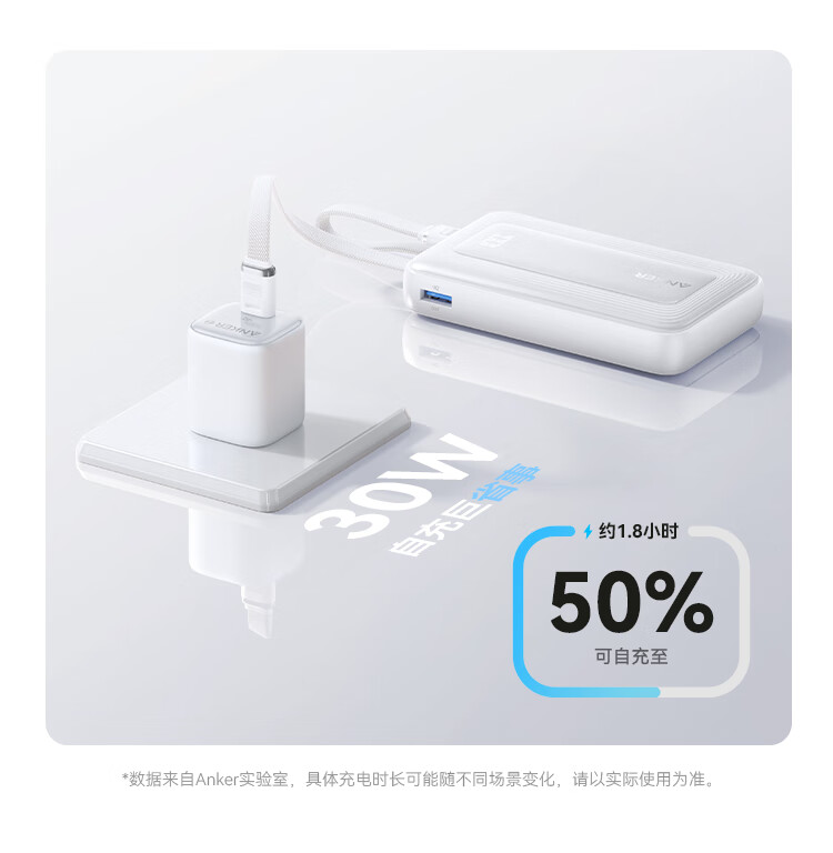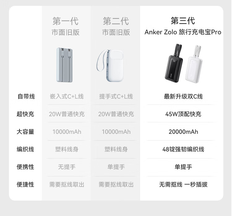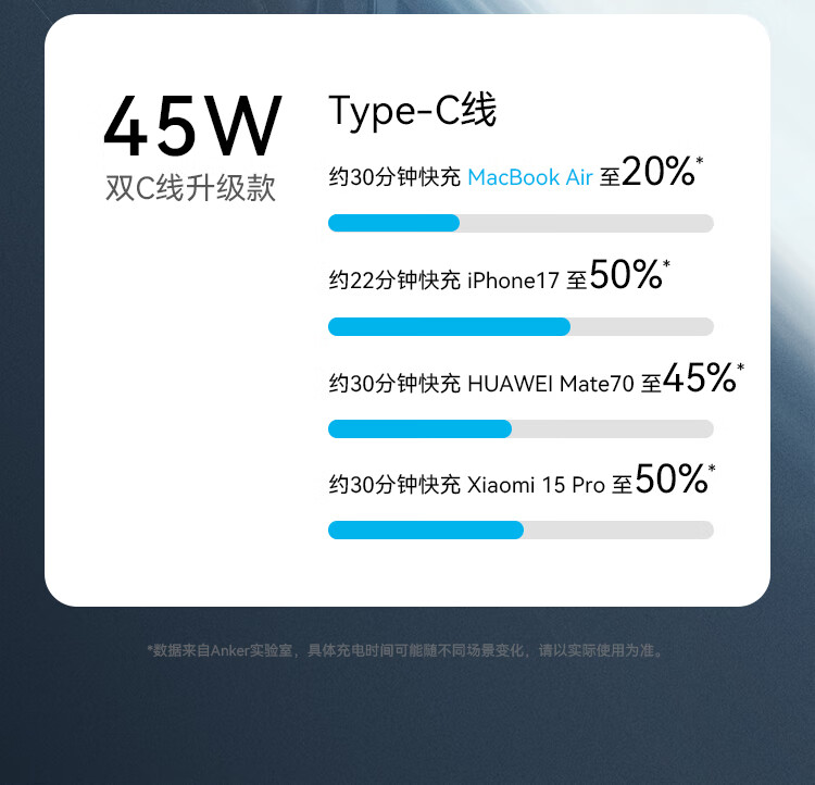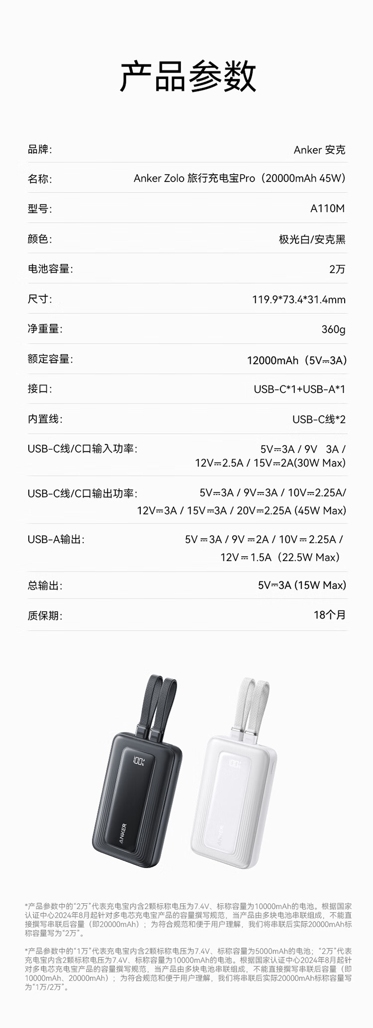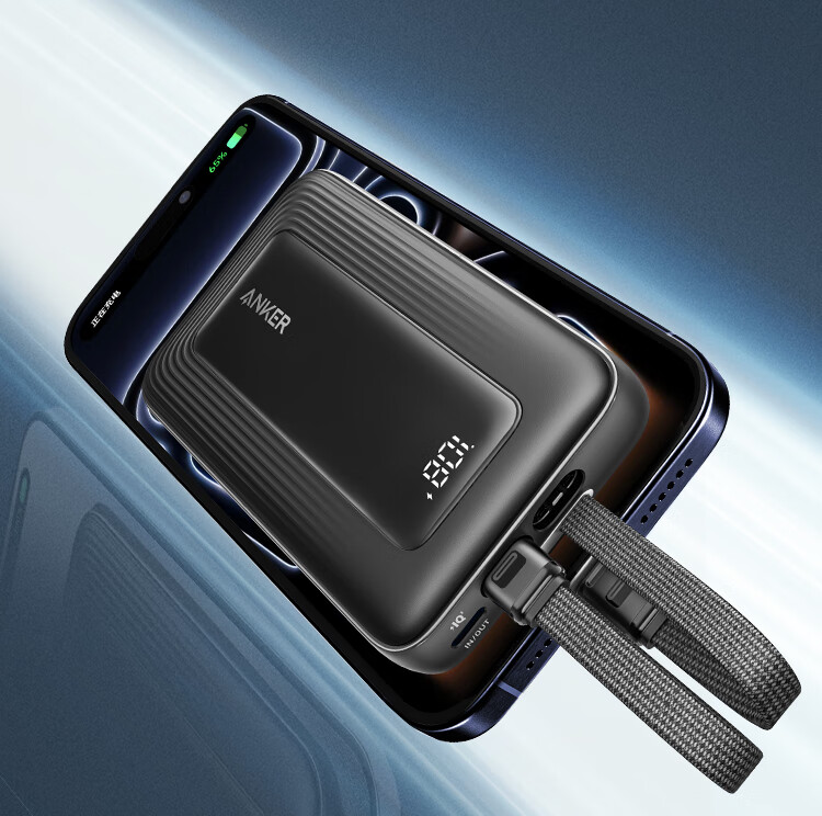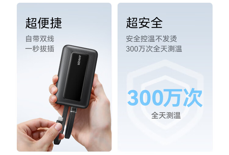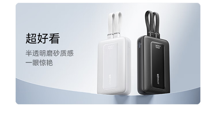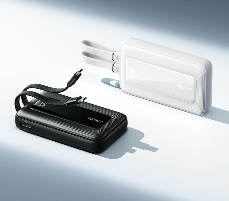 ANKER 安克【新3C认证可上飞机】旅行充电宝自带双c线45W20000毫安mAh大容量超快充移动电源安卓苹果 黑
